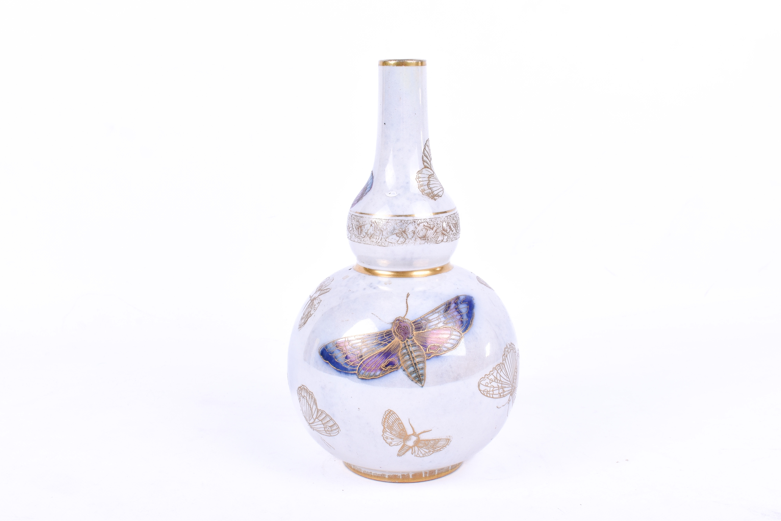 A Carlton lustre ware butterfly decorated double-gourd shaped vase. Unmarked. H20cm