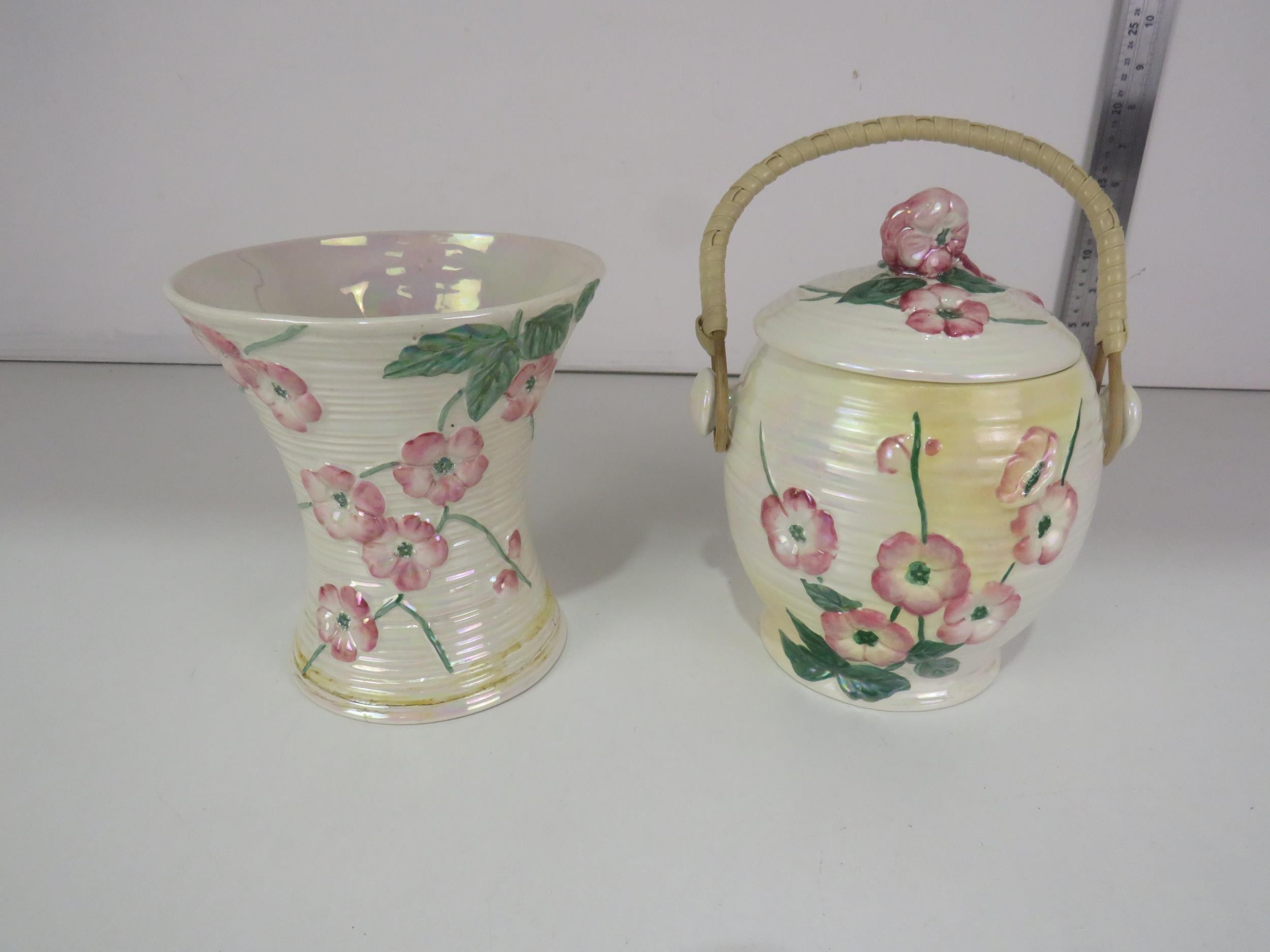 MALING LUSTRE VASE AND BISCUIT BARREL