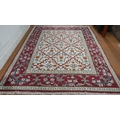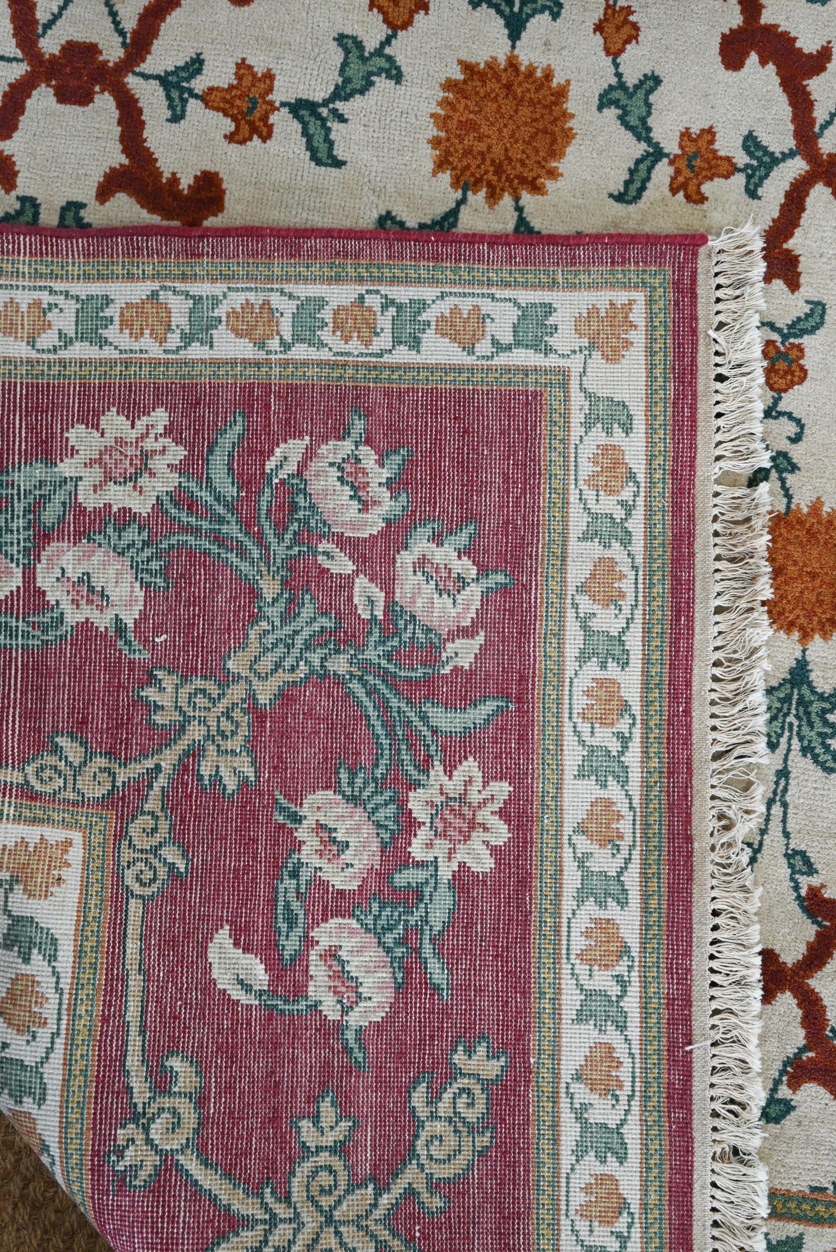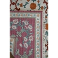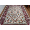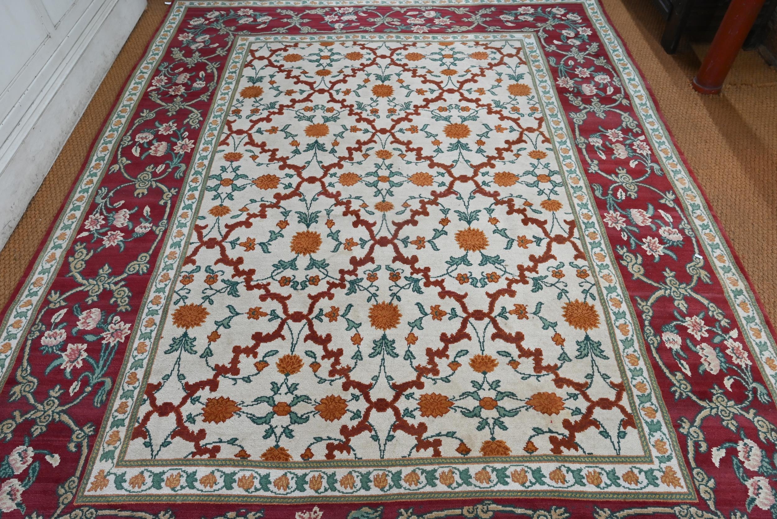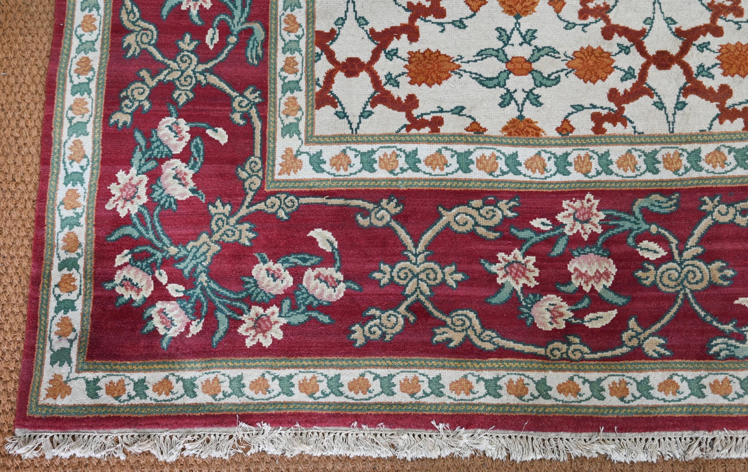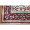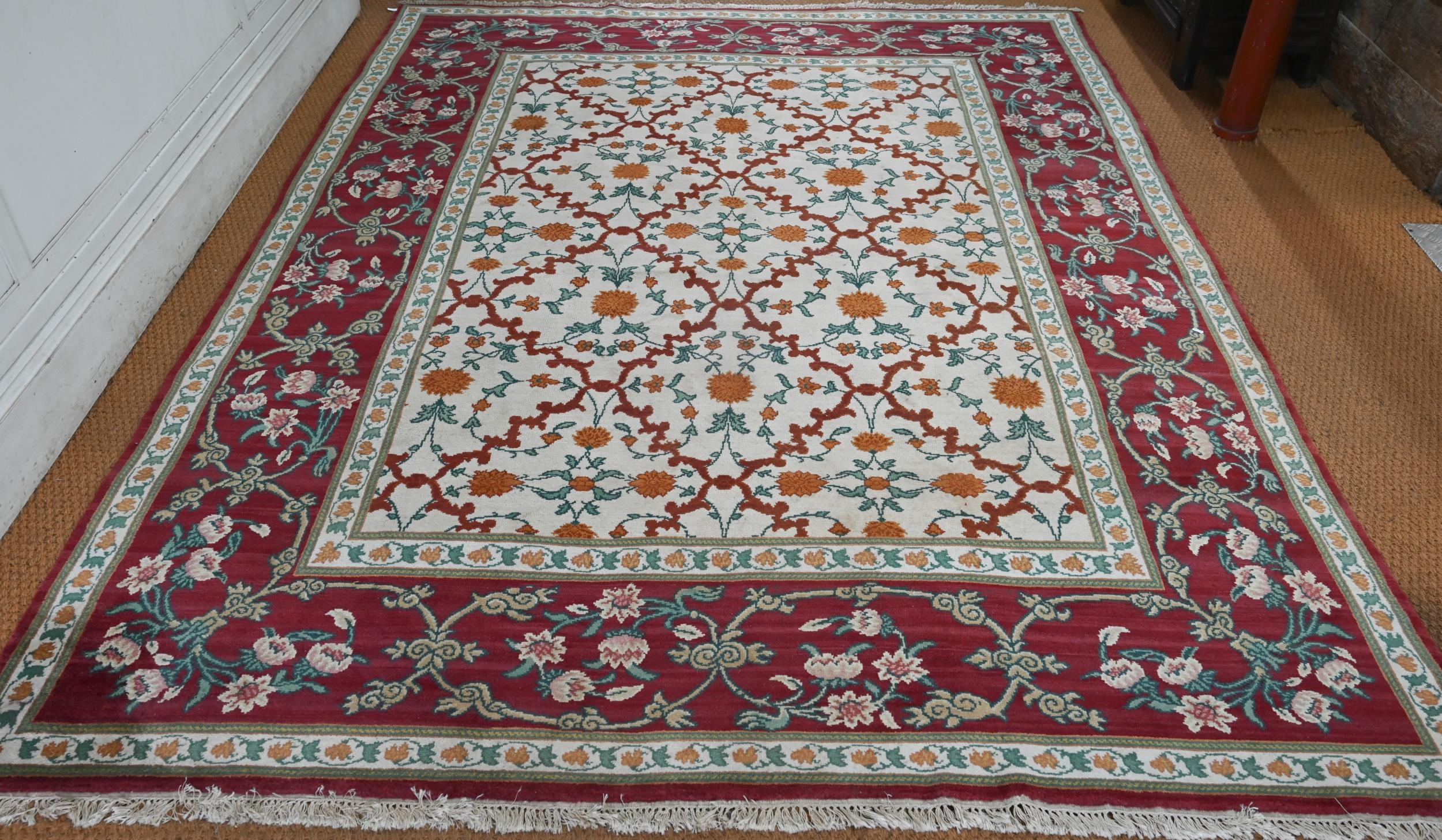 An Indo-Persian Agra carpet with floral herati design on camel ground with red floral scroll border, 320 cm x 243 cm