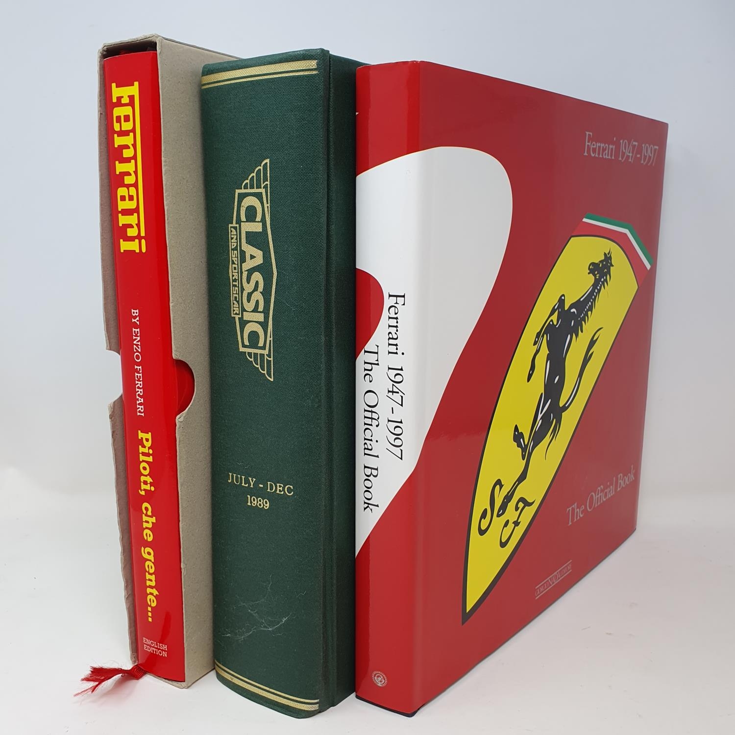 Ferrari 1947 - 1997, The Official Book, Ferrari - Piloti che gente...., and Classic and Sports car magazines, July to December 1989, bound as one (3)