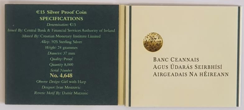 Ireland: 2007 Ivan Mestrovic €15 Silver Proof Coin. Limited edition No. 4648 of 8000. In original box and with certificate of authenticity.