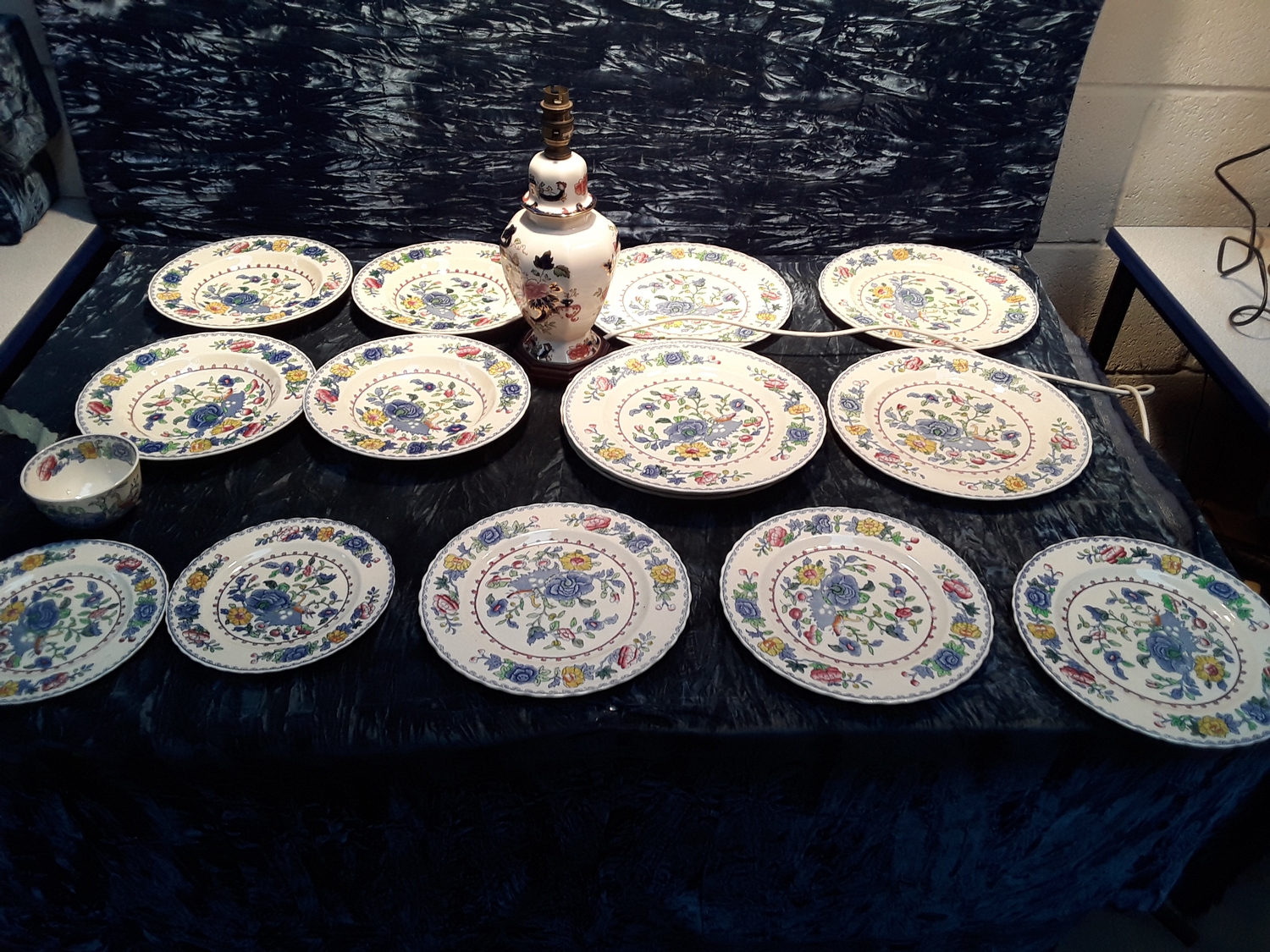 Collection of Masons Regency style plates and Masons Mandalay lamp