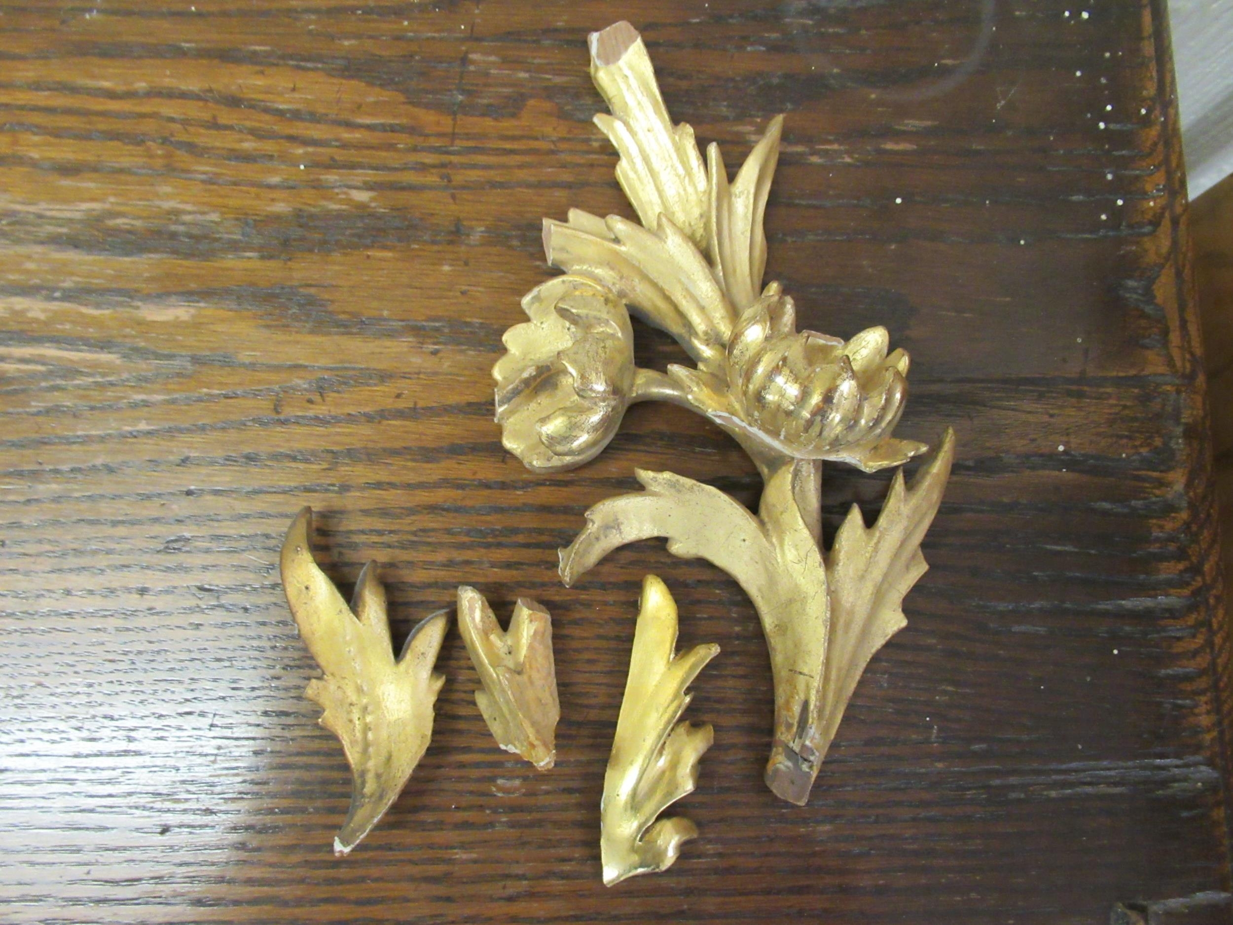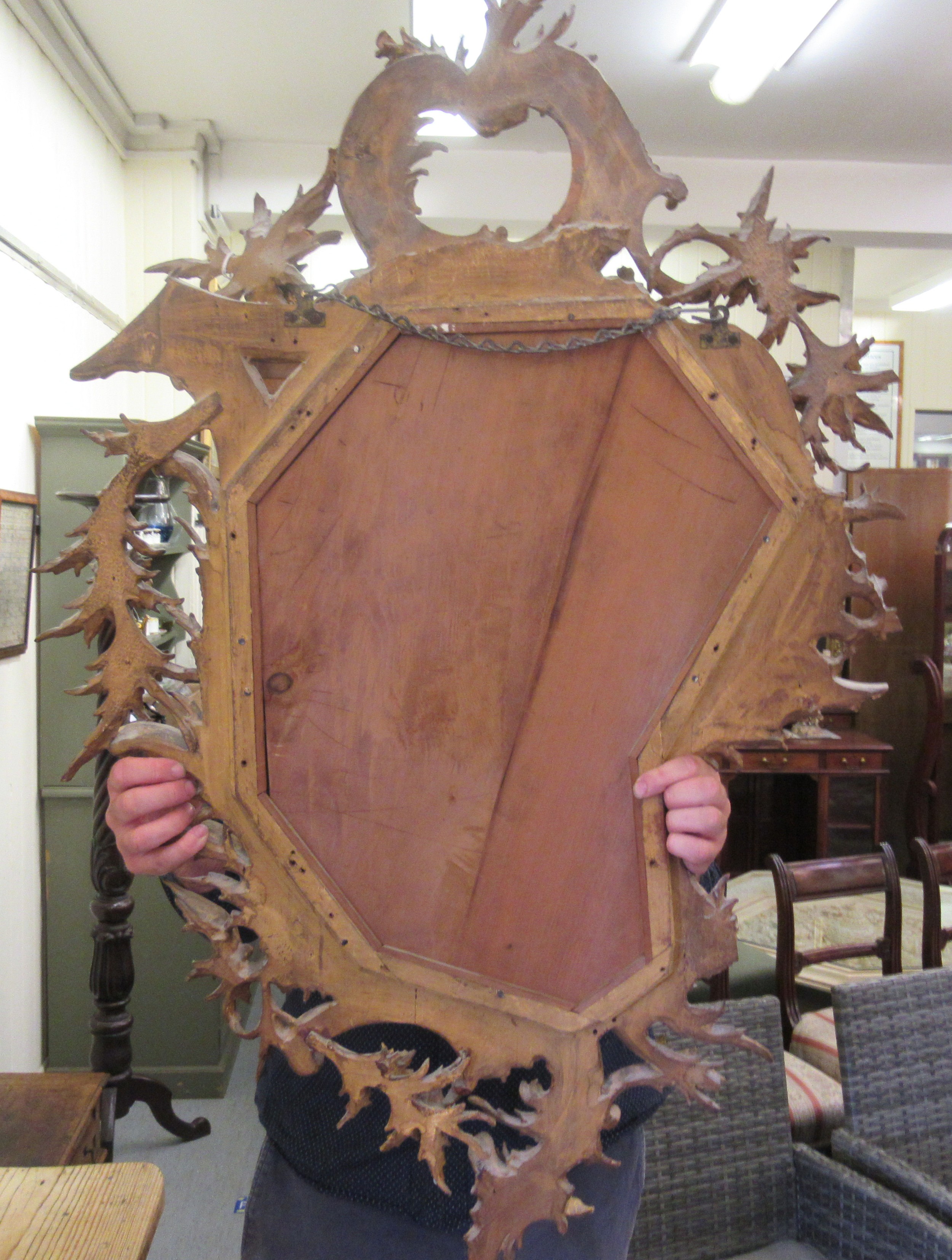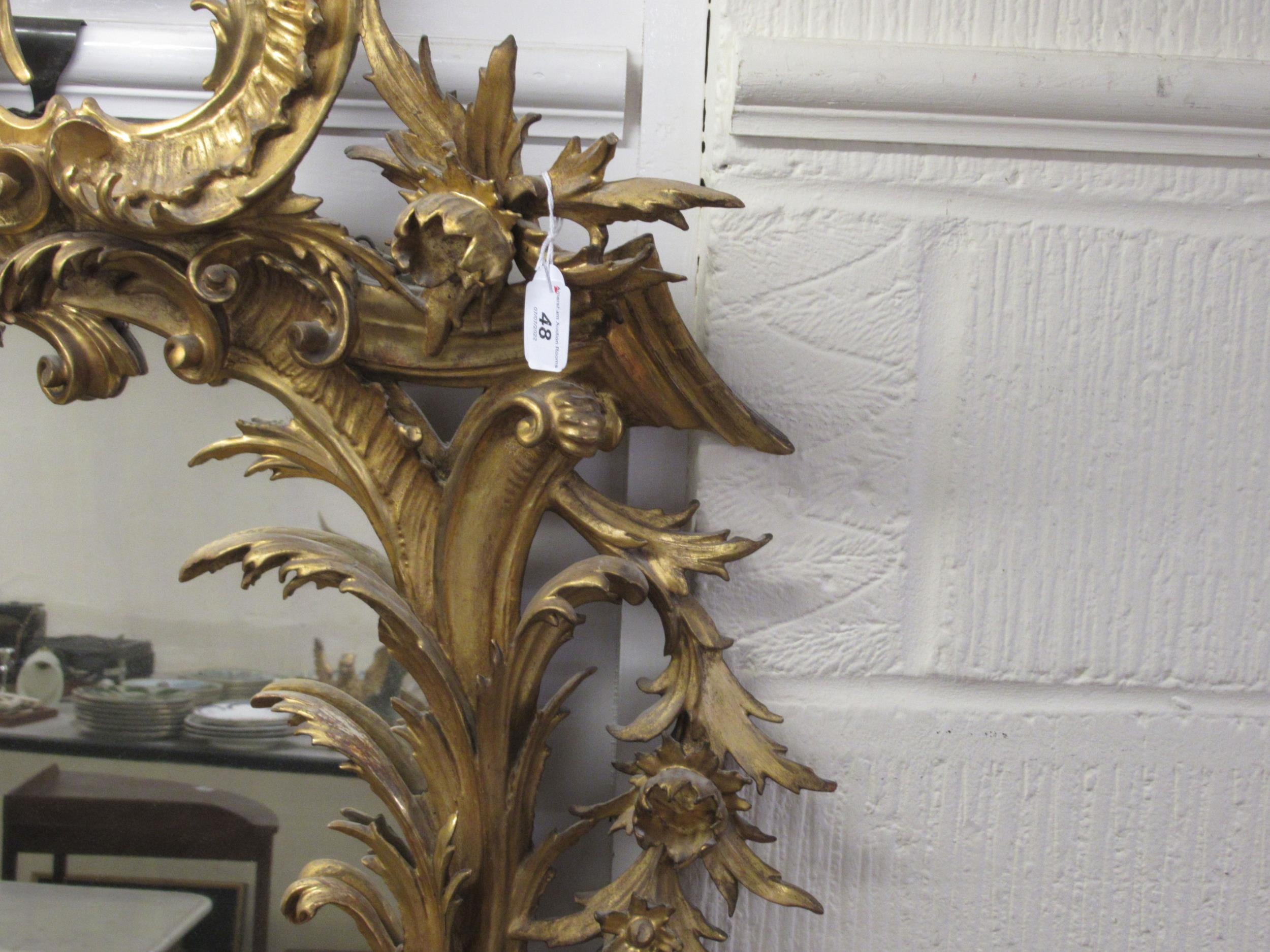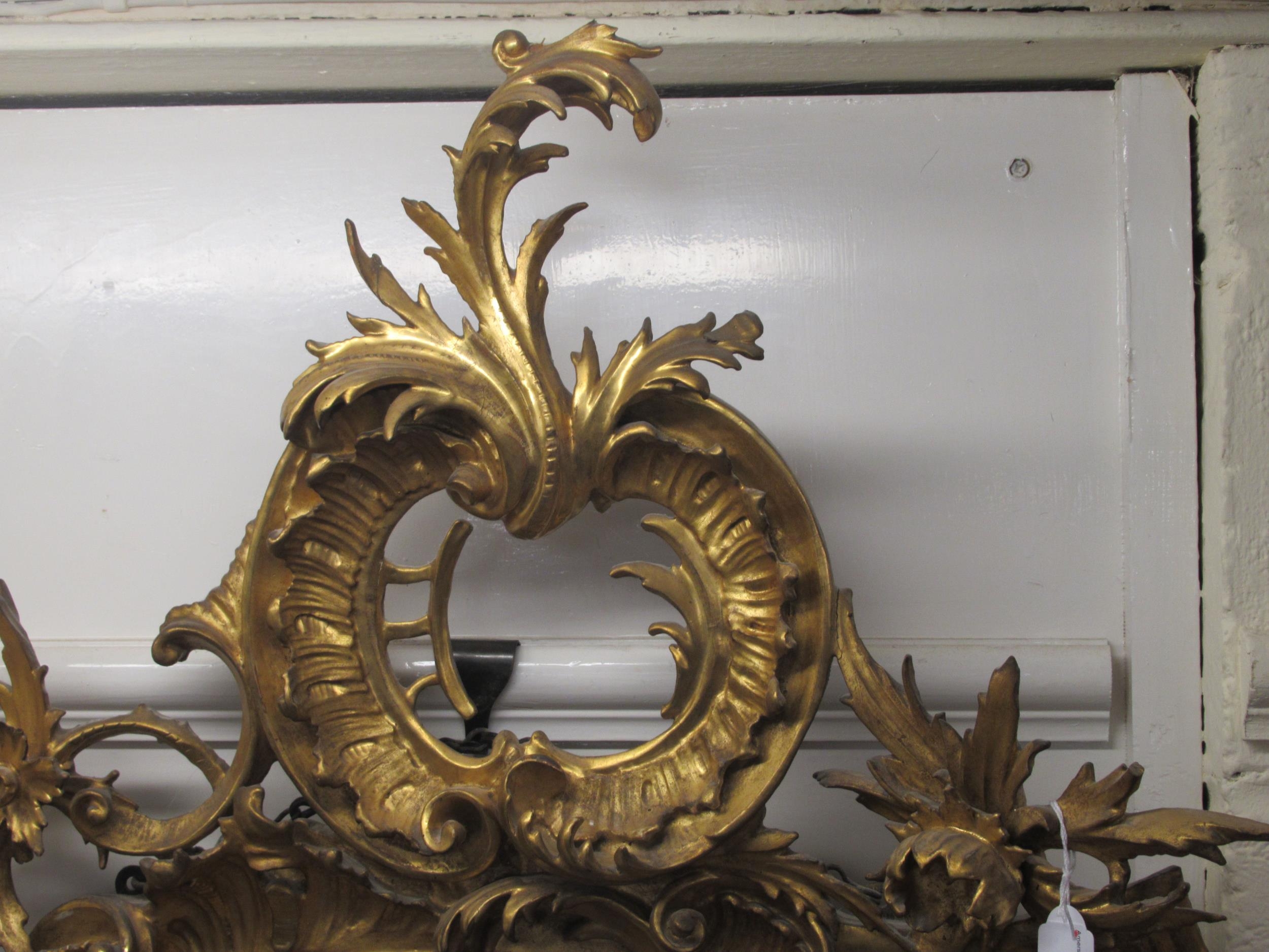 A late 18th/early 19thC mirror, set in a carved giltwood, foliate scrolled and floral, rococo style frame 46"h 27"w