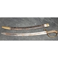 A Victorian Police or Customs Officer's cutlass and scabbard, having 56.5cm blade, the guard stamped H.C 32.