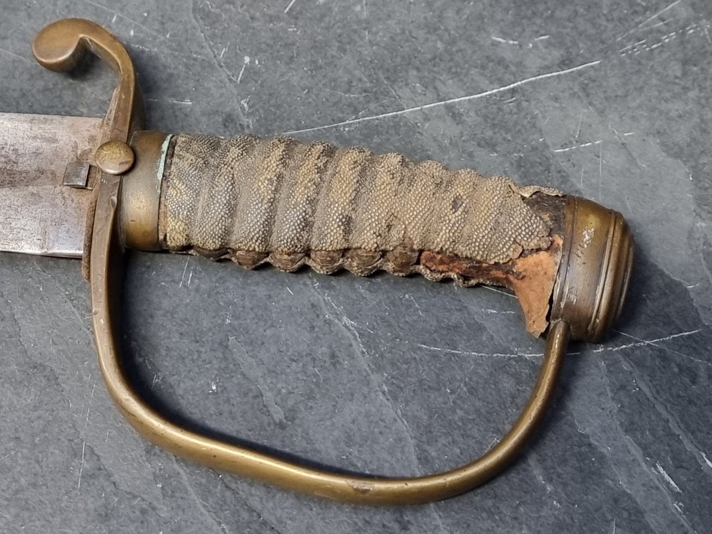 The fish skin grip in poor condition.