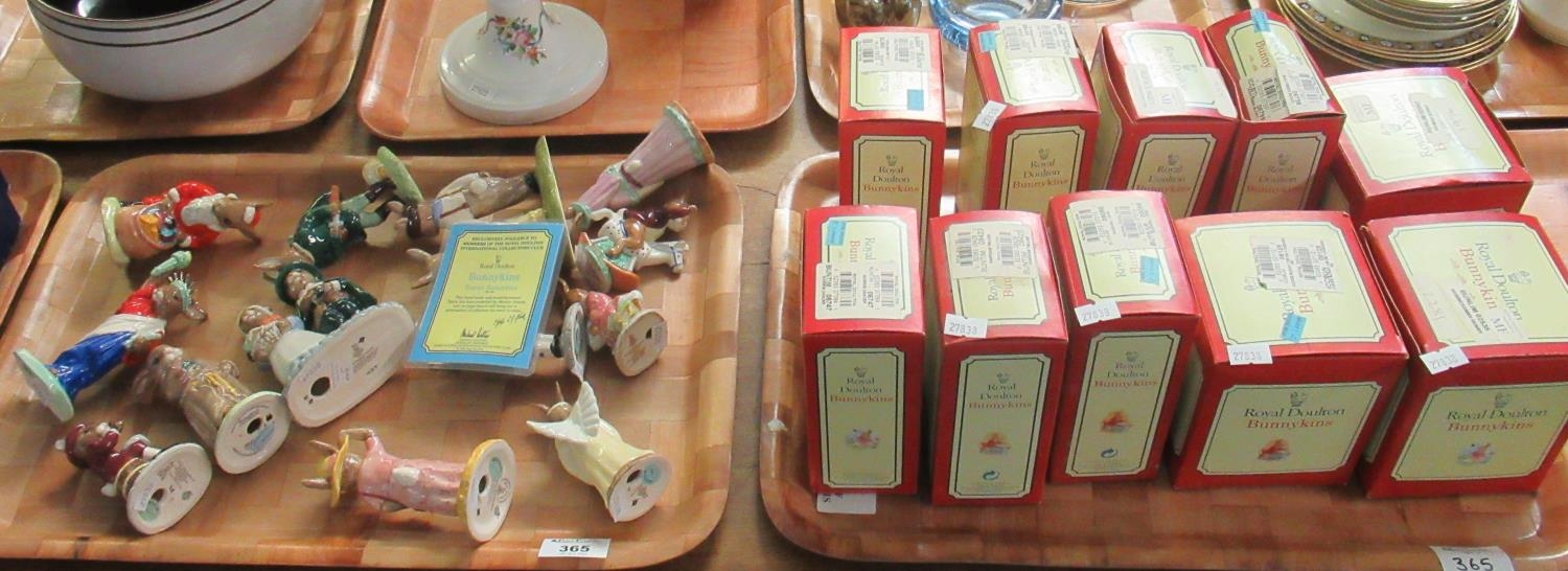 Two trays of Royal Doulton Bunnykins figures to include: Santa Bunnykins, Statue of Liberty Bunnykins, Fortune Teller Bunnykins, Business Man Bunnykins, Airman Bunny, etc. Some in original boxes. (23 in total.0