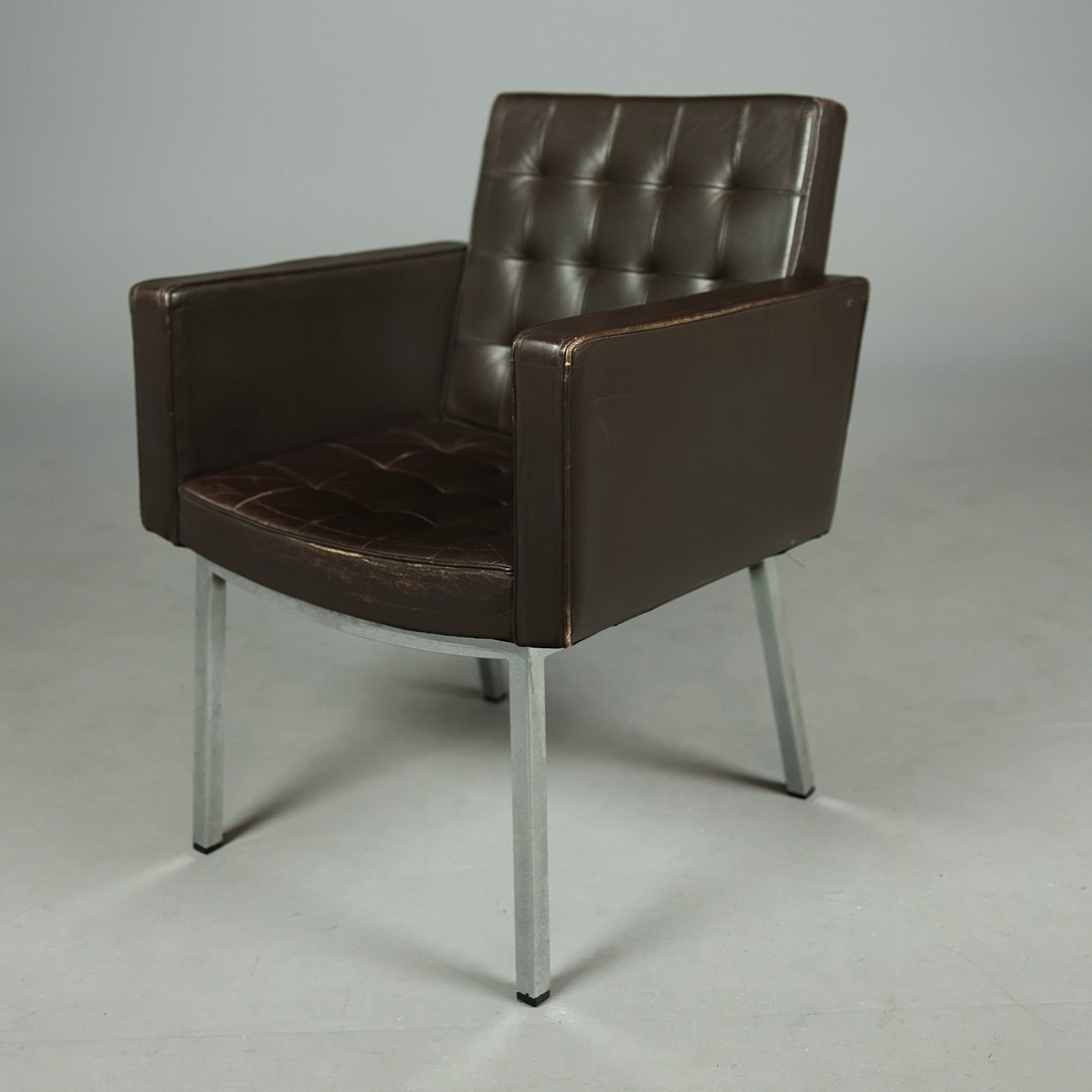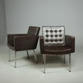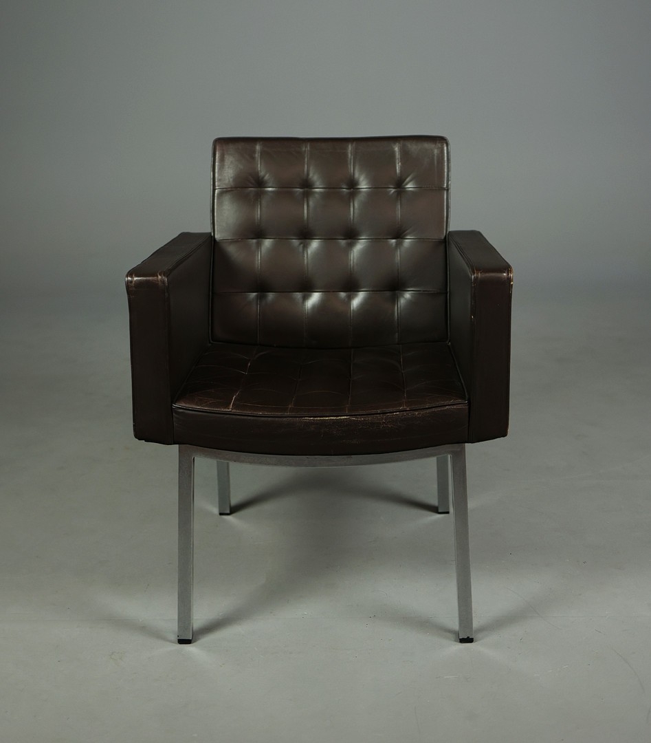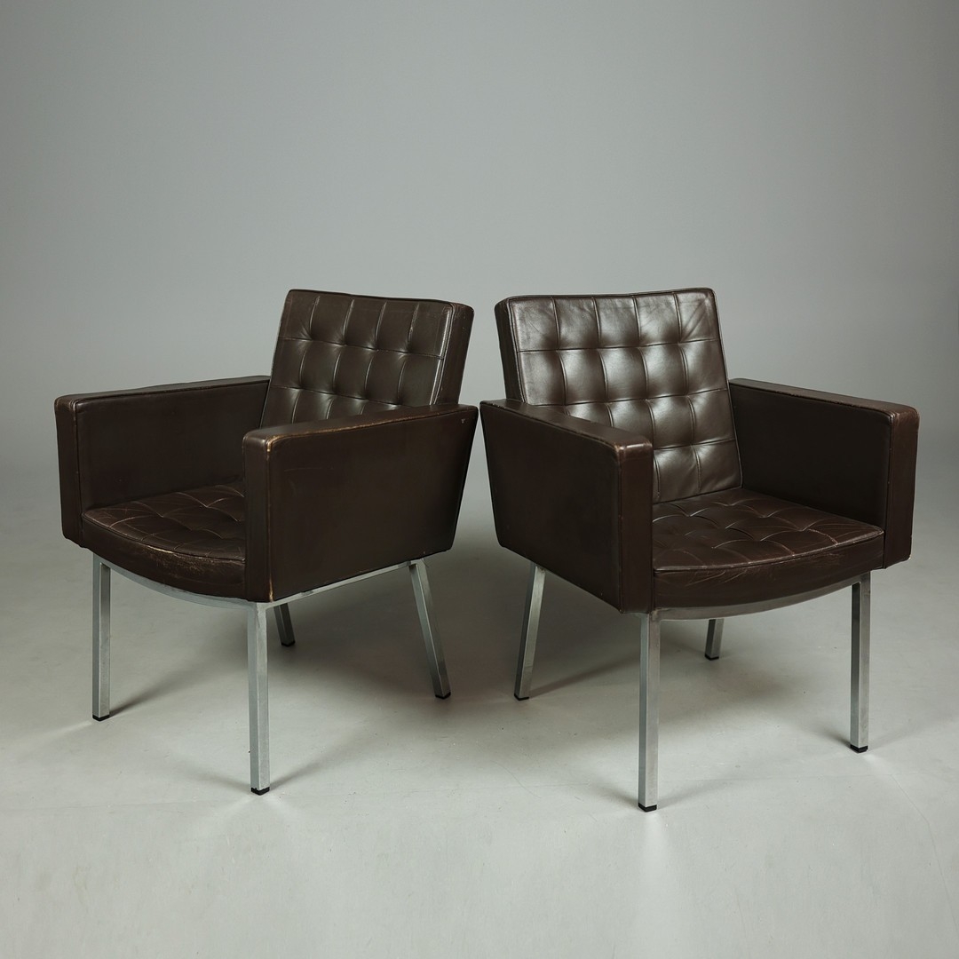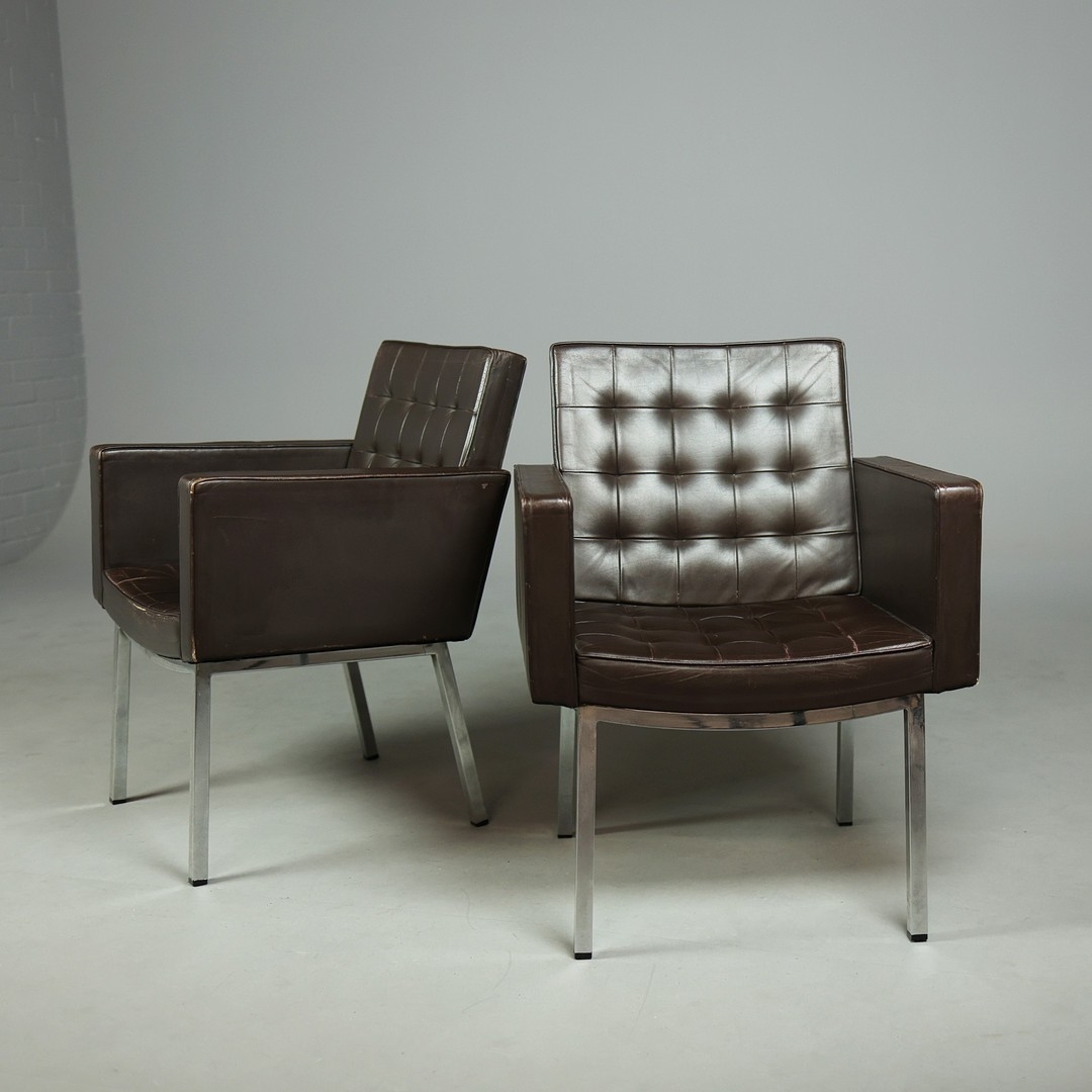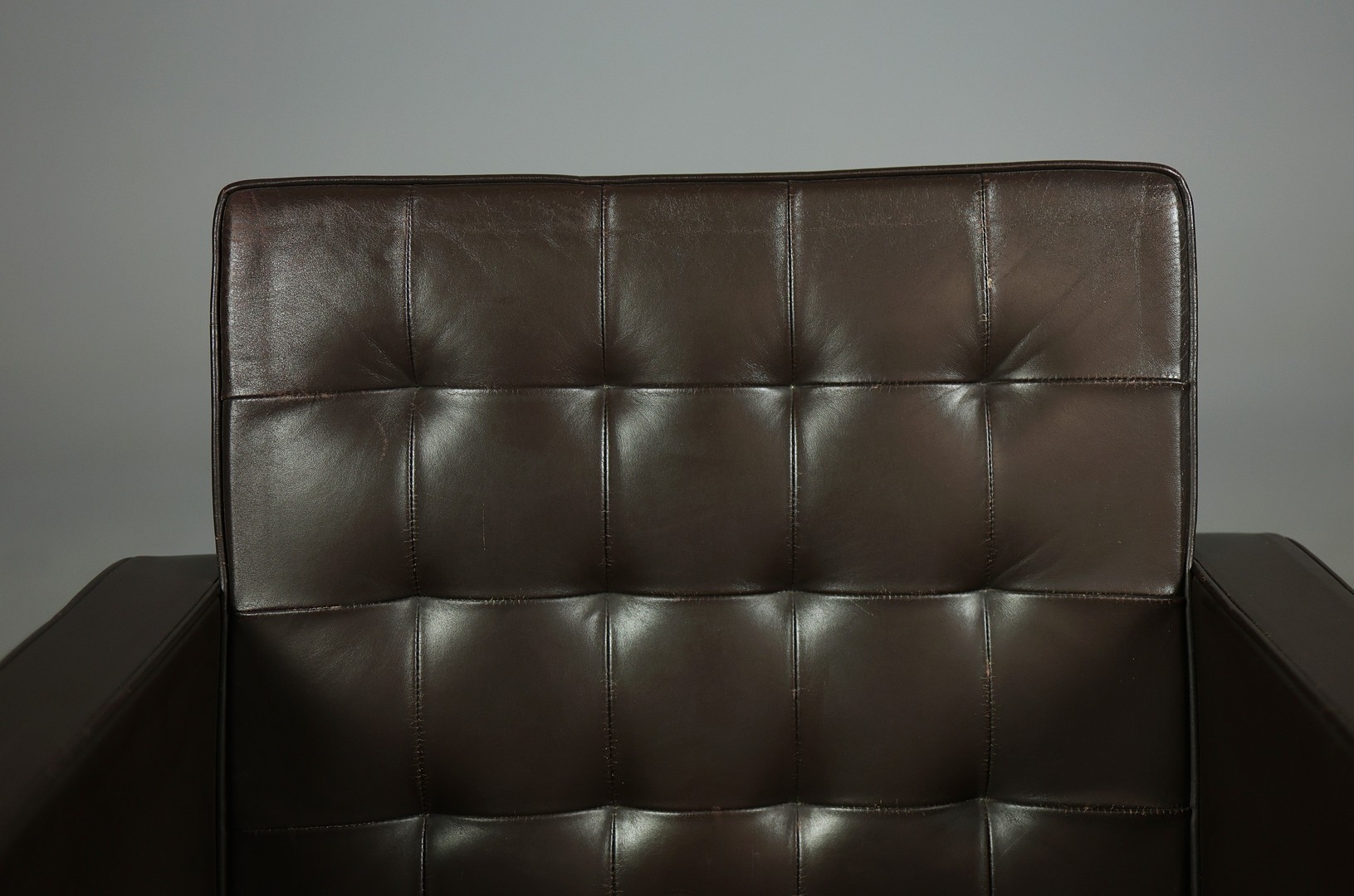 PAIR OF 1970s KNOLL 180 SPS ARMCHAIRS BY VINCENT CAFERIO. Dark brown leather upholstery 84cm H x 65cm W x 63cm D.