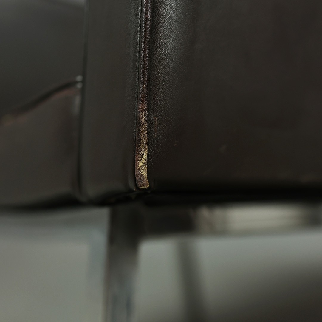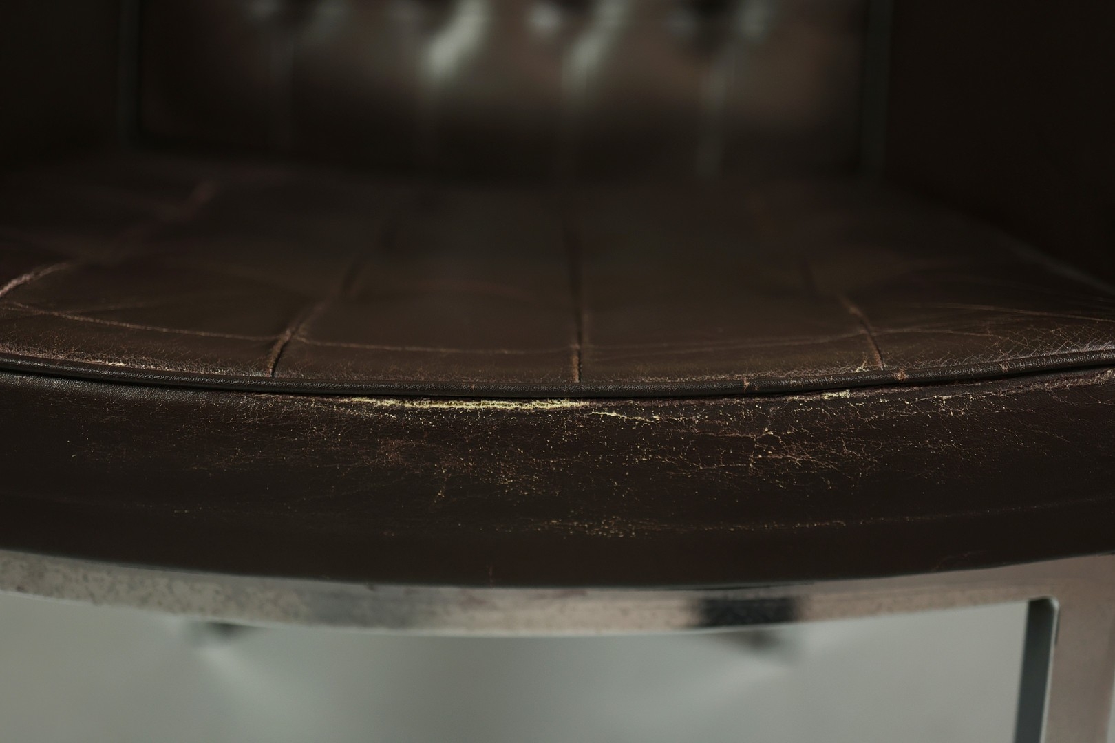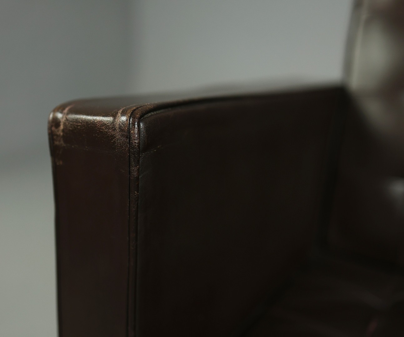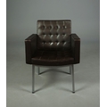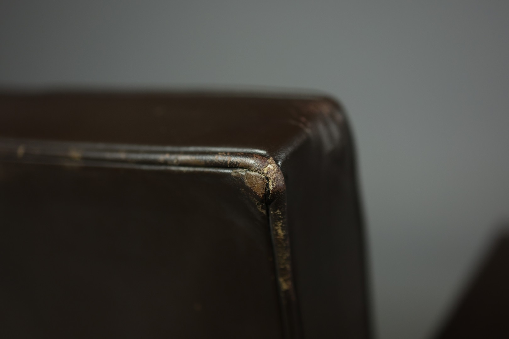 PAIR OF 1970s KNOLL 180 SPS ARMCHAIRS BY VINCENT CAFERIO. Dark brown leather upholstery 84cm H x 65cm W x 63cm D.