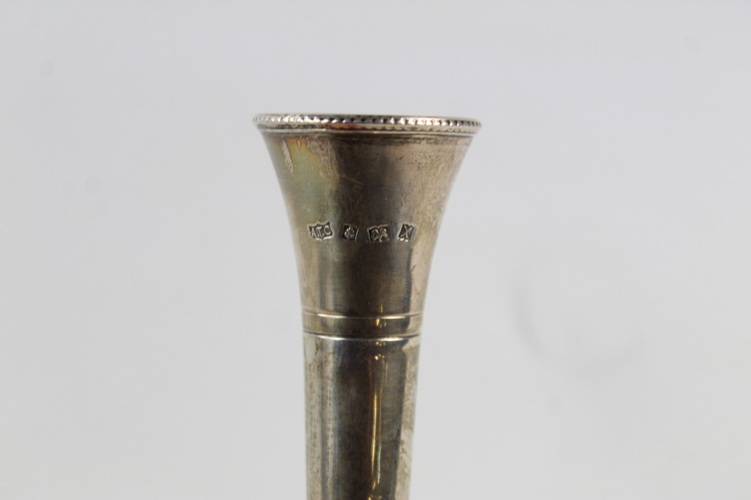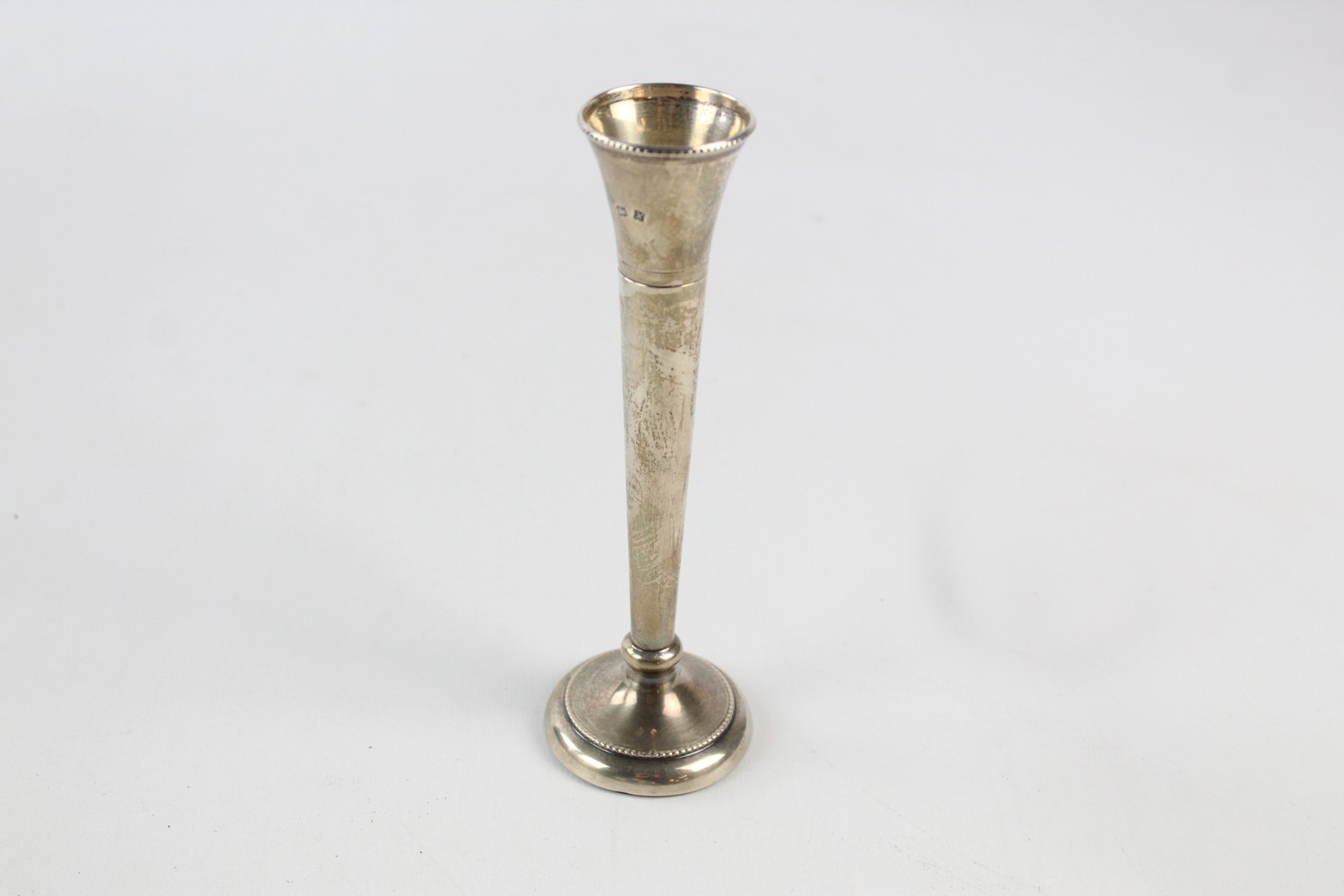 Vintage Hallmarked 1972 Birmingham STERLING SILVER Bud Vase w/ Beaded Rim (58g)