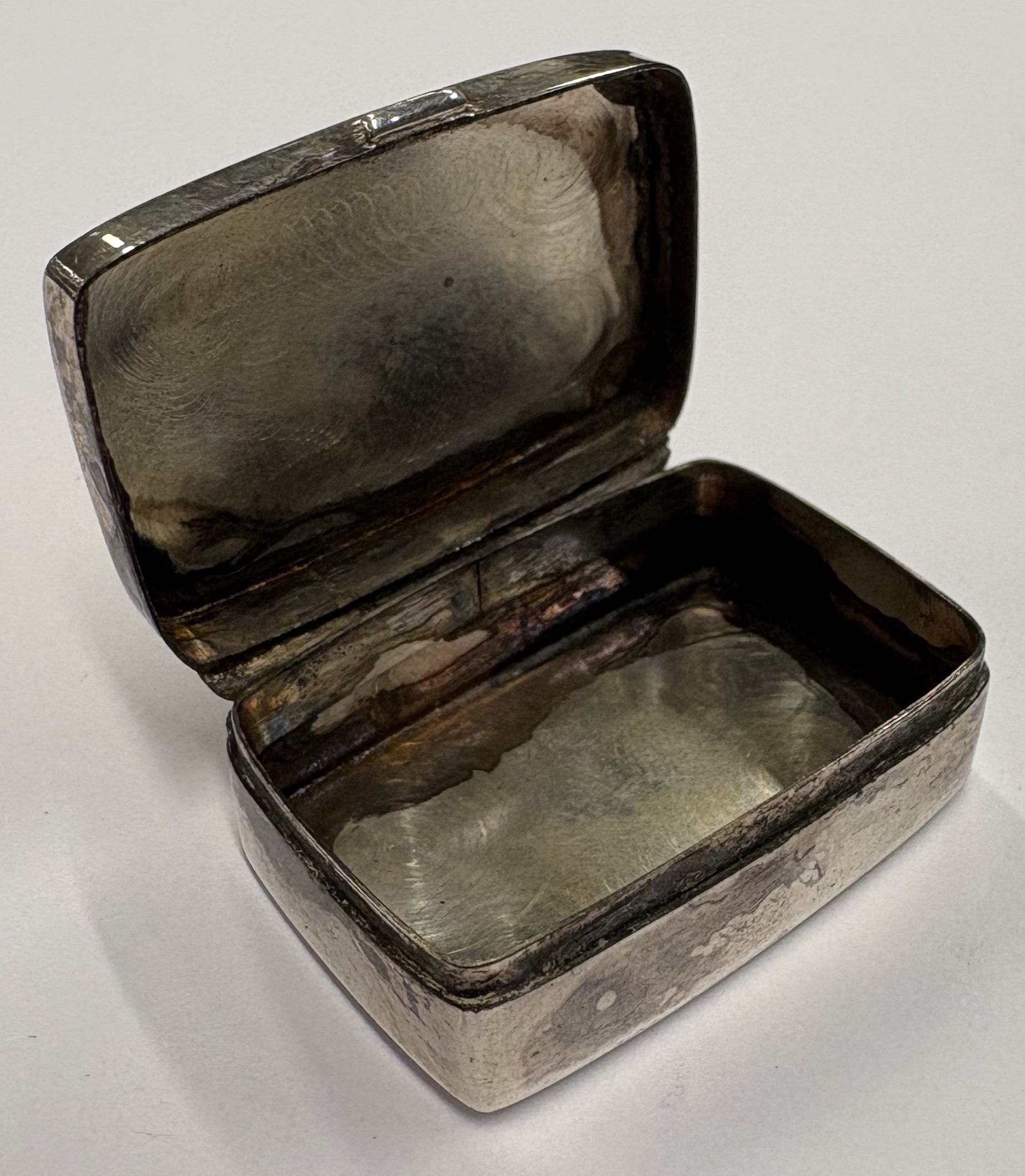 A silver pill box. Bearing import marks to base. Approx. 13 grams. Est. £30 - £40.