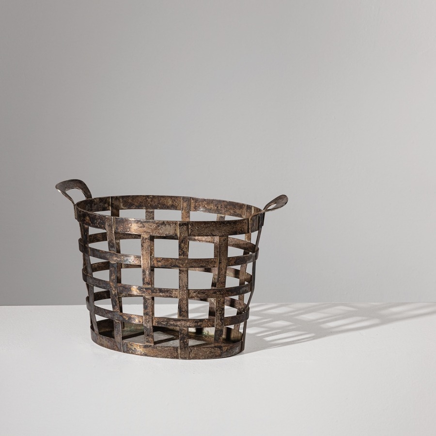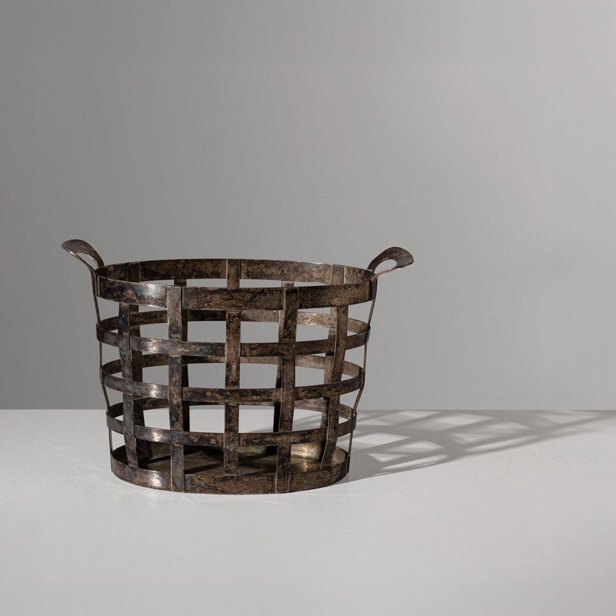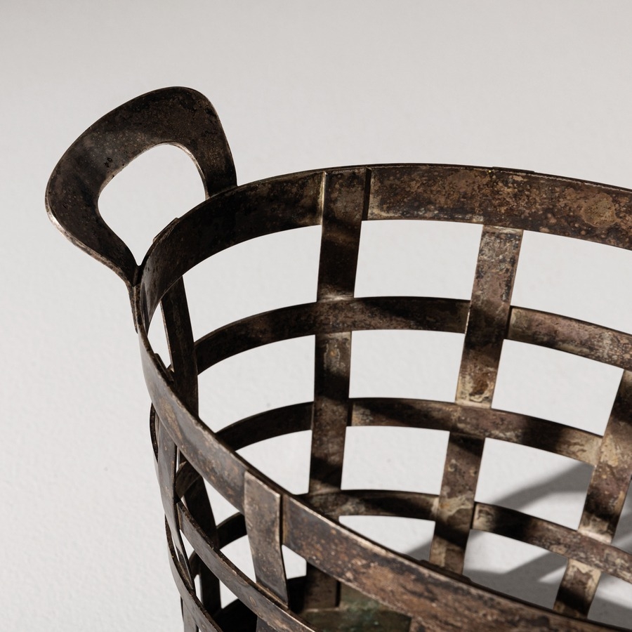 Cesto portafrutta. Metallo argentato. Produzione Krupp Milano anni '30. Marchio Krupp e 'Proprietà Agip', impressi.