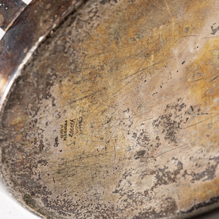 Righ, graffi, segni d'usura, lievissime deformazione, ossidazione marcata e piccole mancanze all'argentatura.
