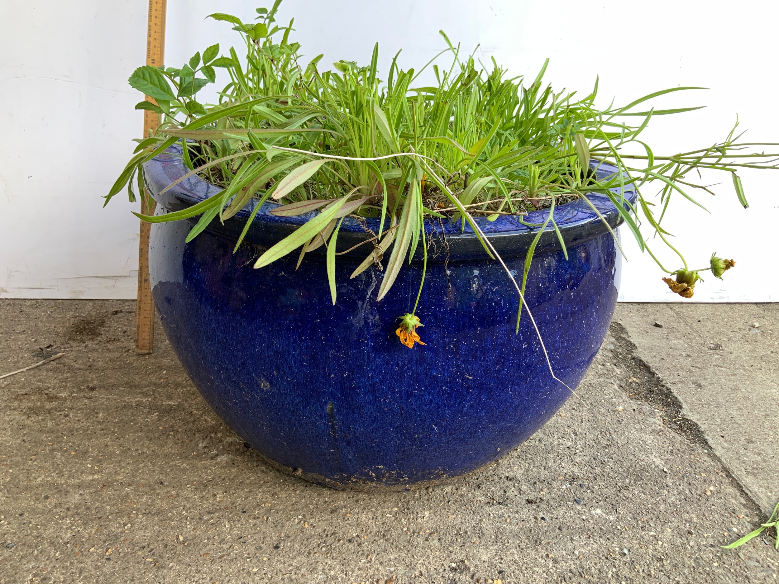 Large Blue Glazed Garden Planter
