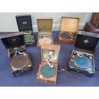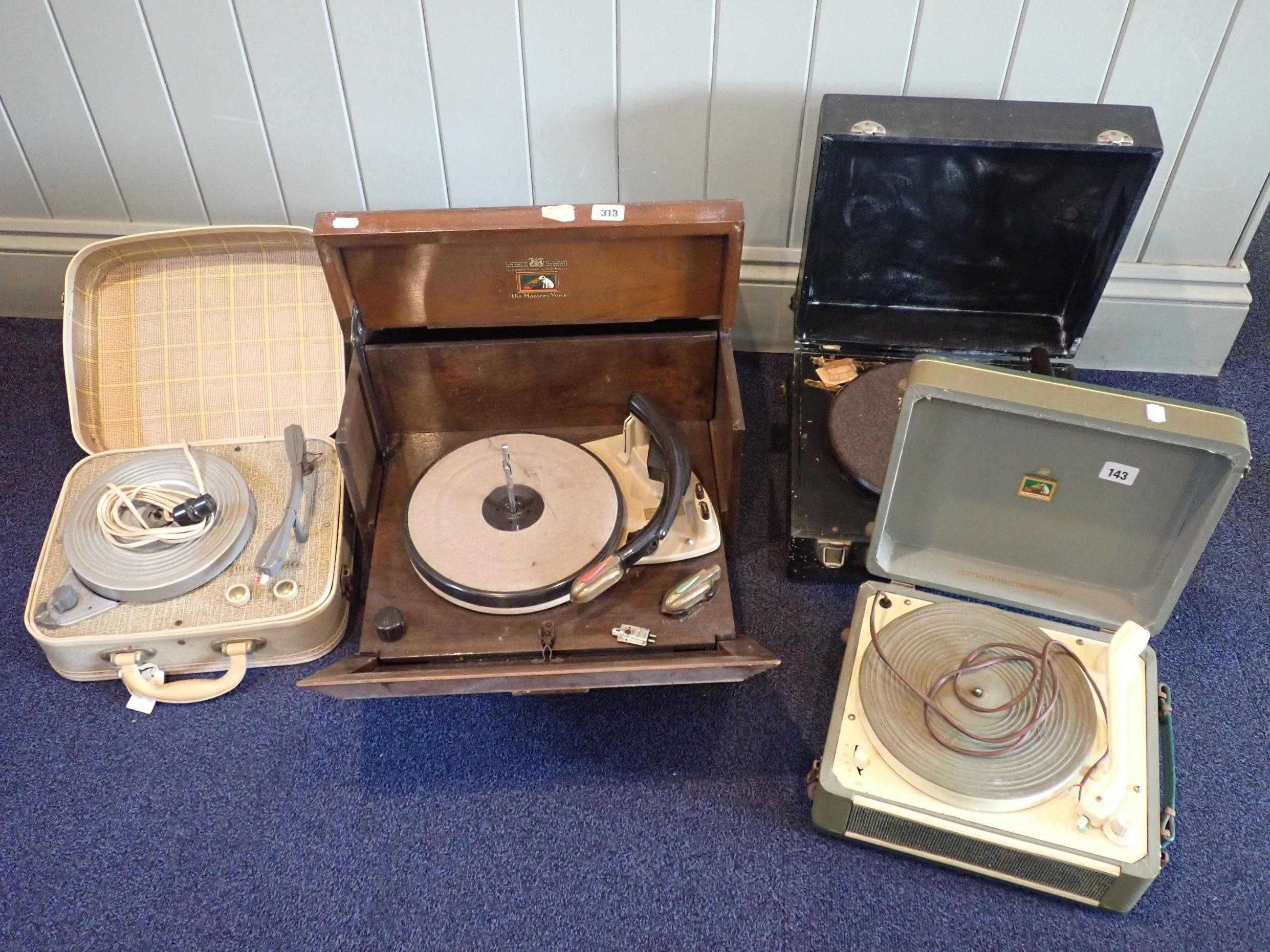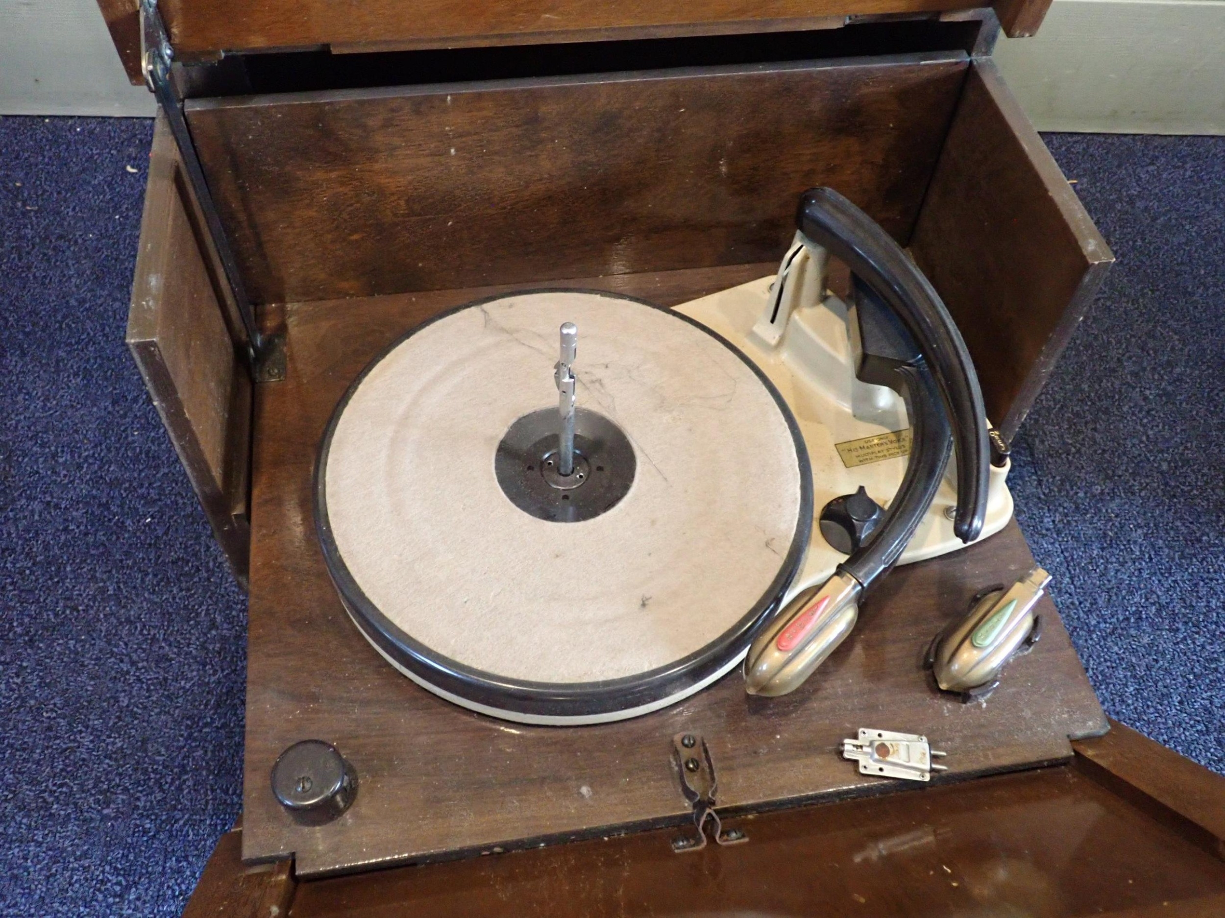walnut cased, with dual-action opening, and interchangeable 78 and 33/45 pick-ups (case woodworm), with three other 1950s record players (all for display/ spares or restoration) (4)