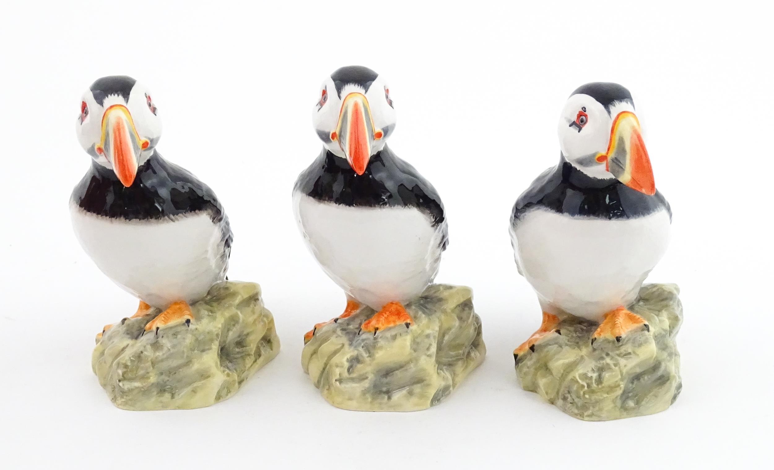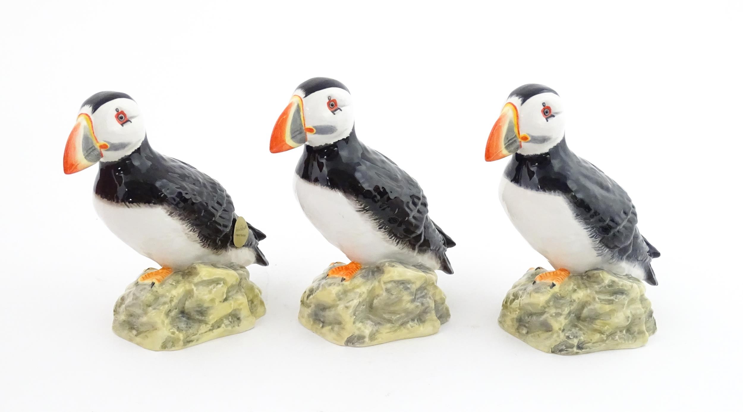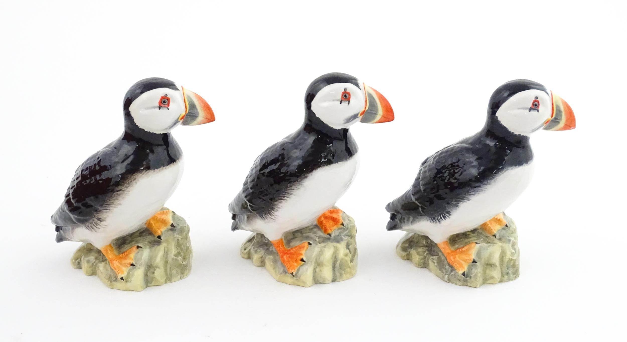 Three John Beswick models of Puffins. Marked under. Approx. 4 1/4" high (3)