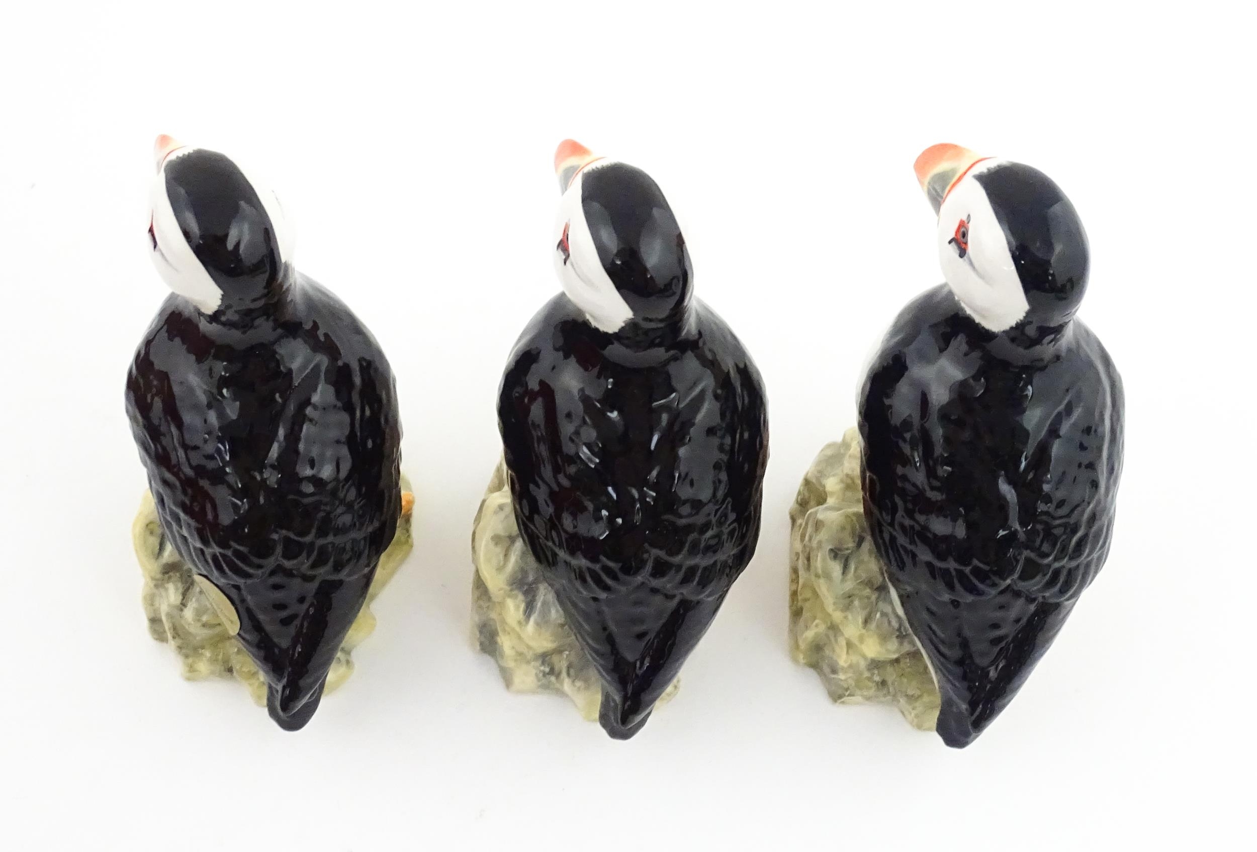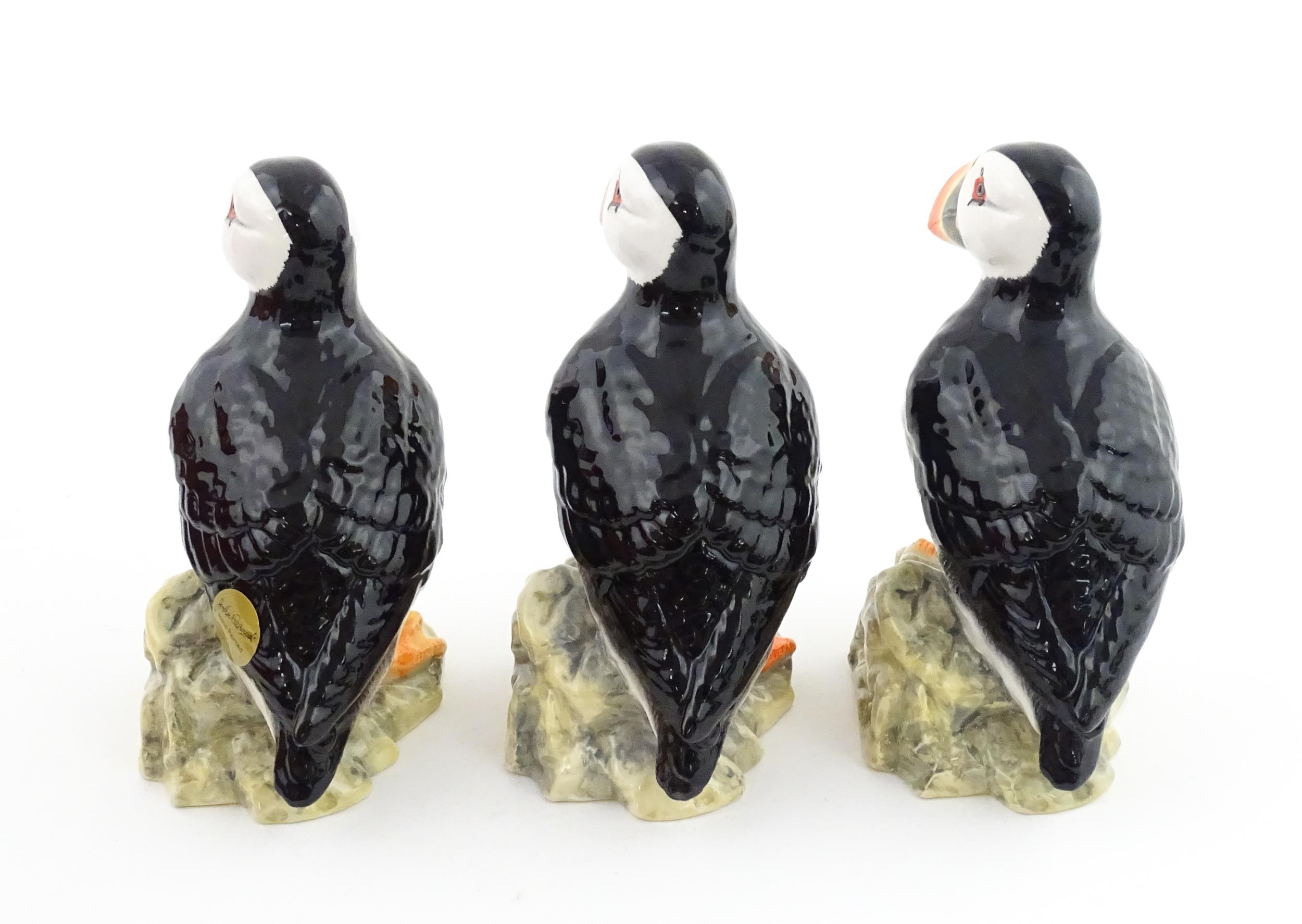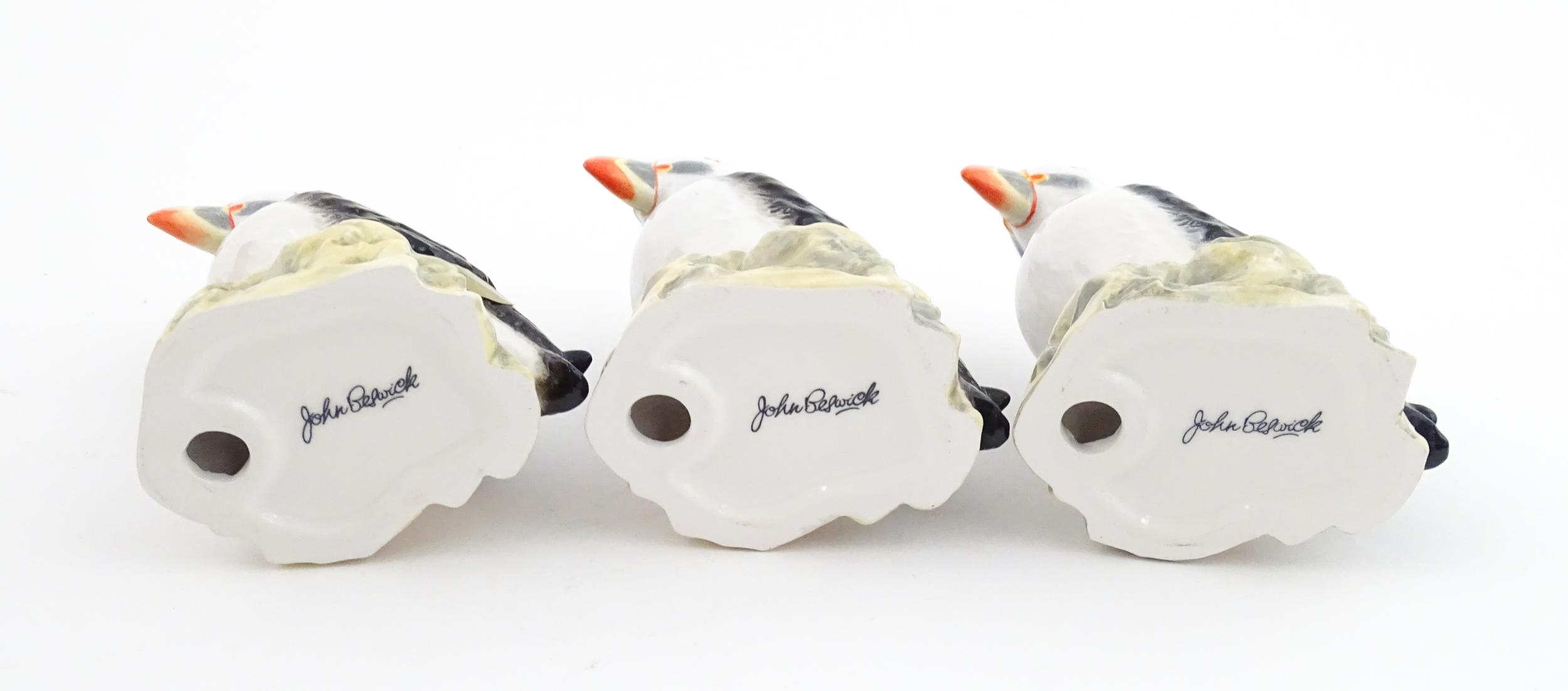 Three John Beswick models of Puffins. Marked under. Approx. 4 1/4" high (3)