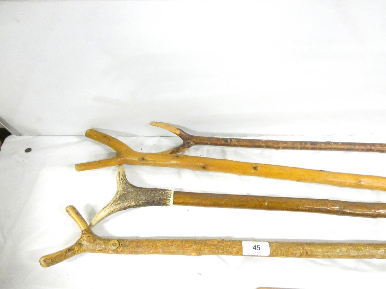 Four vintage thumbs sticks to include one antler.