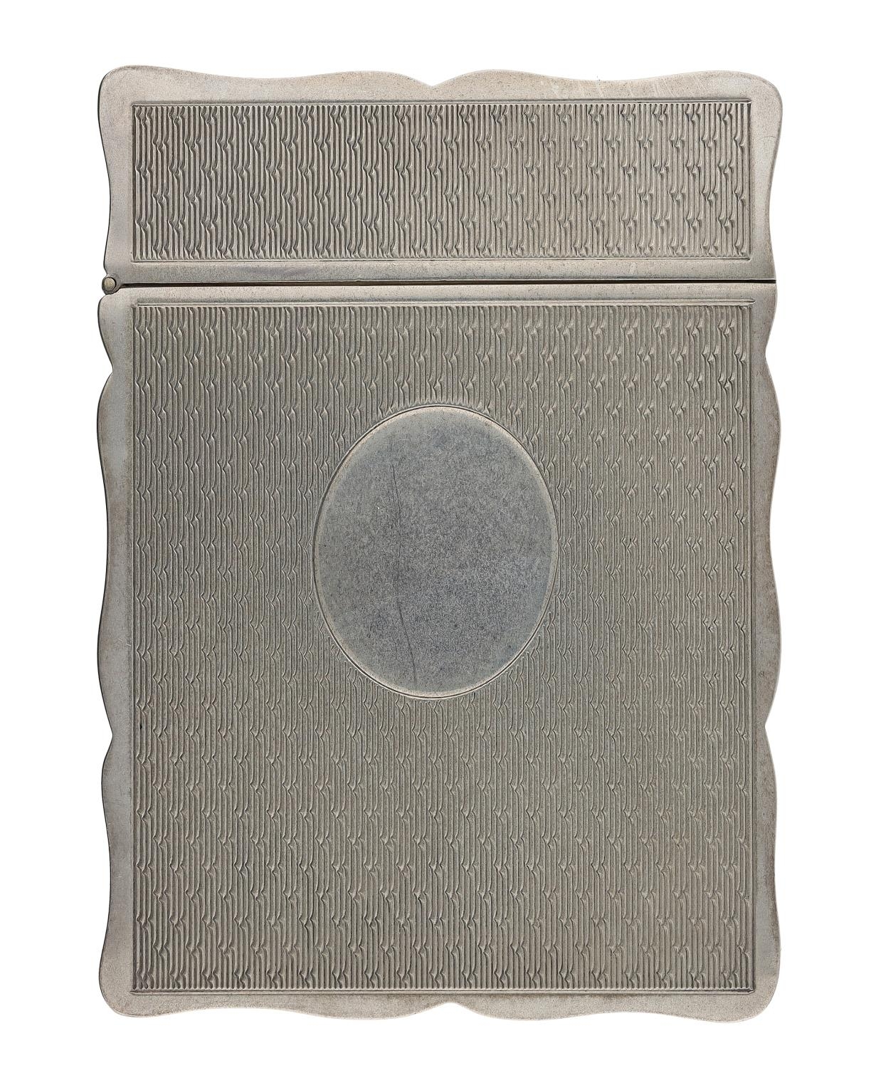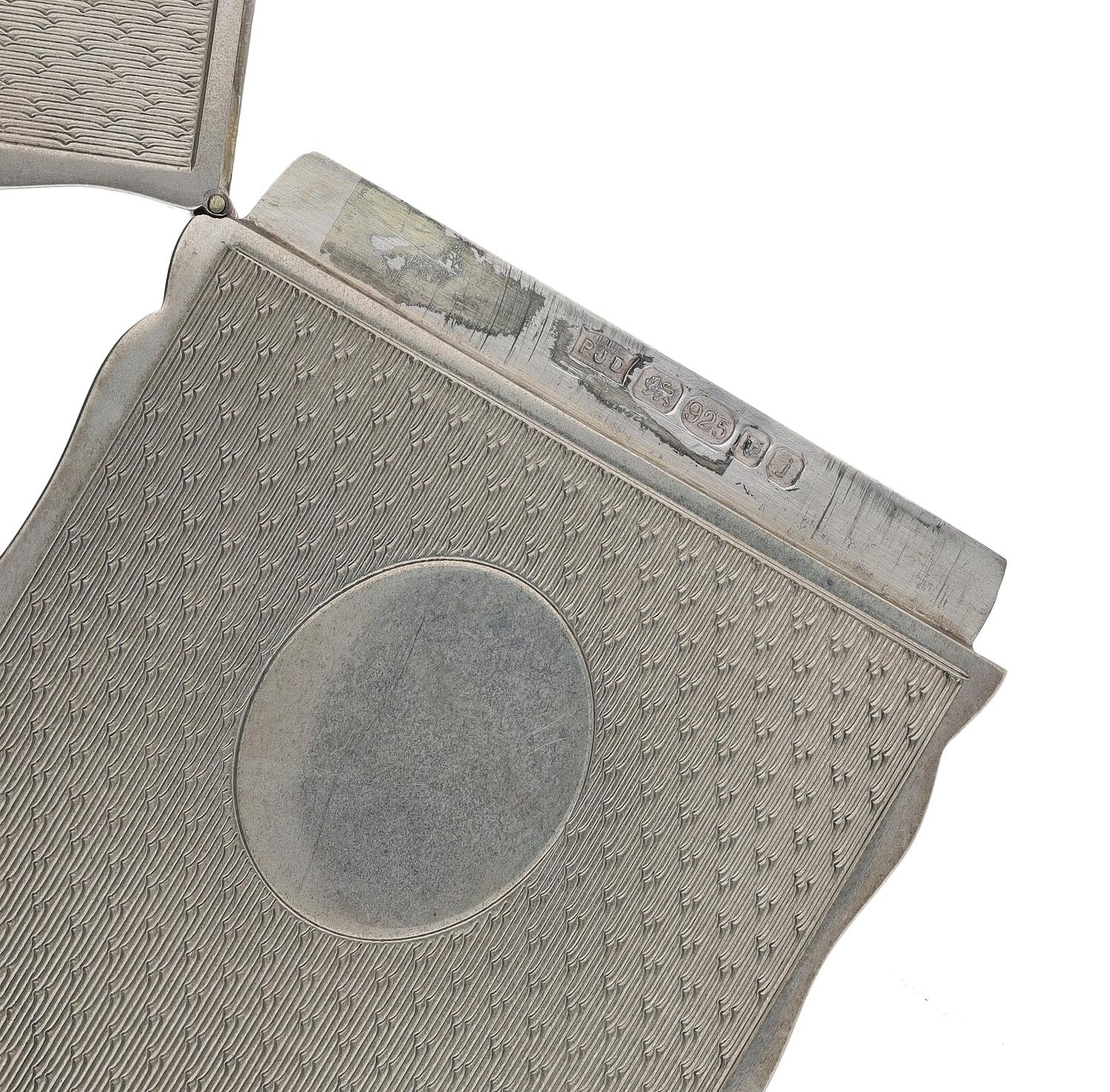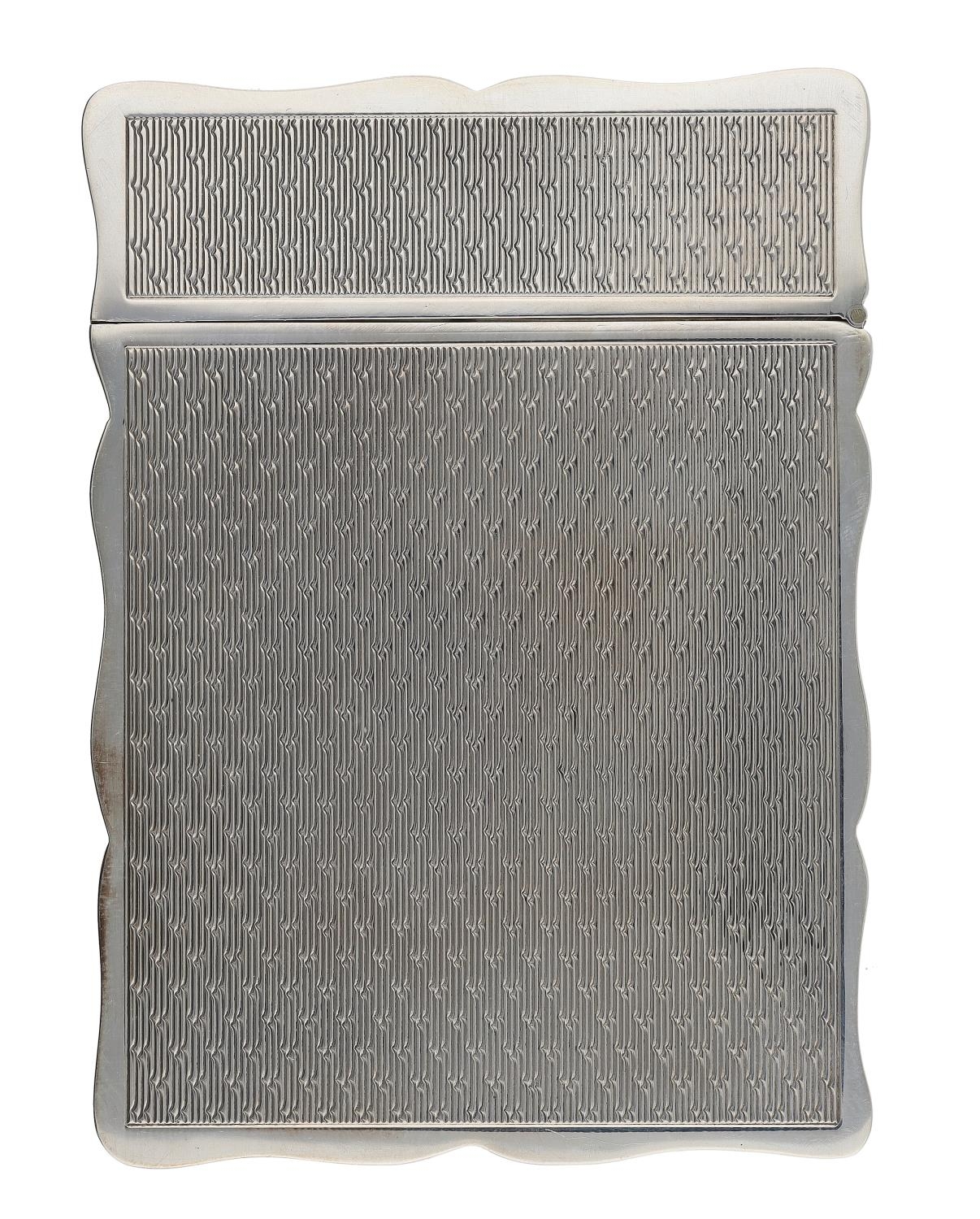 PJD Silver Ltd silver card case, having a shaped edge and engine turned decoration to the front and reverse, hallmarked London 2008, 2.5" x 3.5", 116.6gm