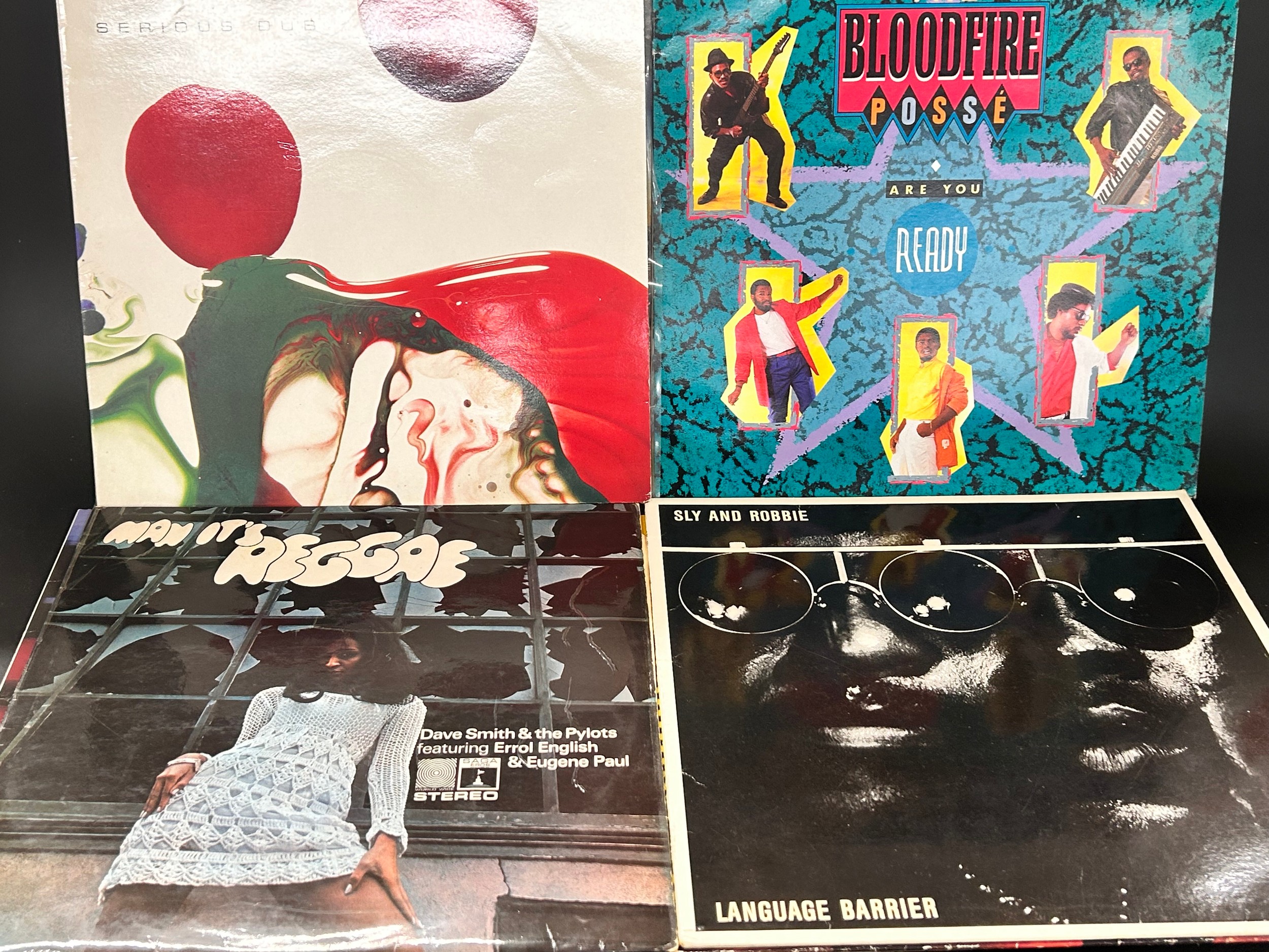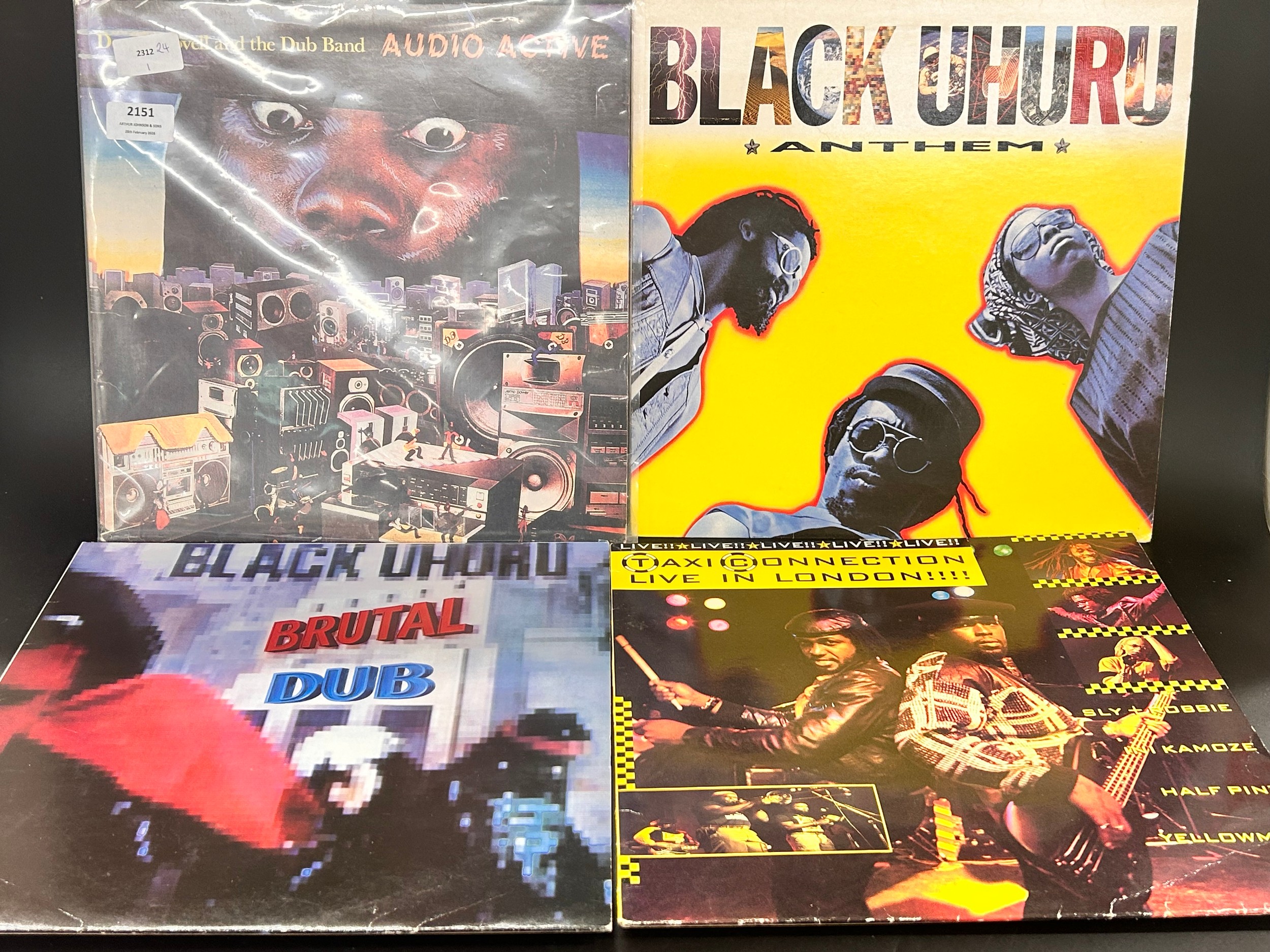 Nine vinyl LP records; reggae and dub, including Dennis Bovell, Black Uhurn, Sly and Robbie