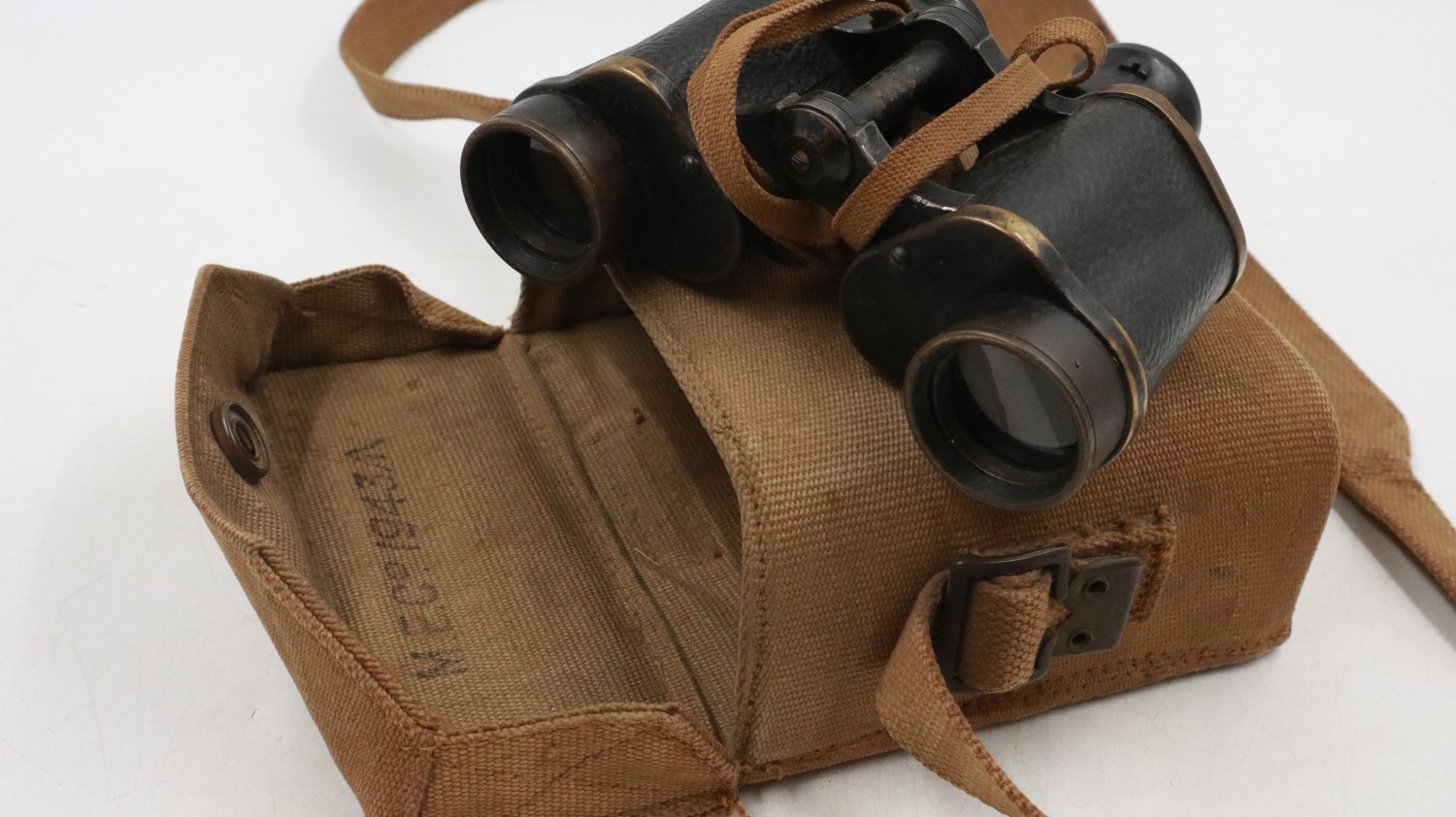 British WWII Kershaw 1943 dated binoculars and canvas case. ...