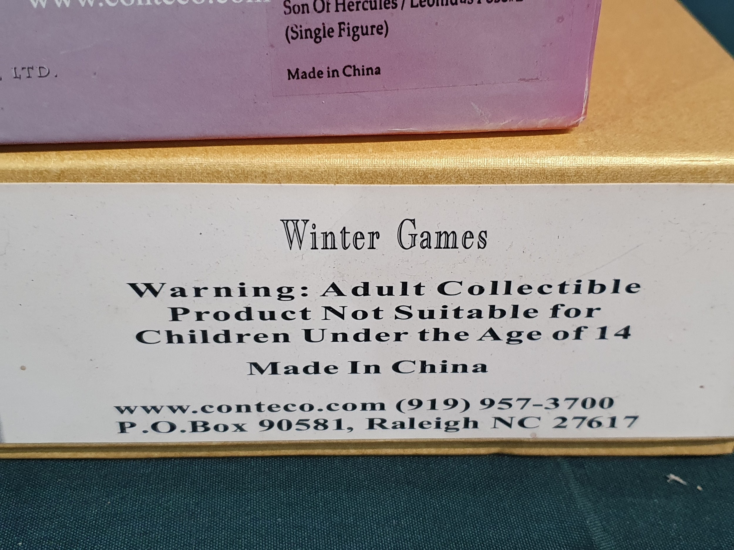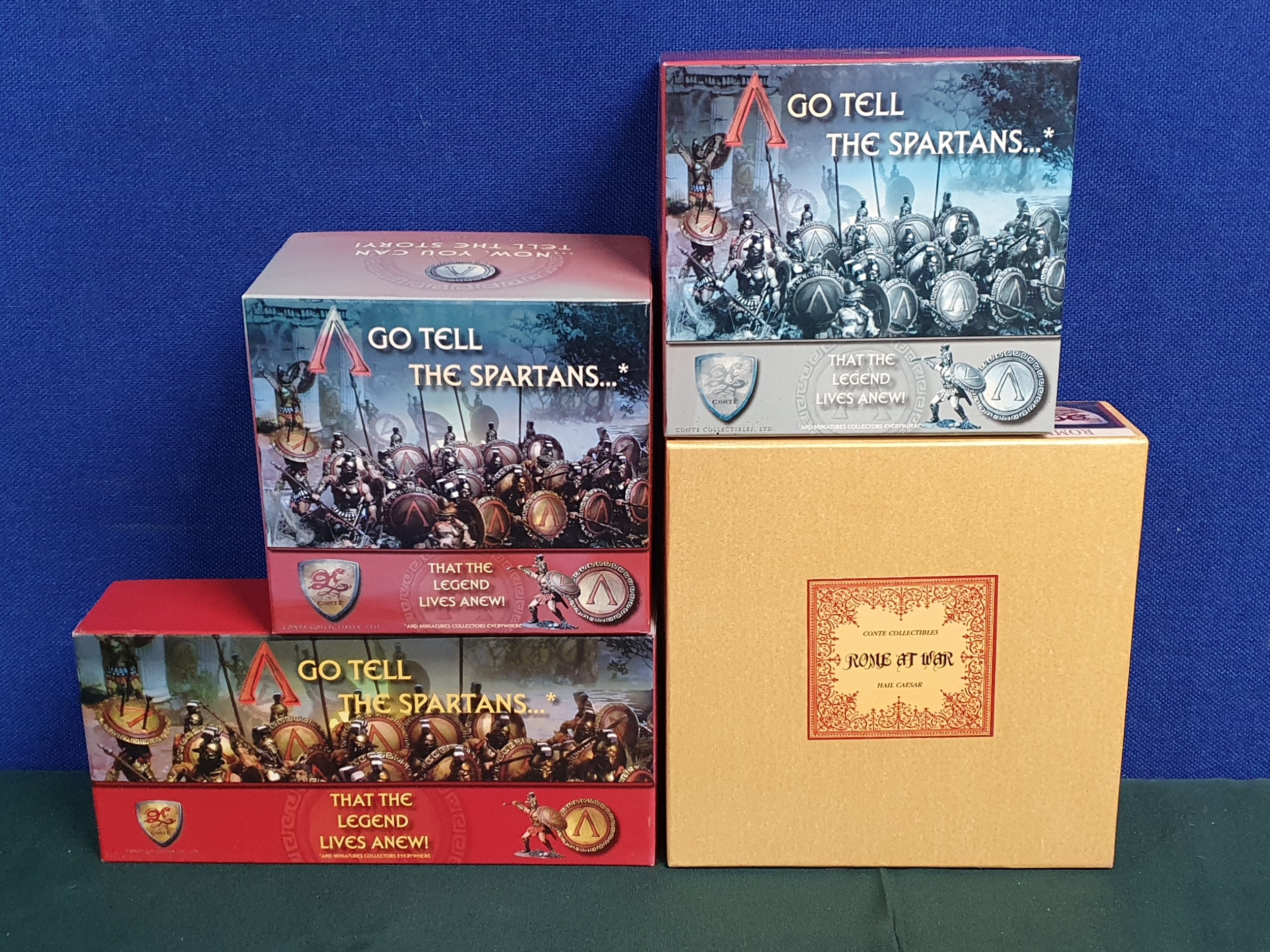 Four boxed Conte Collectibles Figures and Groups comprising 'Go Tell the Spartans' AG013 'Son of Hercules/Leonidas Pose 2', AG008 'Fury Unleashed' and Rome001 'Winter Games'