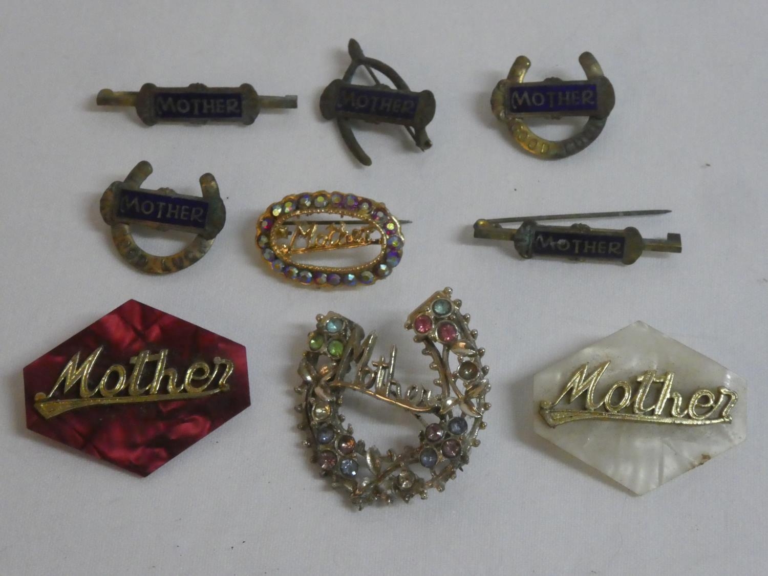 A lot of vintage 'Mother' brooches.