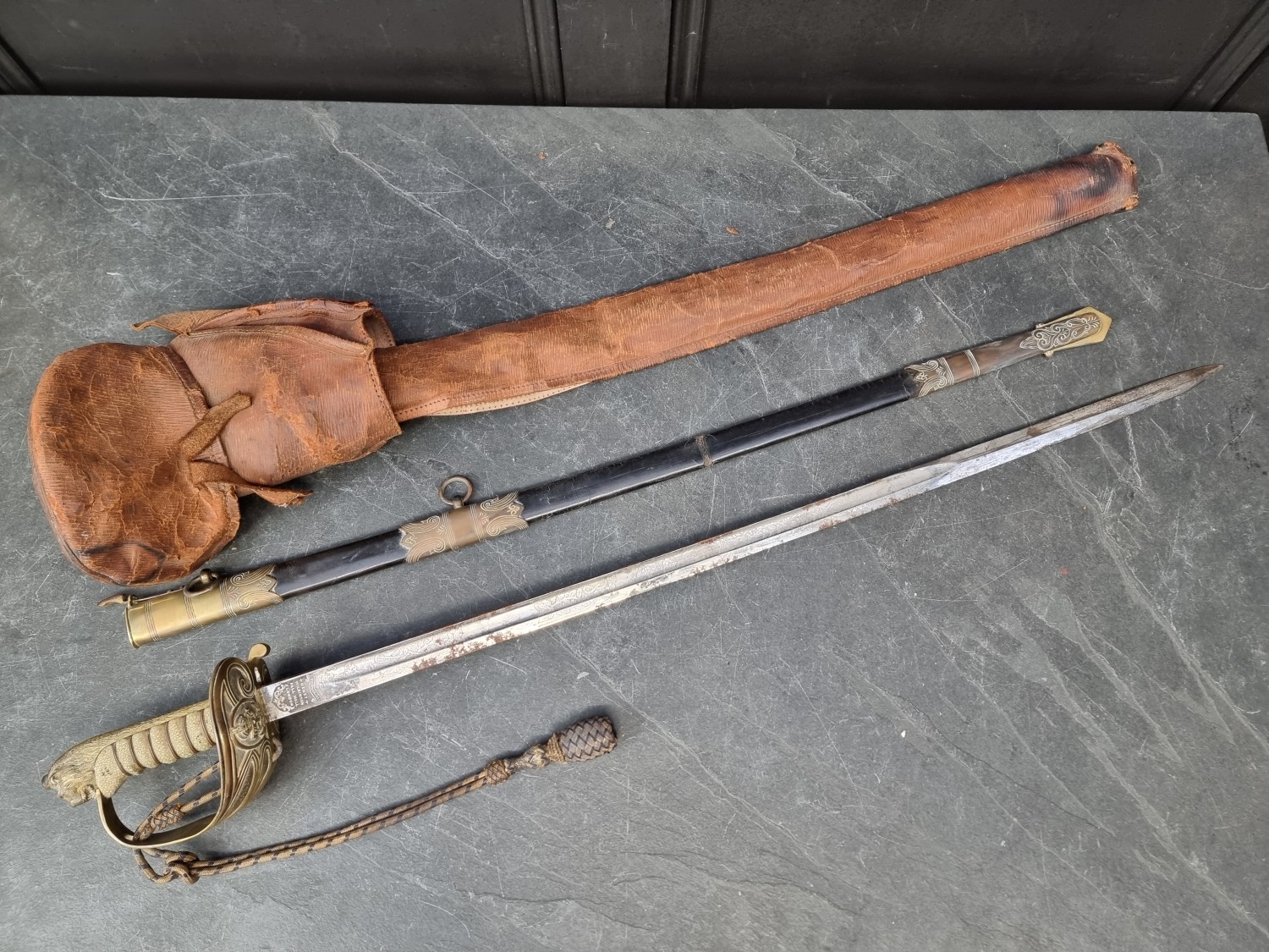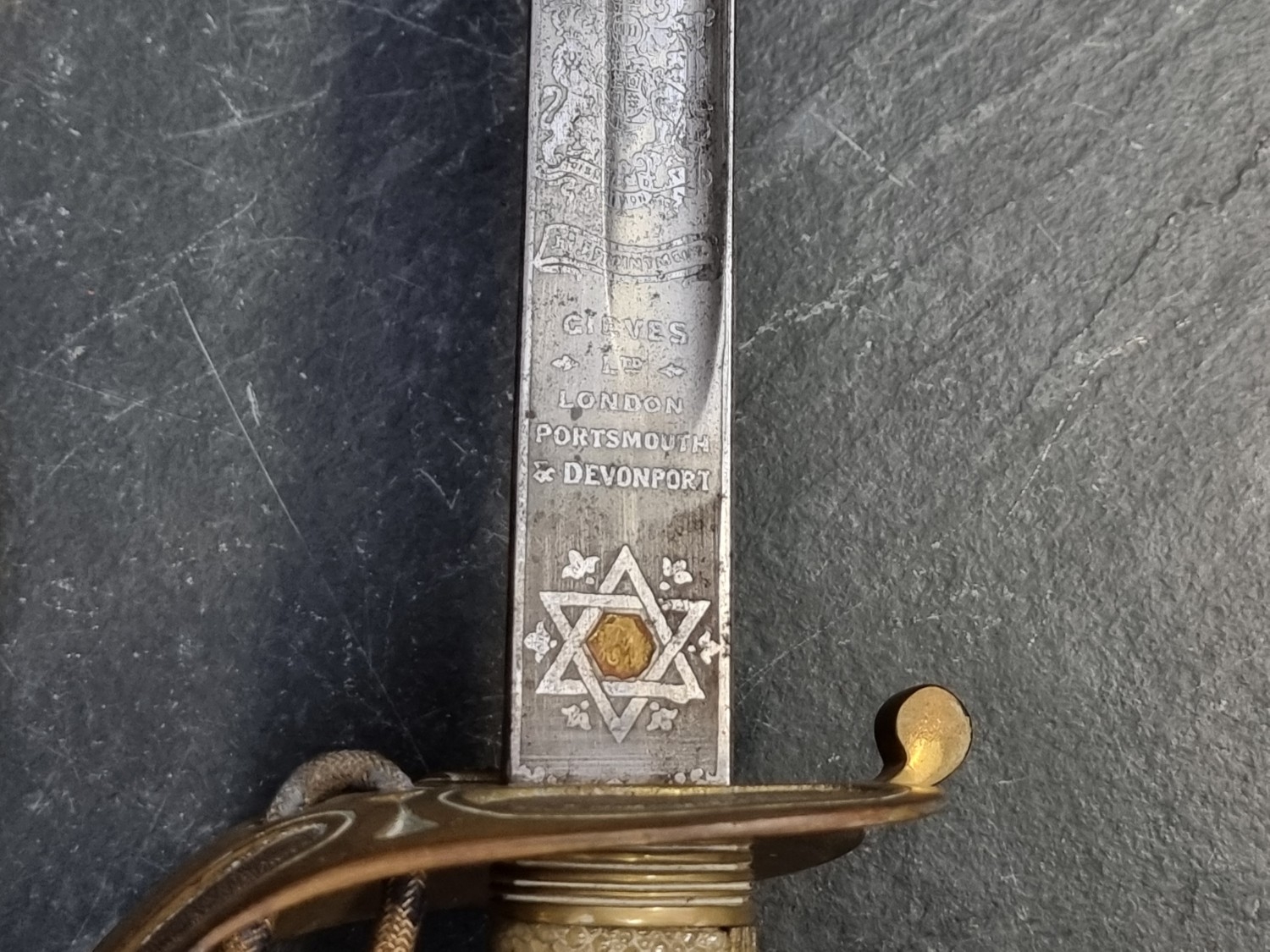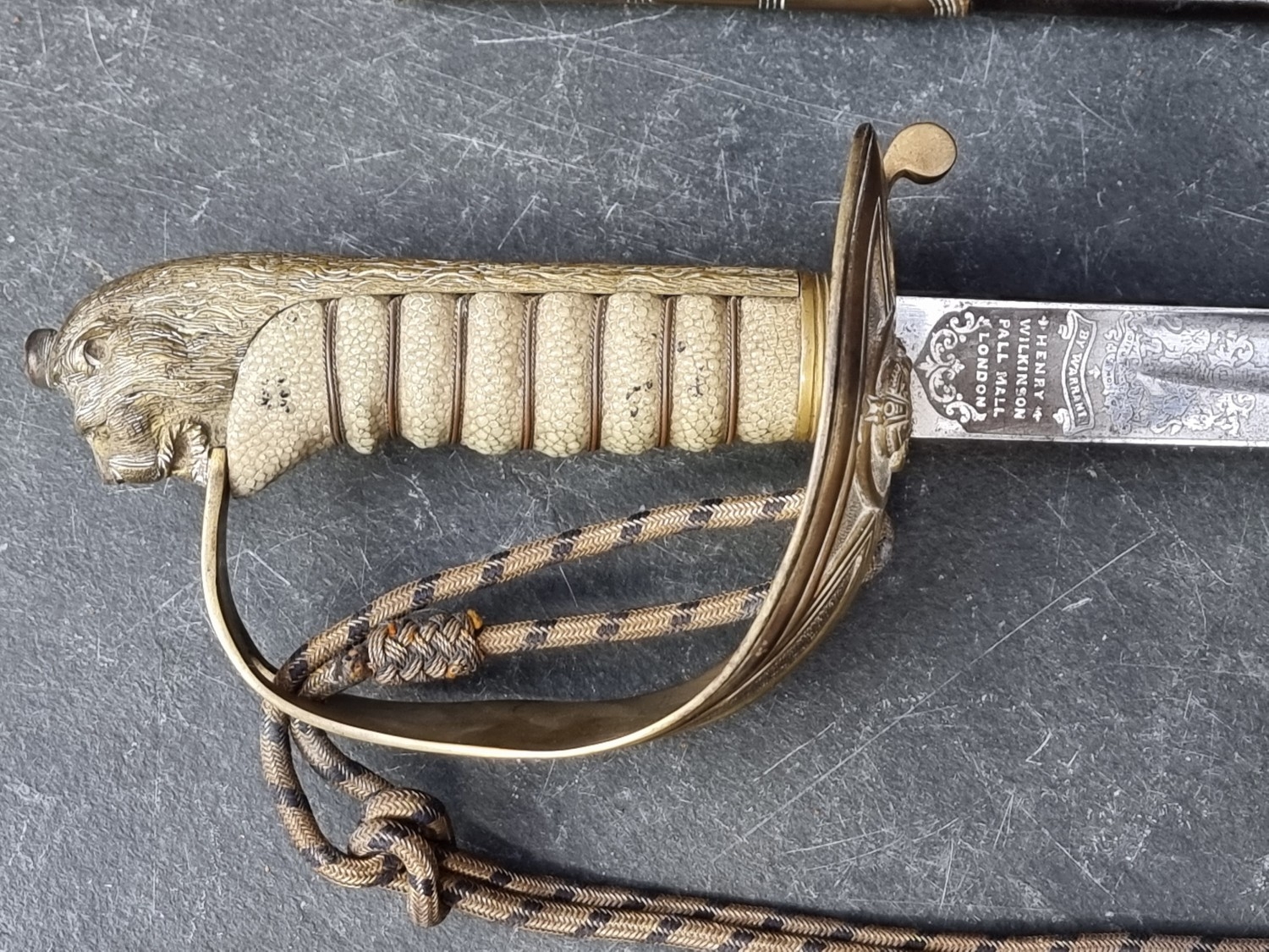 A Royal Naval 1846 pattern officers sword, by Henry Wilkinson Pall Mall, supplied by Gieves, with signed acid etched 80cm blade, numbered 58867.