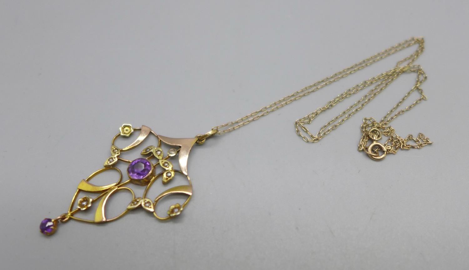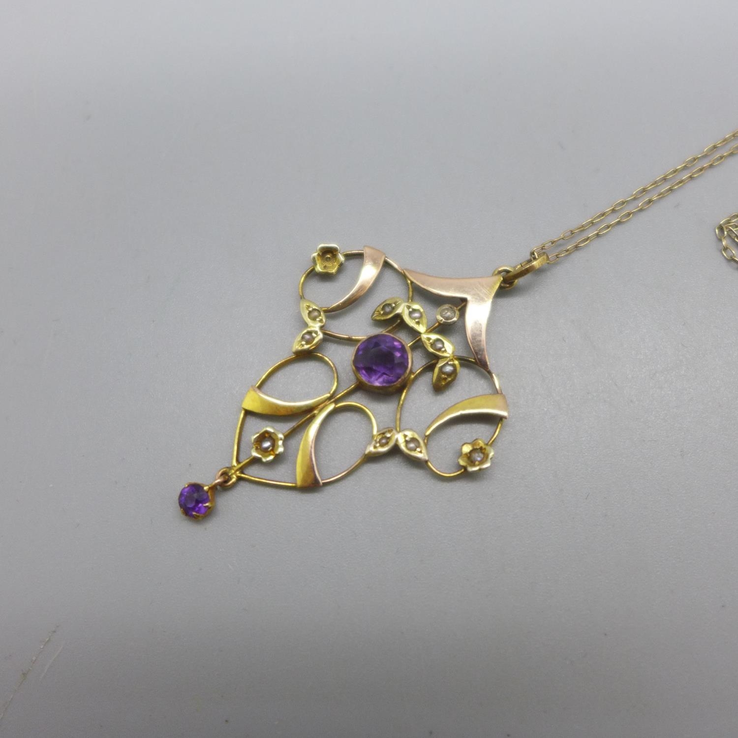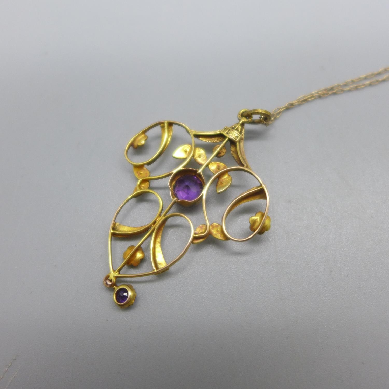 A 9ct gold Art Nouveau pendant and chain, 3g