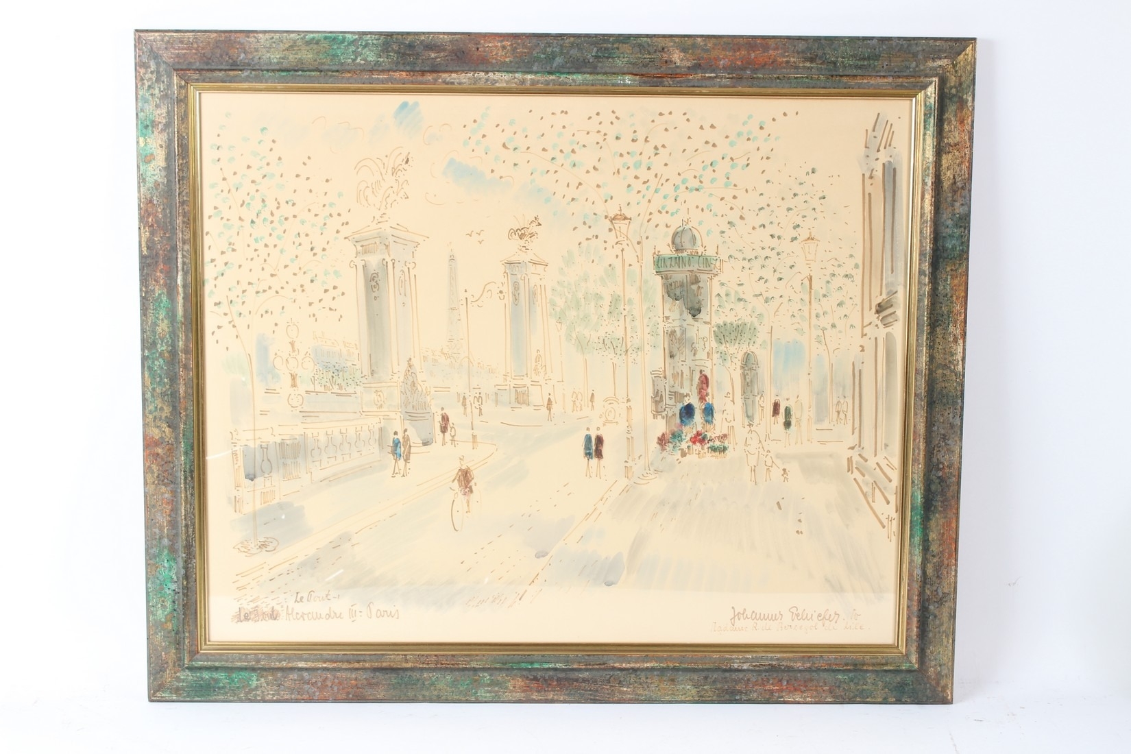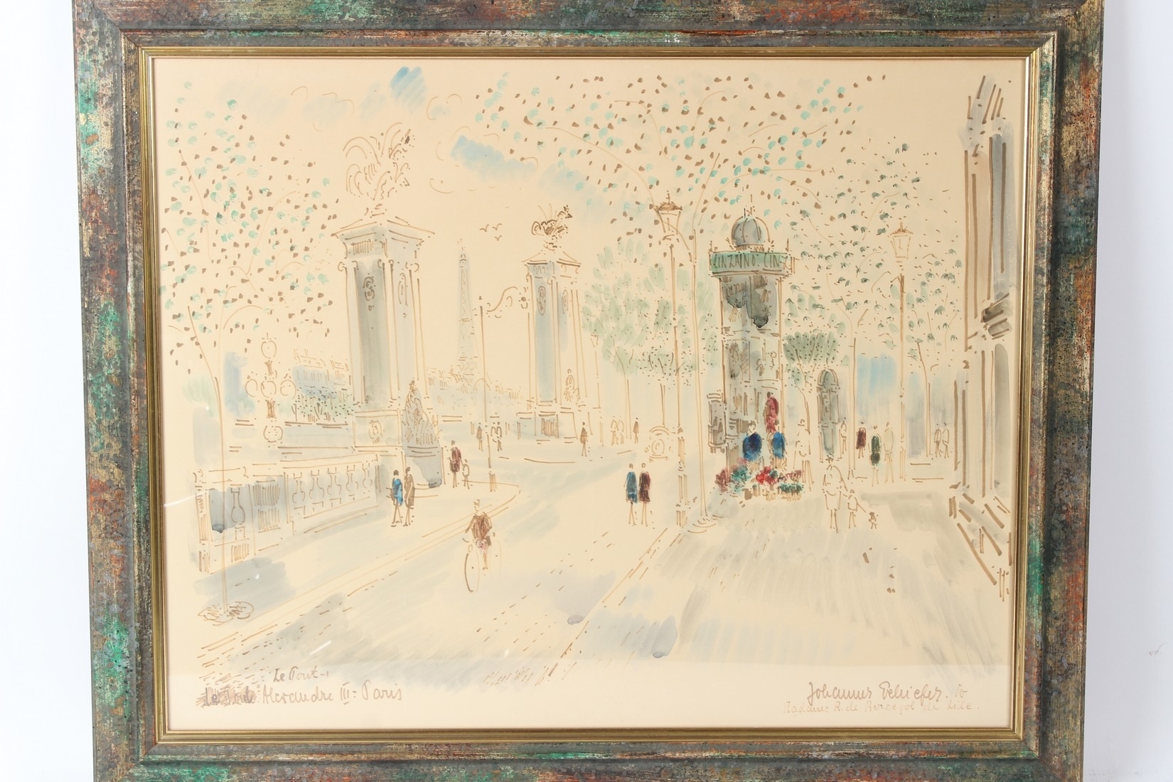 FRENCH SCHOOL (20TH CENTURY) Parisian street scene colour print 56 x 71cm