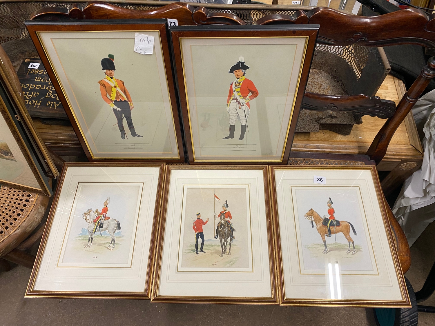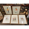 Three watercolours Royal Dragoons and two similar similar prints