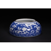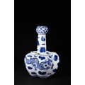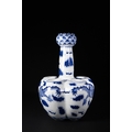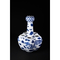 A Chinese Blue and White Porcelain Tulip Vase with Dragon and Cloud Motifs.