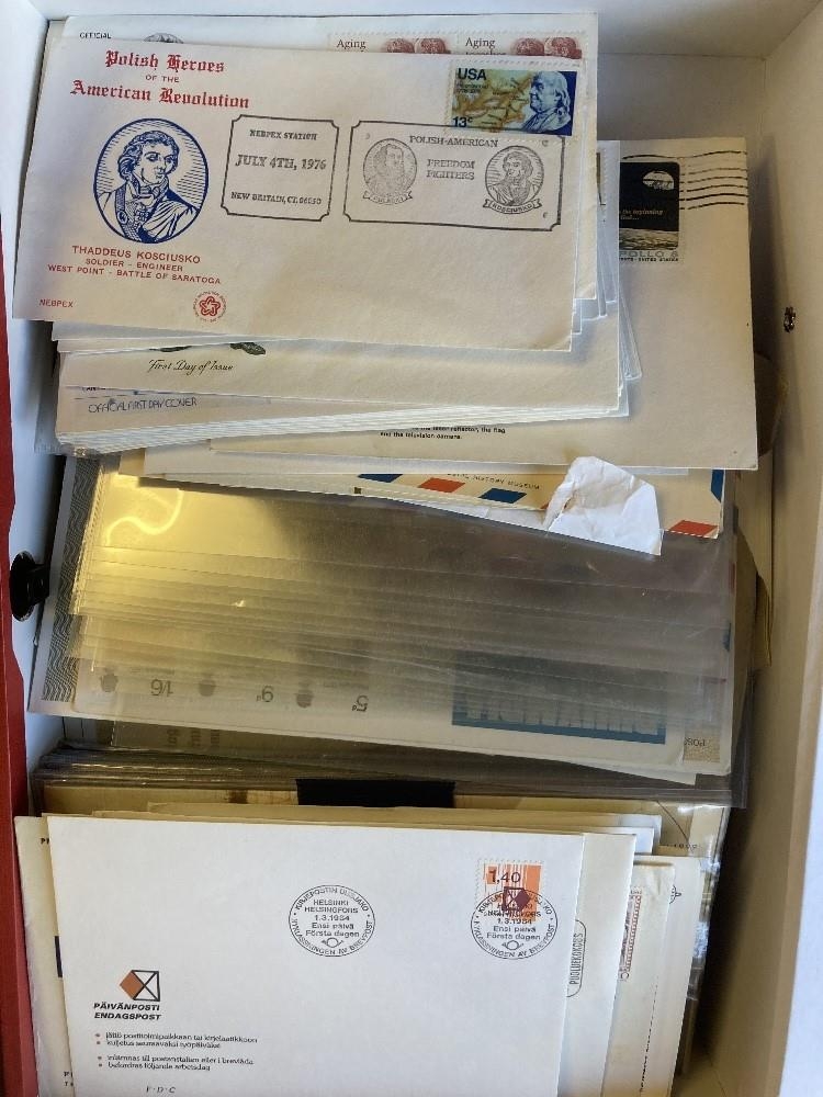 STAMPS Mixed box including GB Presentation packs, pre-stamp covers, including Free Fronts, USA airmails etc, Japan collection, India fiscals,