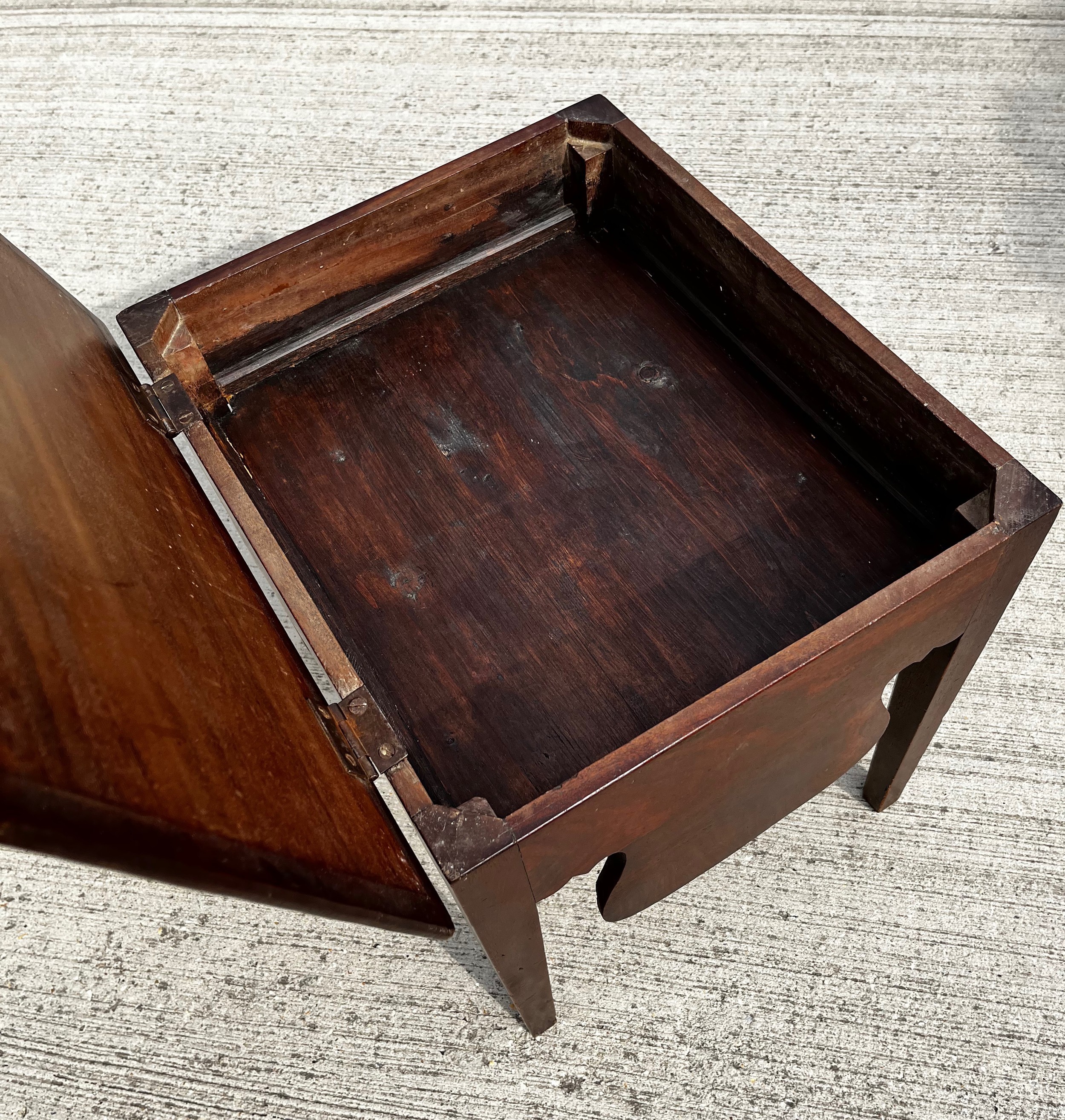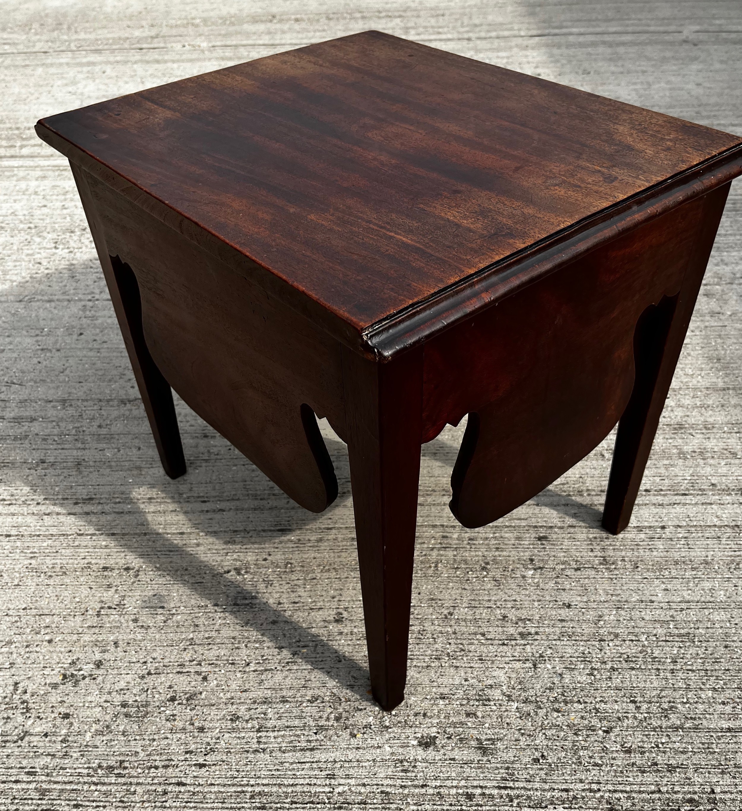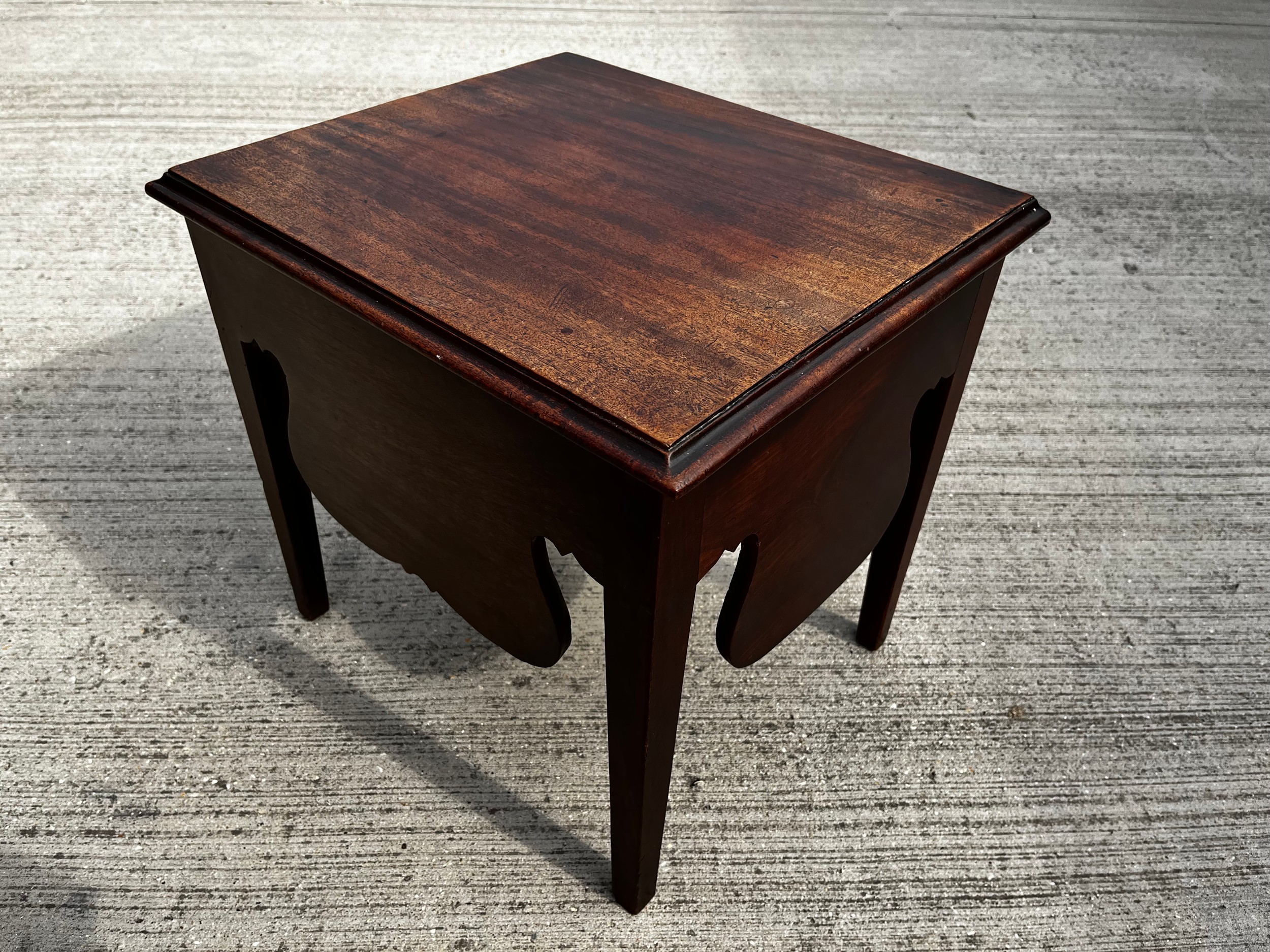 Mahogany side table with hinged lid and storage compartment.53 cm x 44 cm and 48 cm high