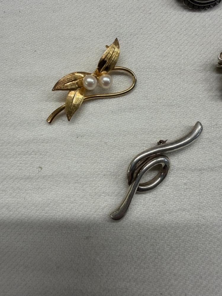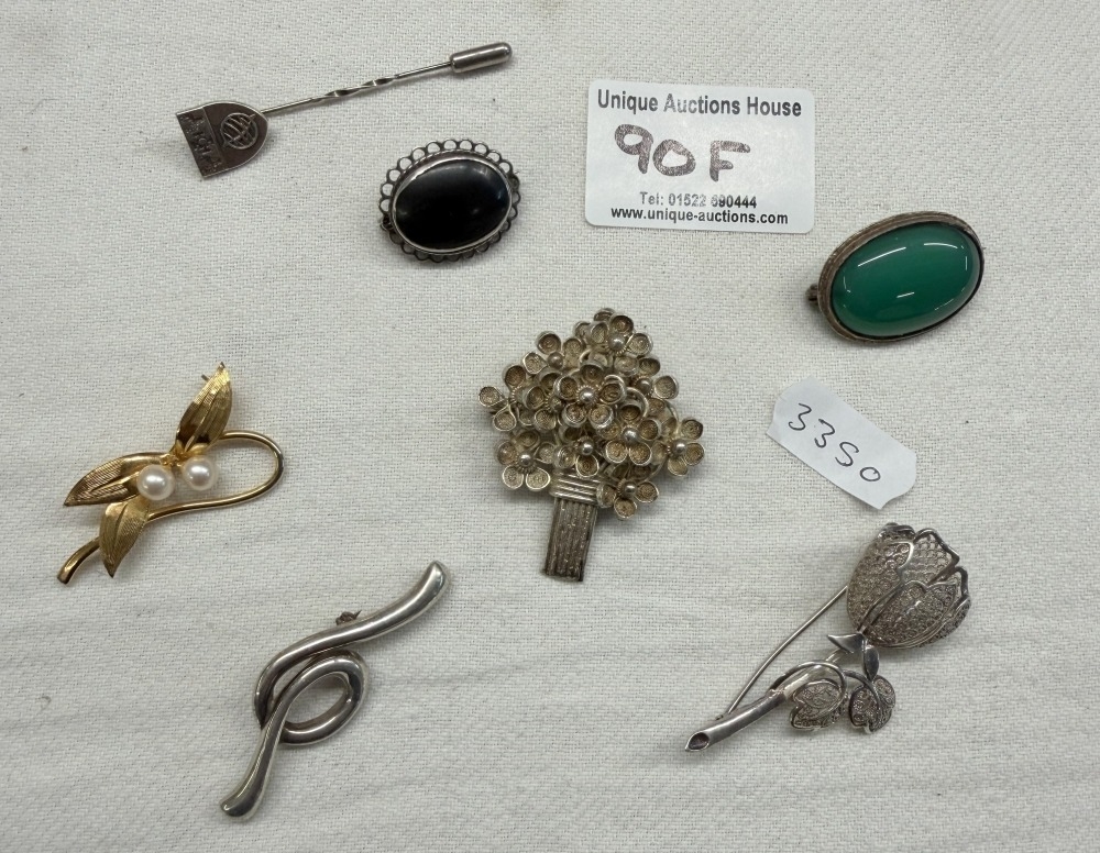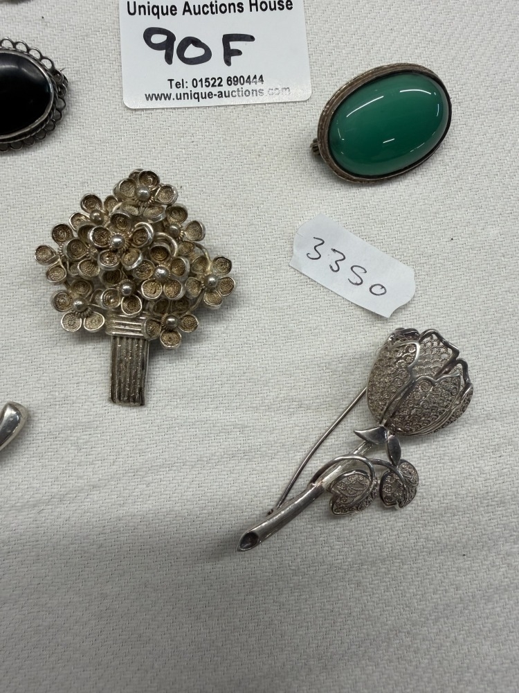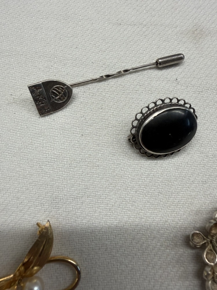 A quantity of vintage silver brooches & pins
