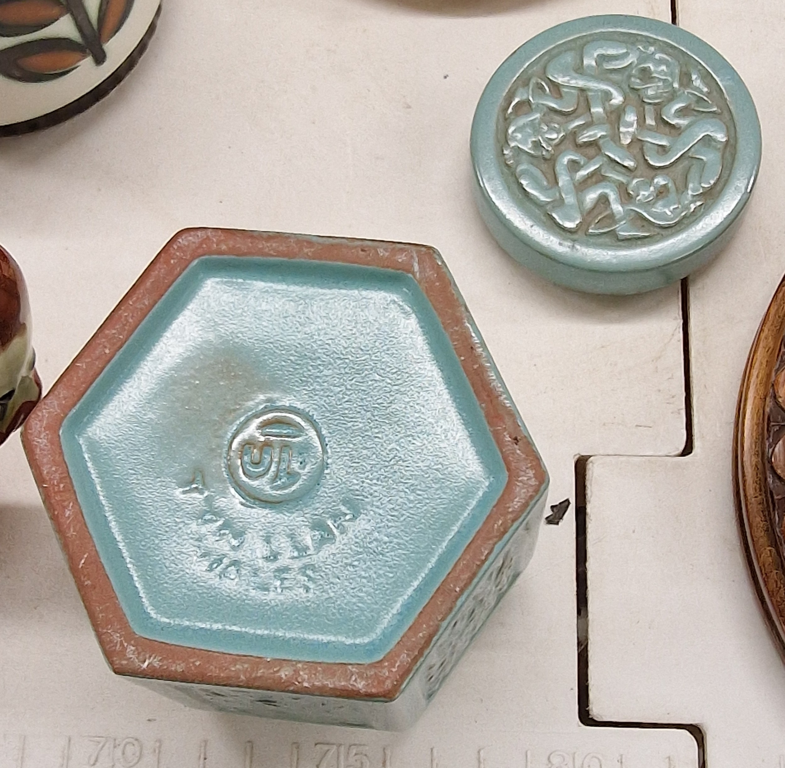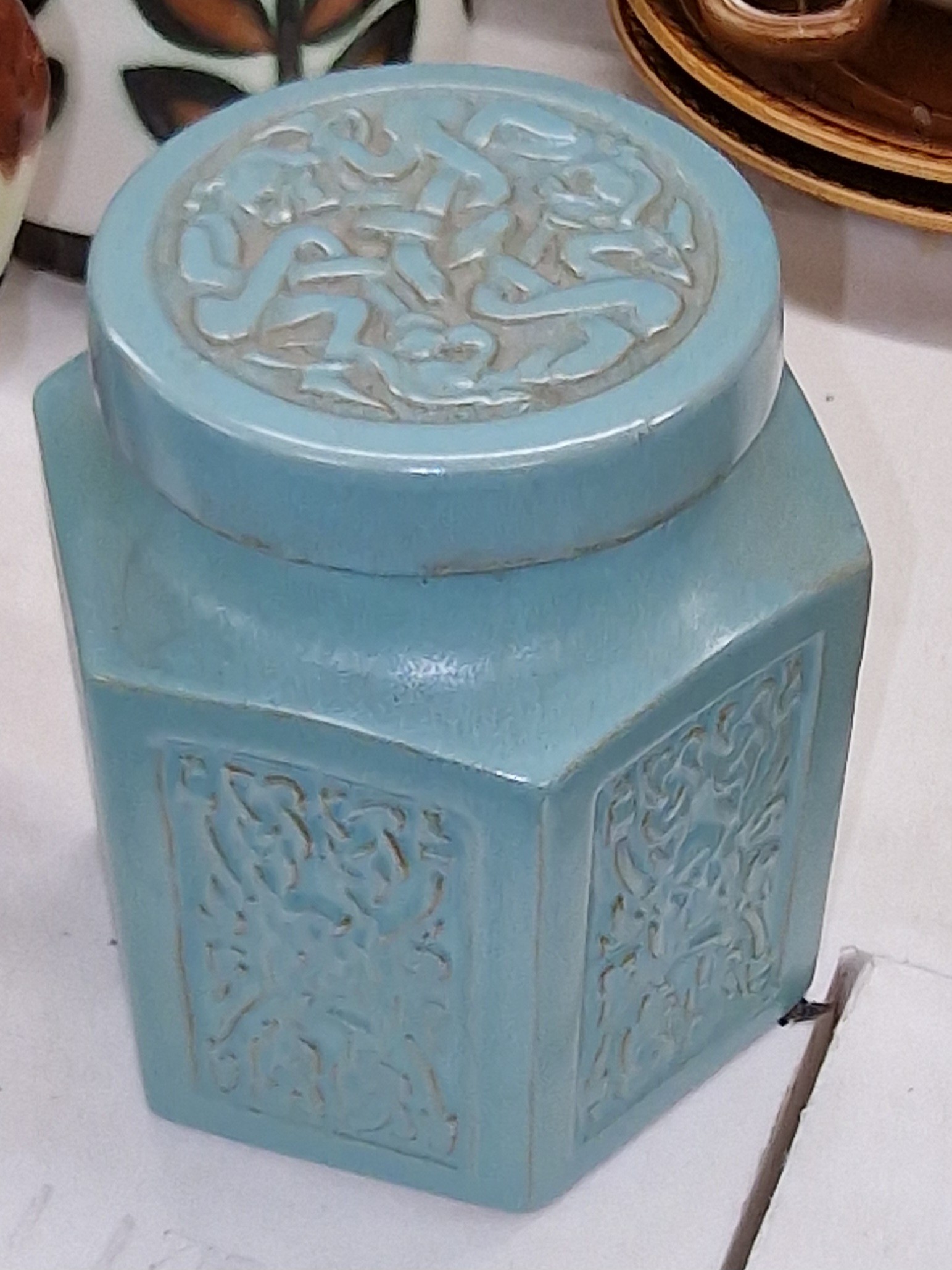 4" tall Tyn Llan Welsh studio pottery hexagonal pot with lid