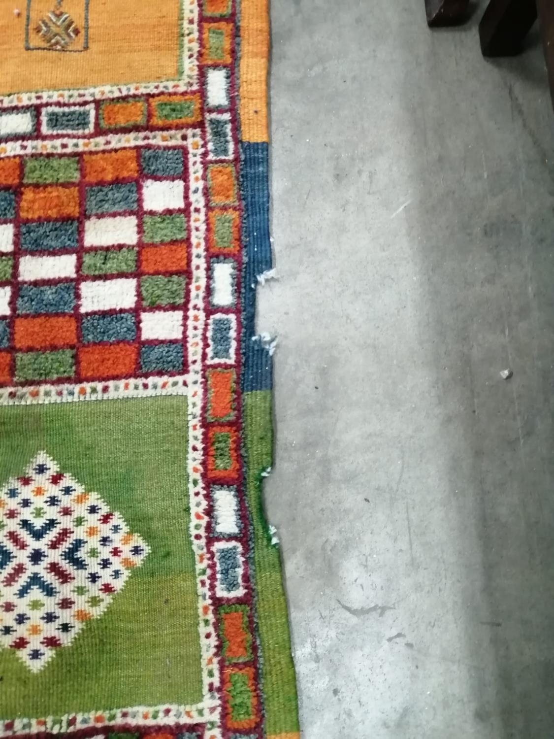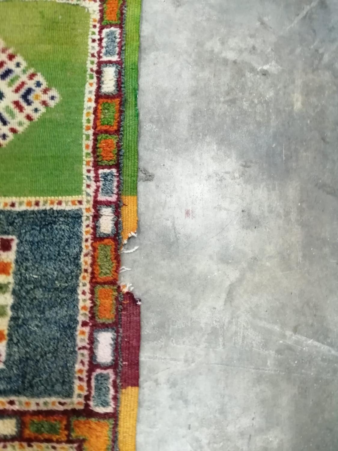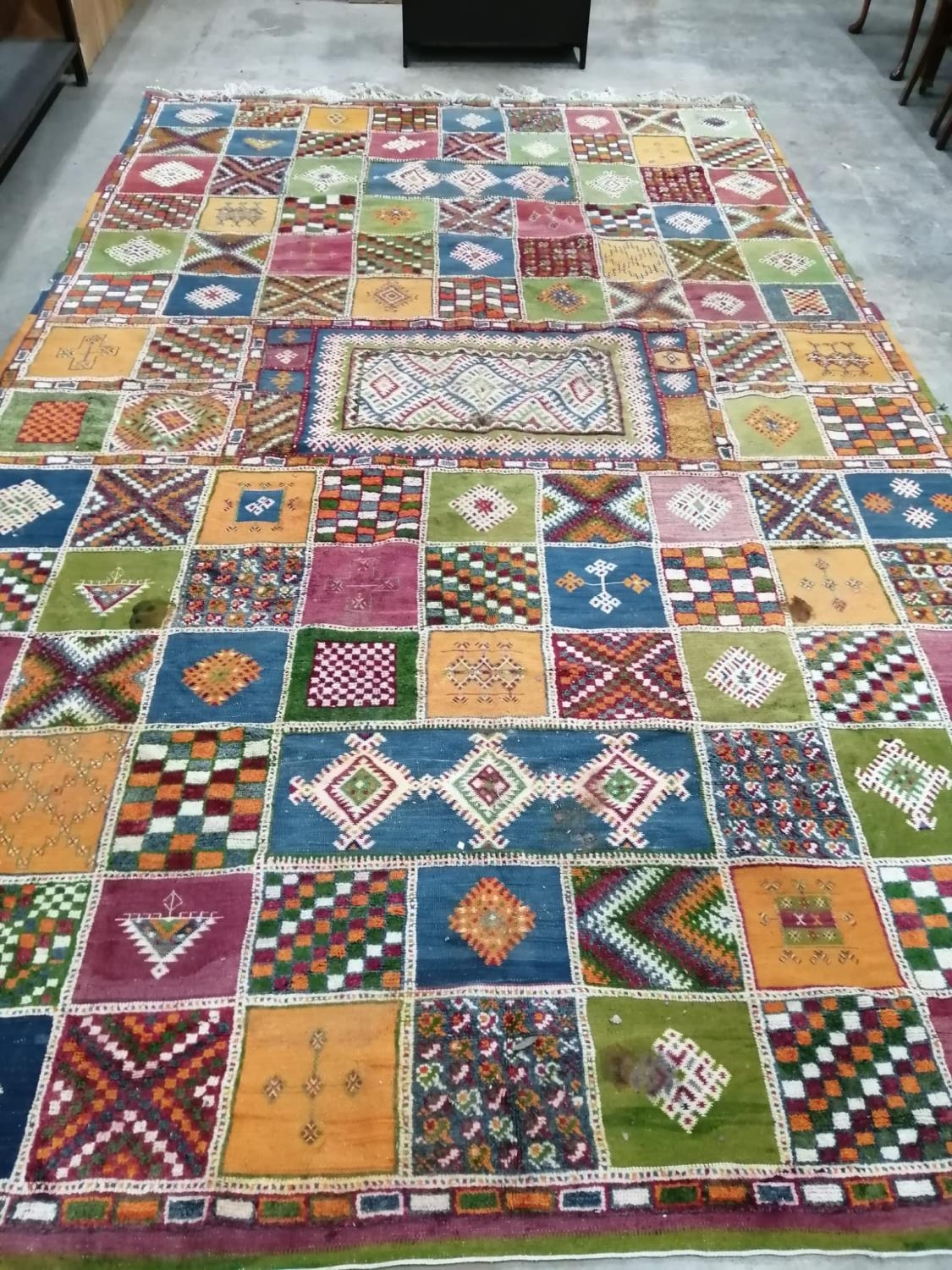 A Caucasian style wool carpet, woven with polychrome geometric squares, 430 x 260cm
