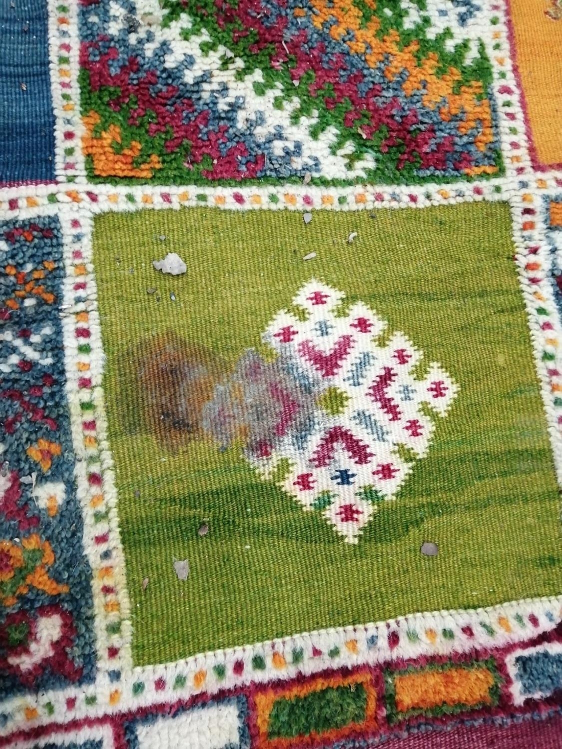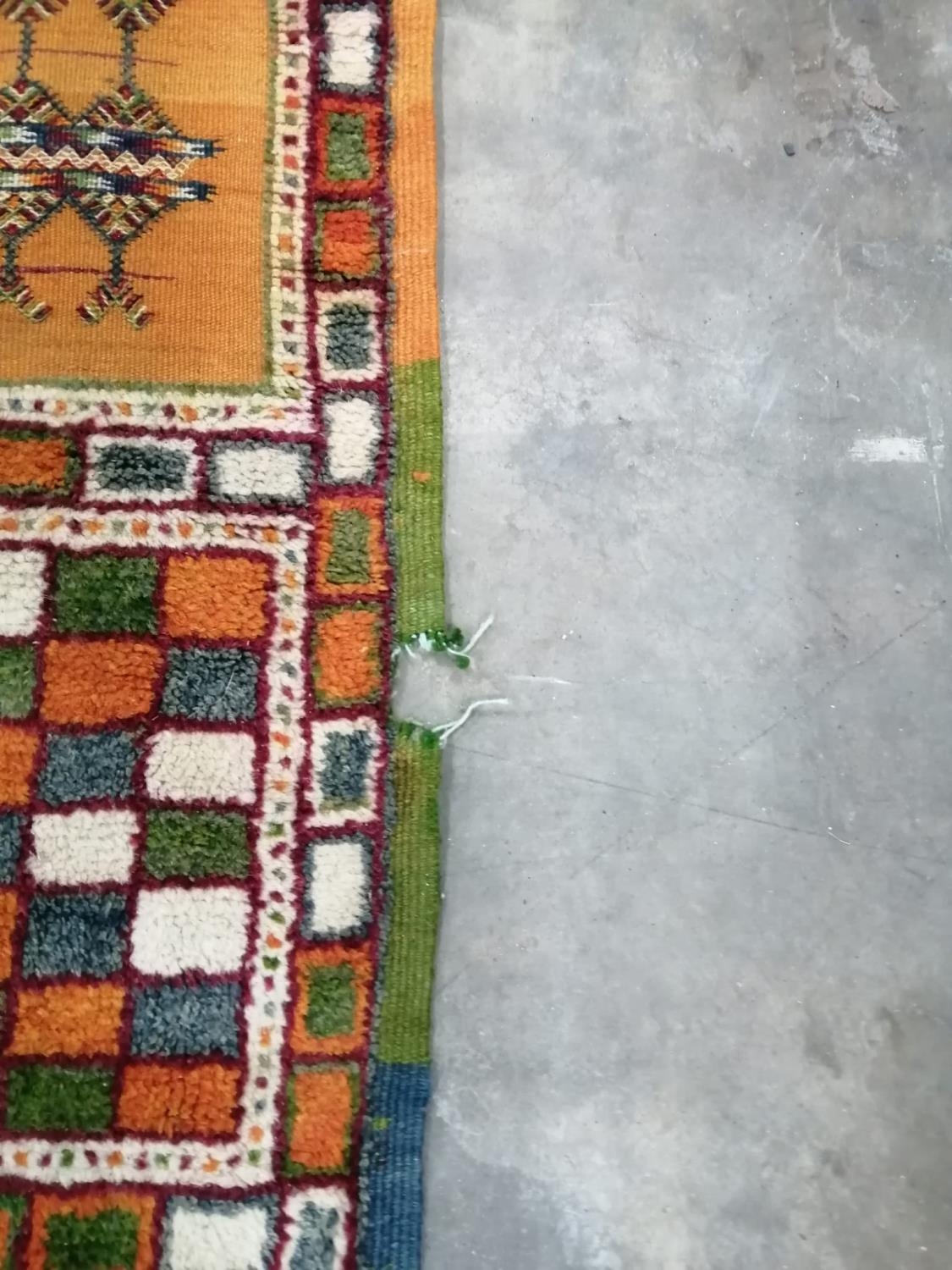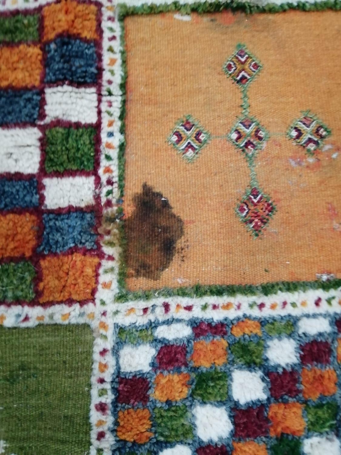 A Caucasian style wool carpet, woven with polychrome geometric squares, 430 x 260cm