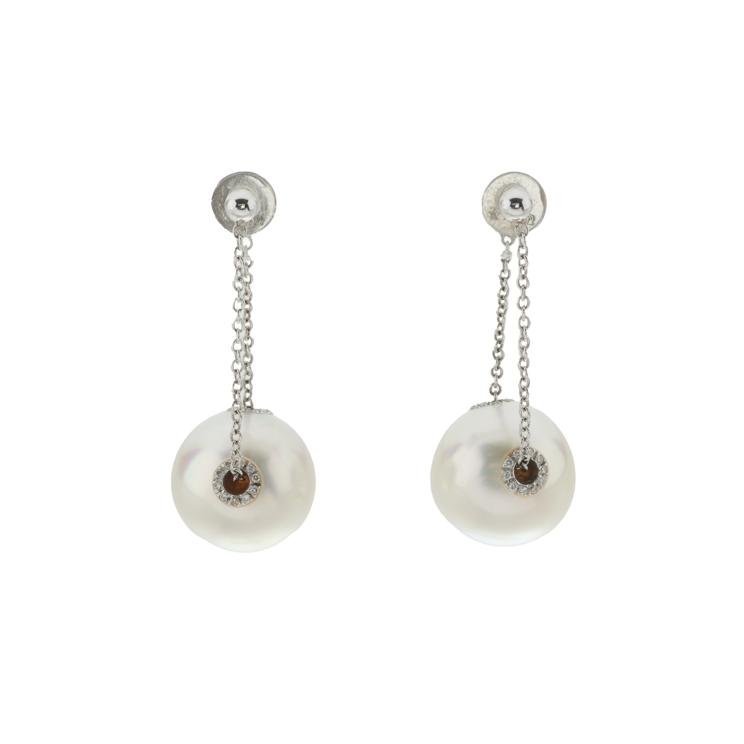 Overall good condition Light general wear Post fittings for pierced ears with butterfly backs Pearls well matched, white hue with pinky/purply lustre. Pearls in good condition with some natural surface blemishes Diamonds well matched, fairly bright and lively considering size and setting Clients are advised to view and inspect items before bidding and they must satisfy themselves as to the condition of every lot For enquiries about this lot please contact David Pregun at david@kinghamsauctioneers.com