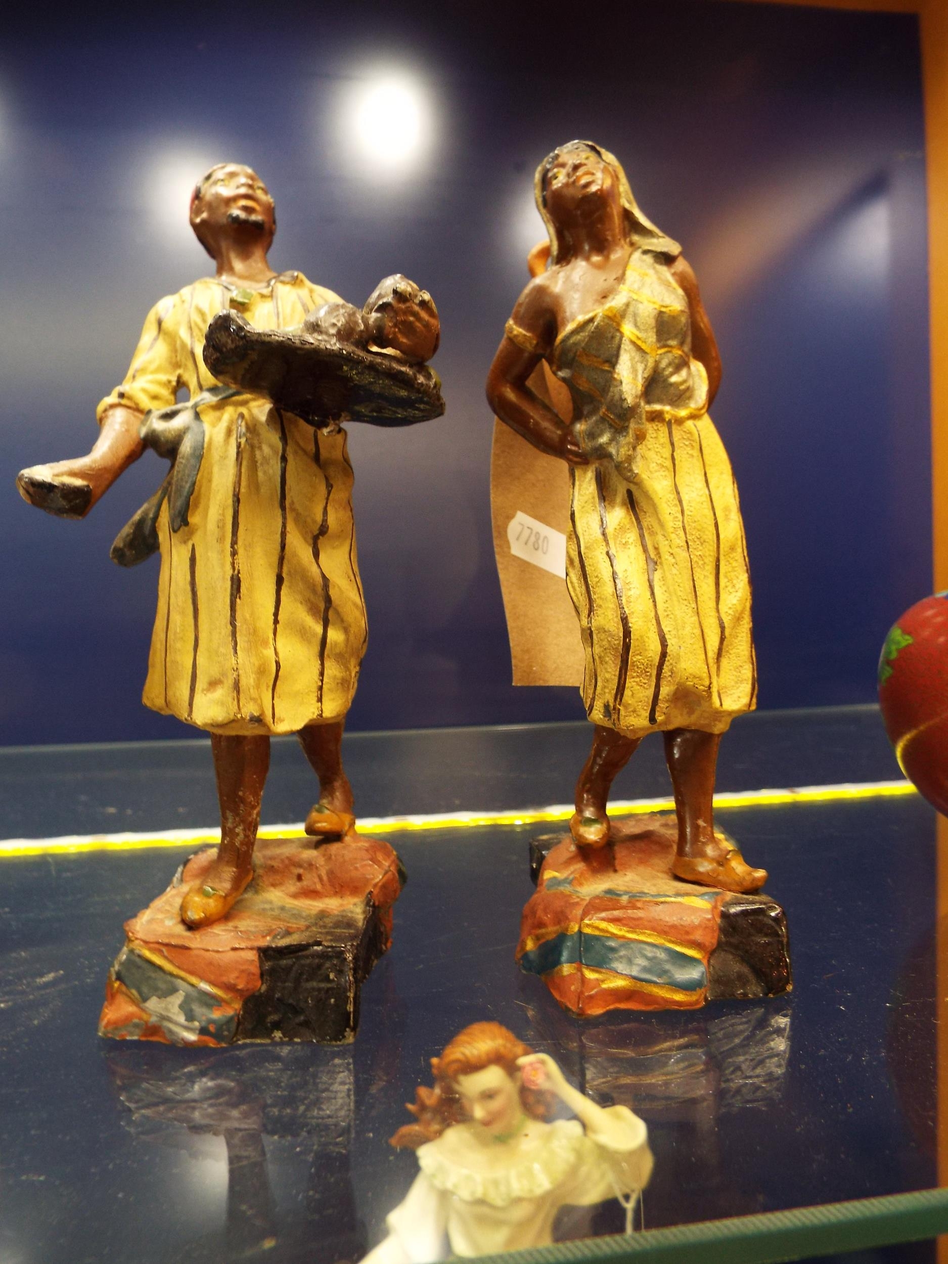 Two vintage cold painted figurines of a water carrier and a fruit seller