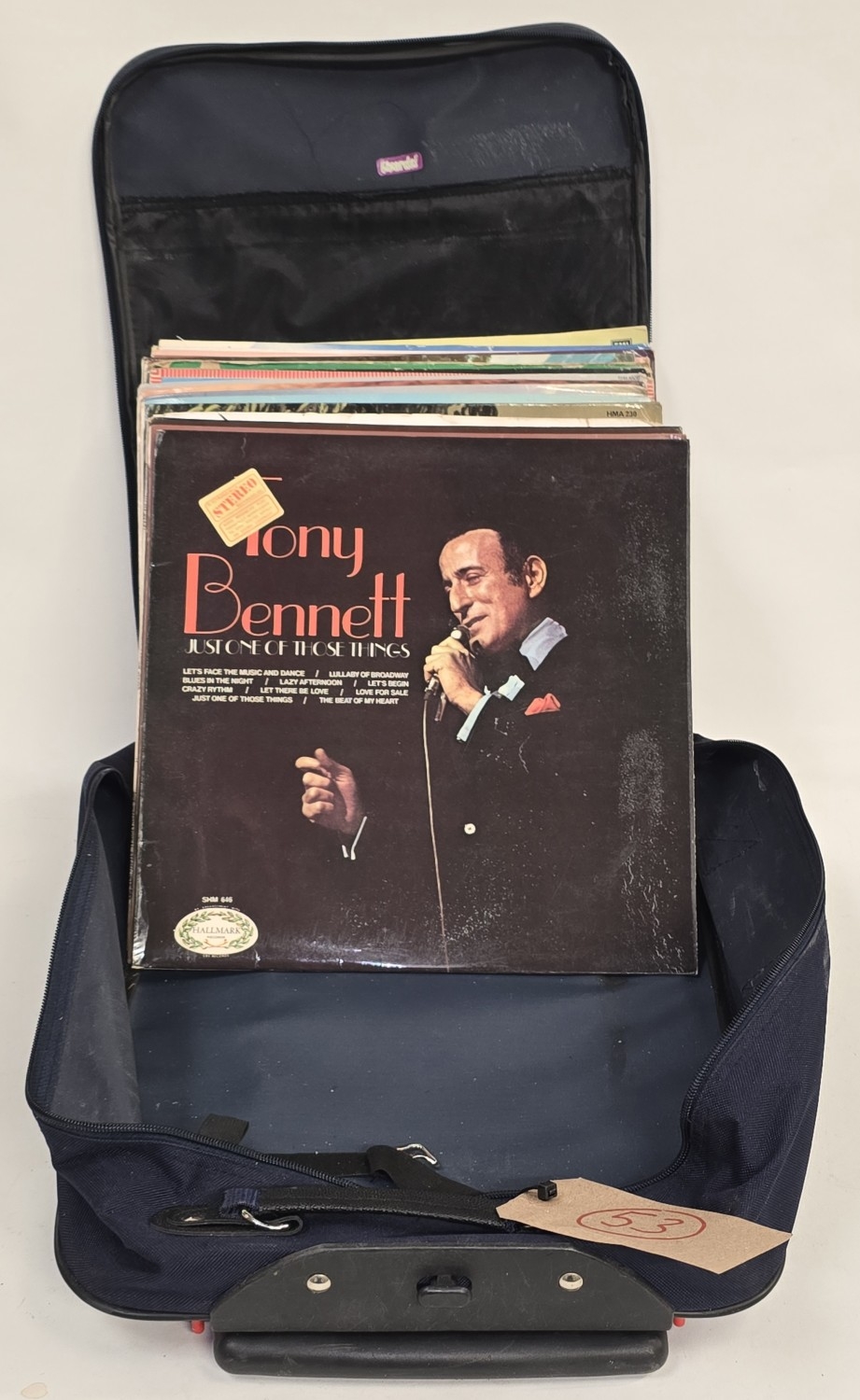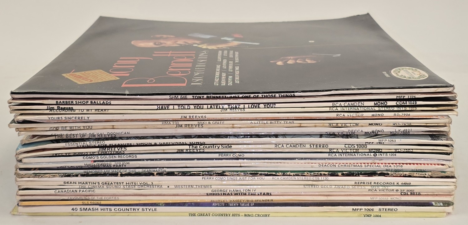 Collection of 12" LP Records. Mainly easy listening to include Tony Bennett, Perry Como and Jim Reeves in a blue carry suitcase (REF P53).