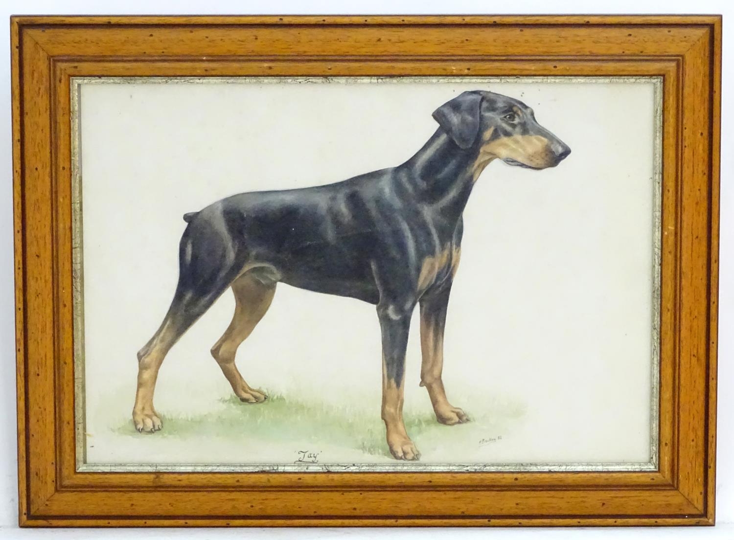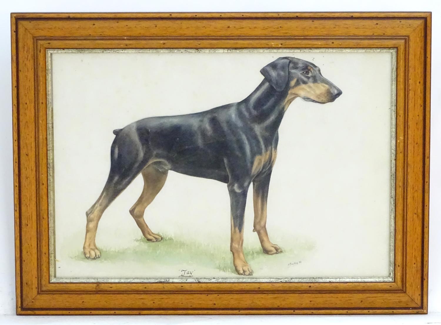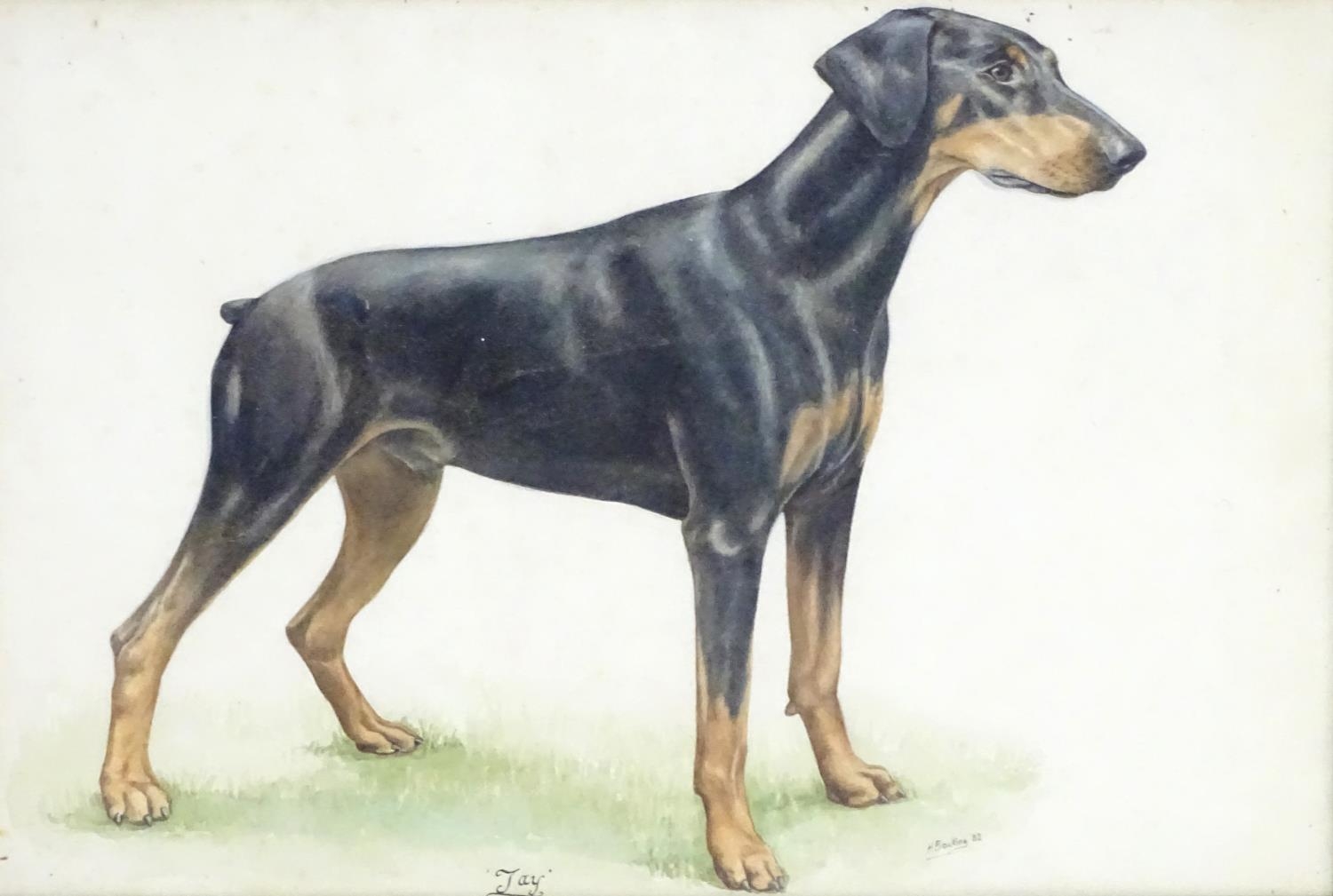 H Bocking, XX, Watercolour, Jay, A portrait of a doberman dog. Titled under and signed lower right. Approx. 14 1/2" x 21 1/2"
