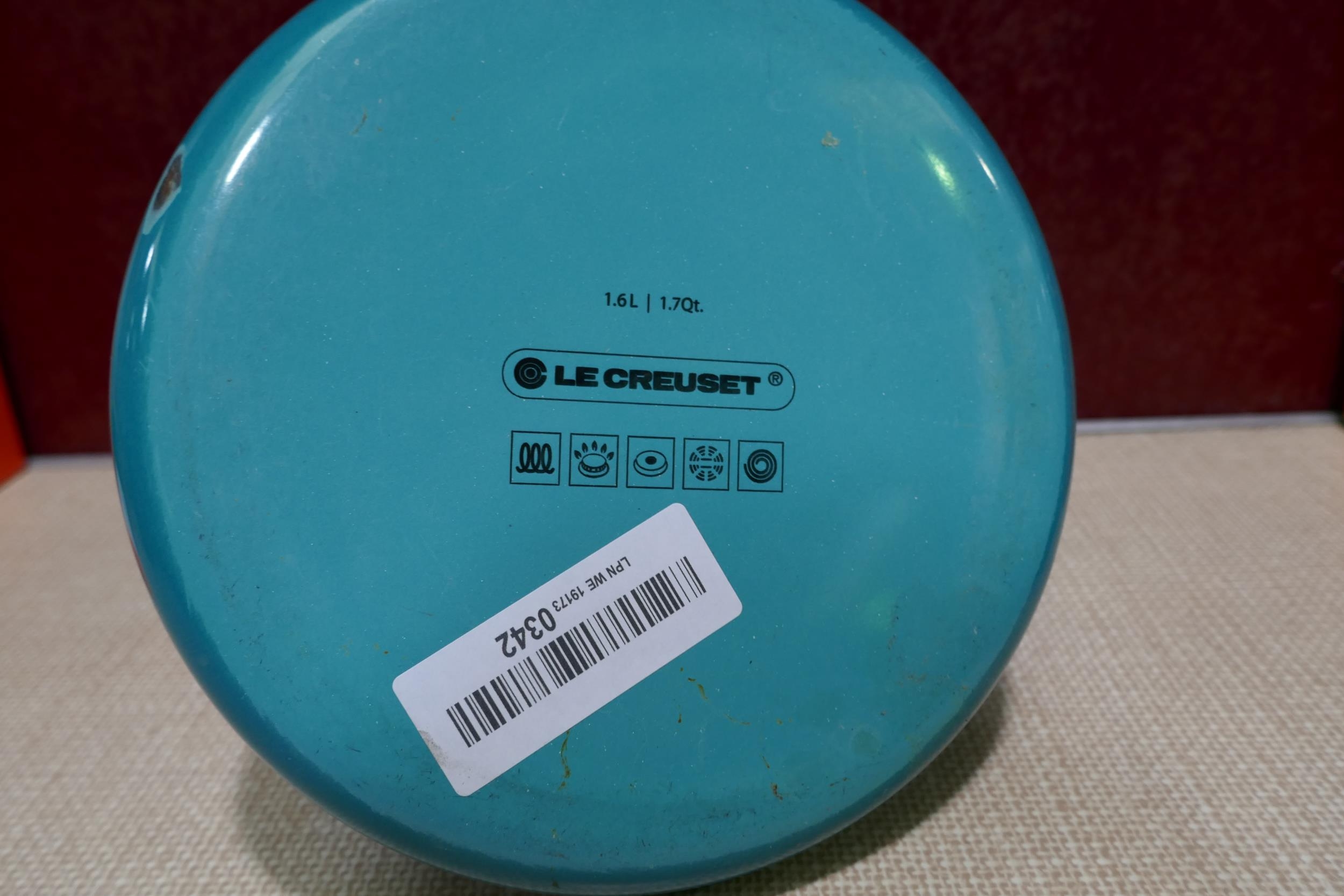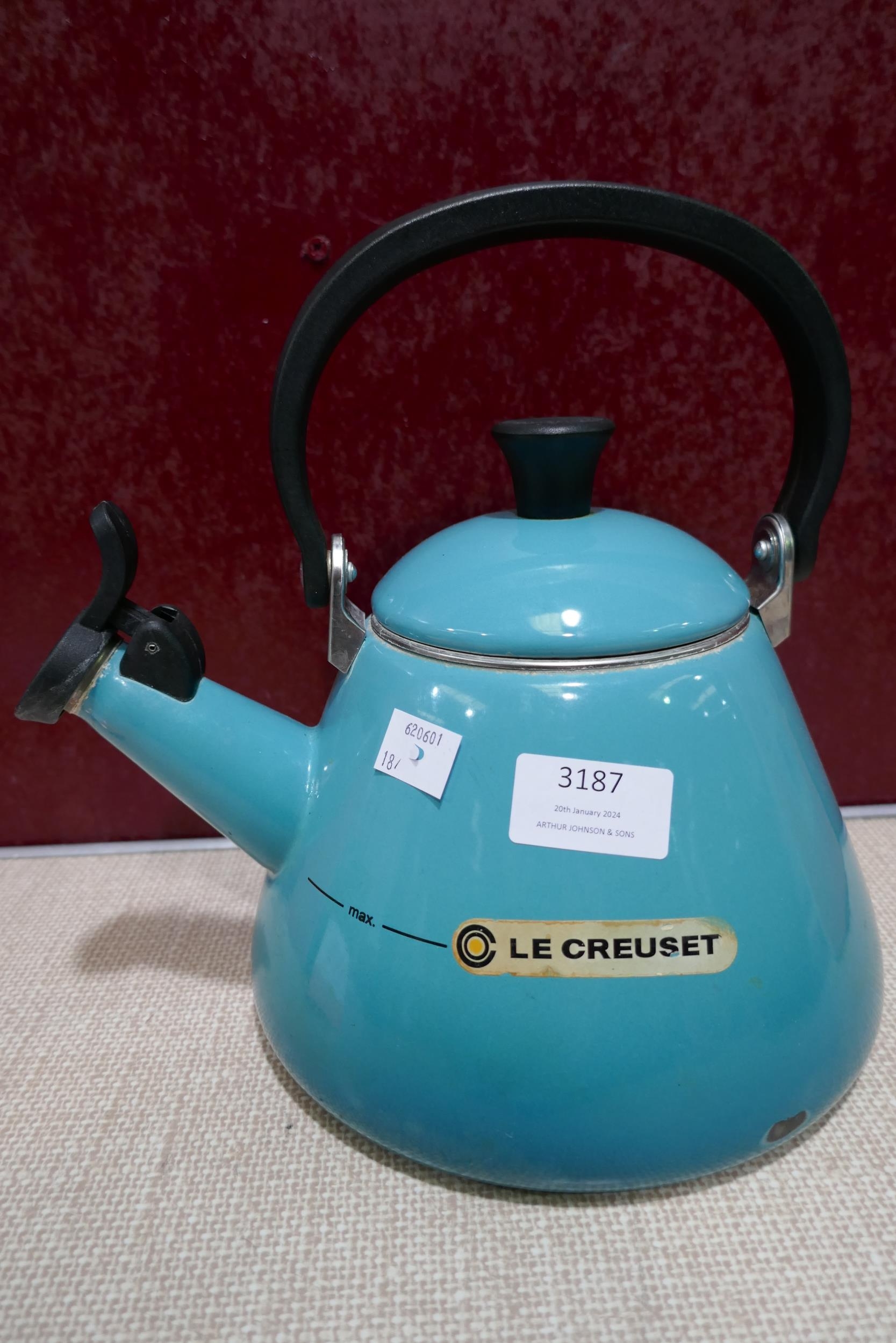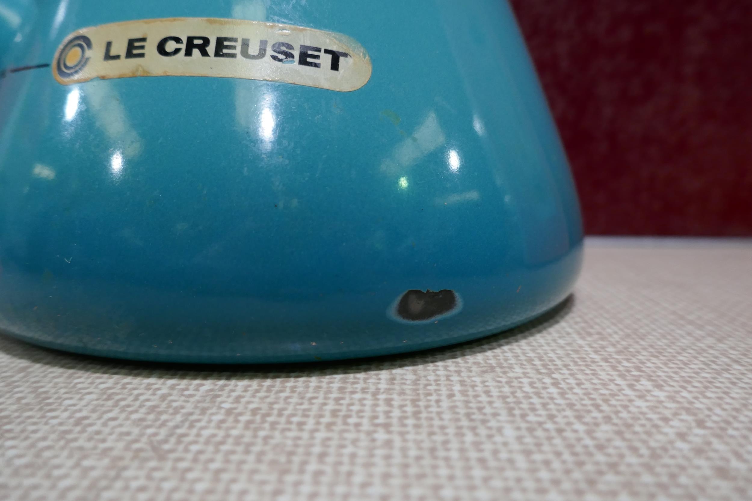 Le Creuset 1.6L blue kettle - worn/marked * This lot is sub...