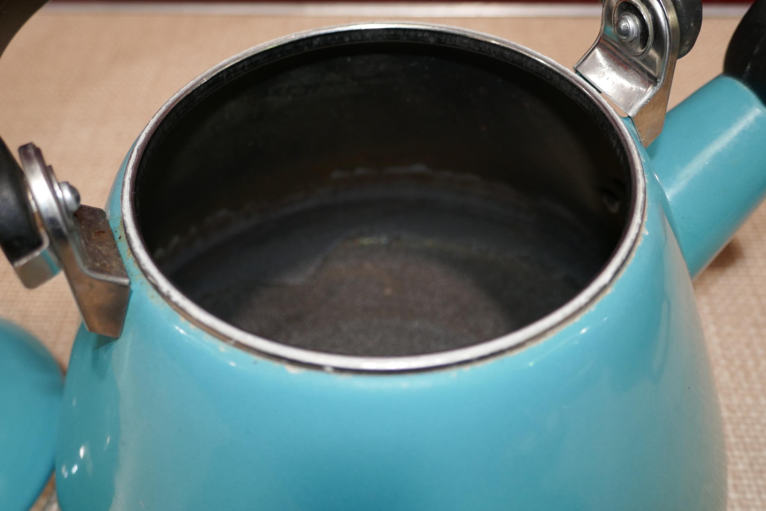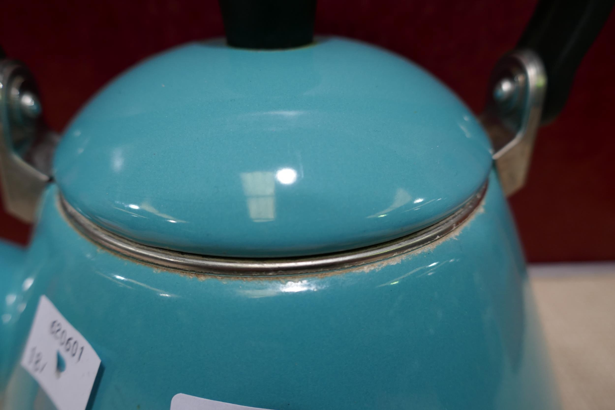 Le Creuset 1.6L blue kettle - worn/marked * This lot is subject to vat