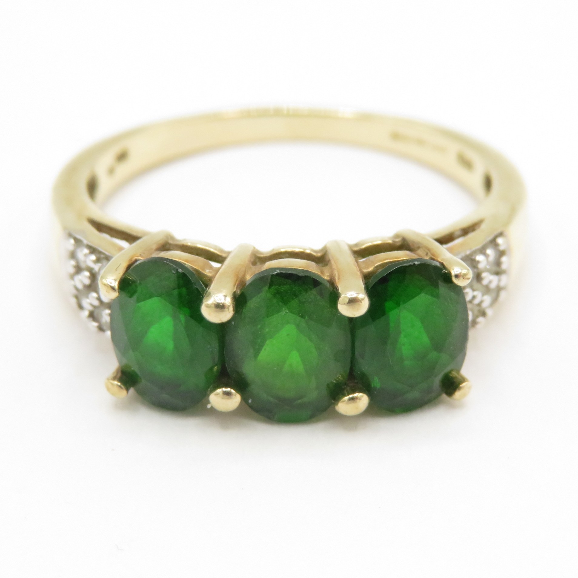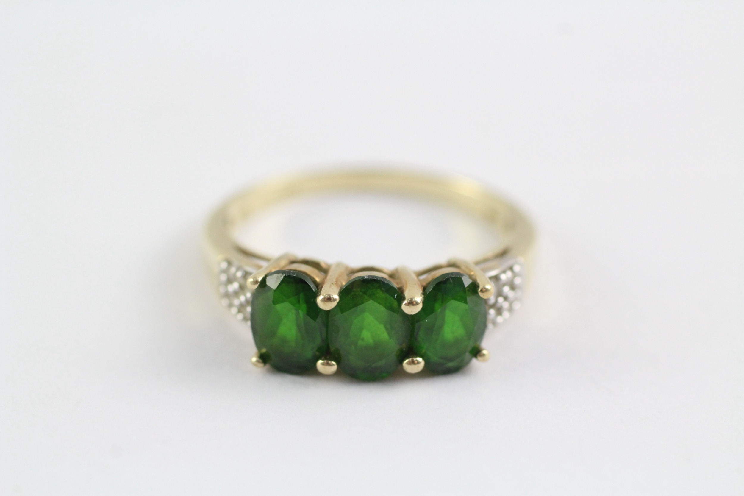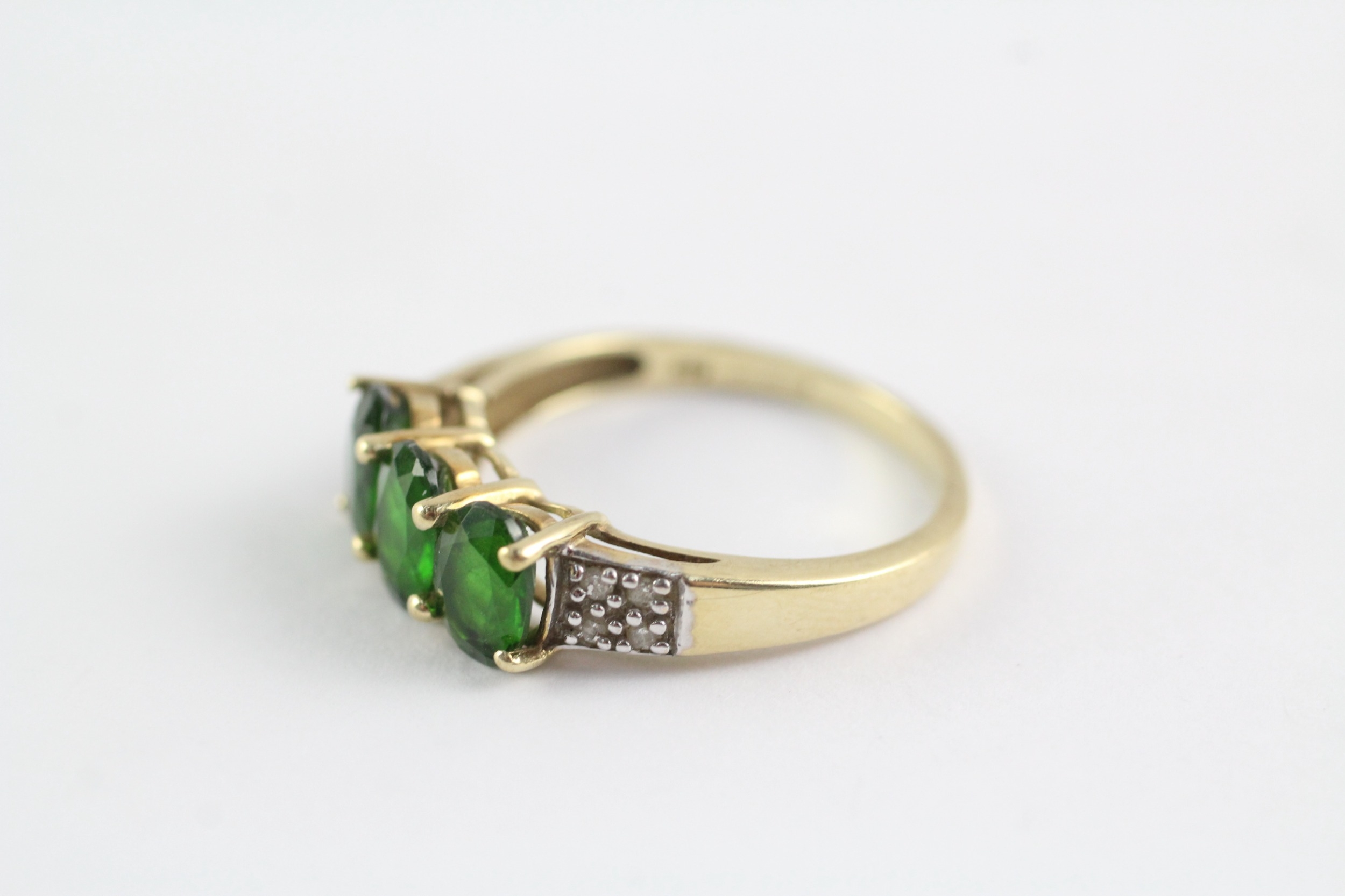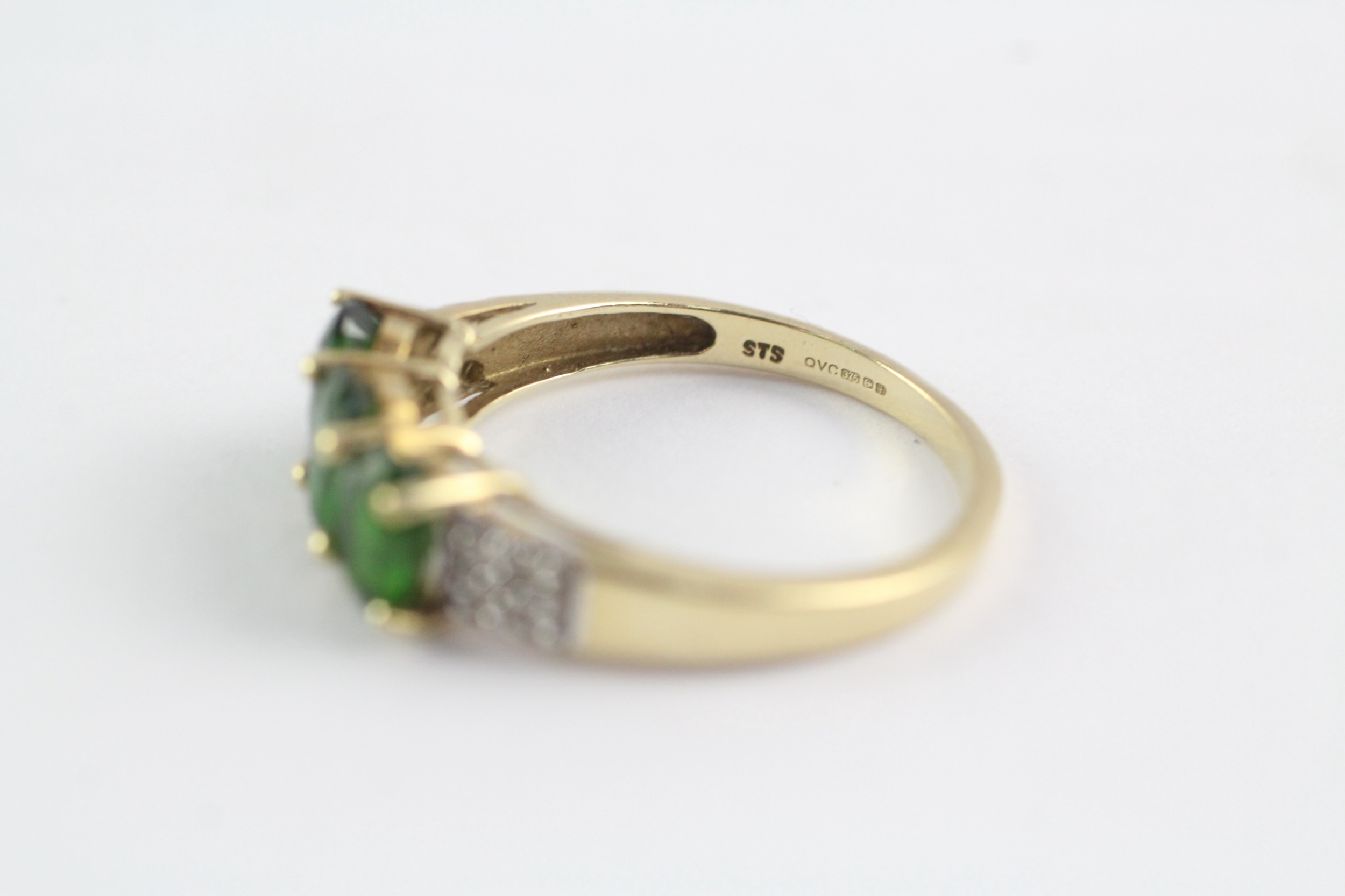 9ct gold diopside and diamond ring (3.3g) Size R
