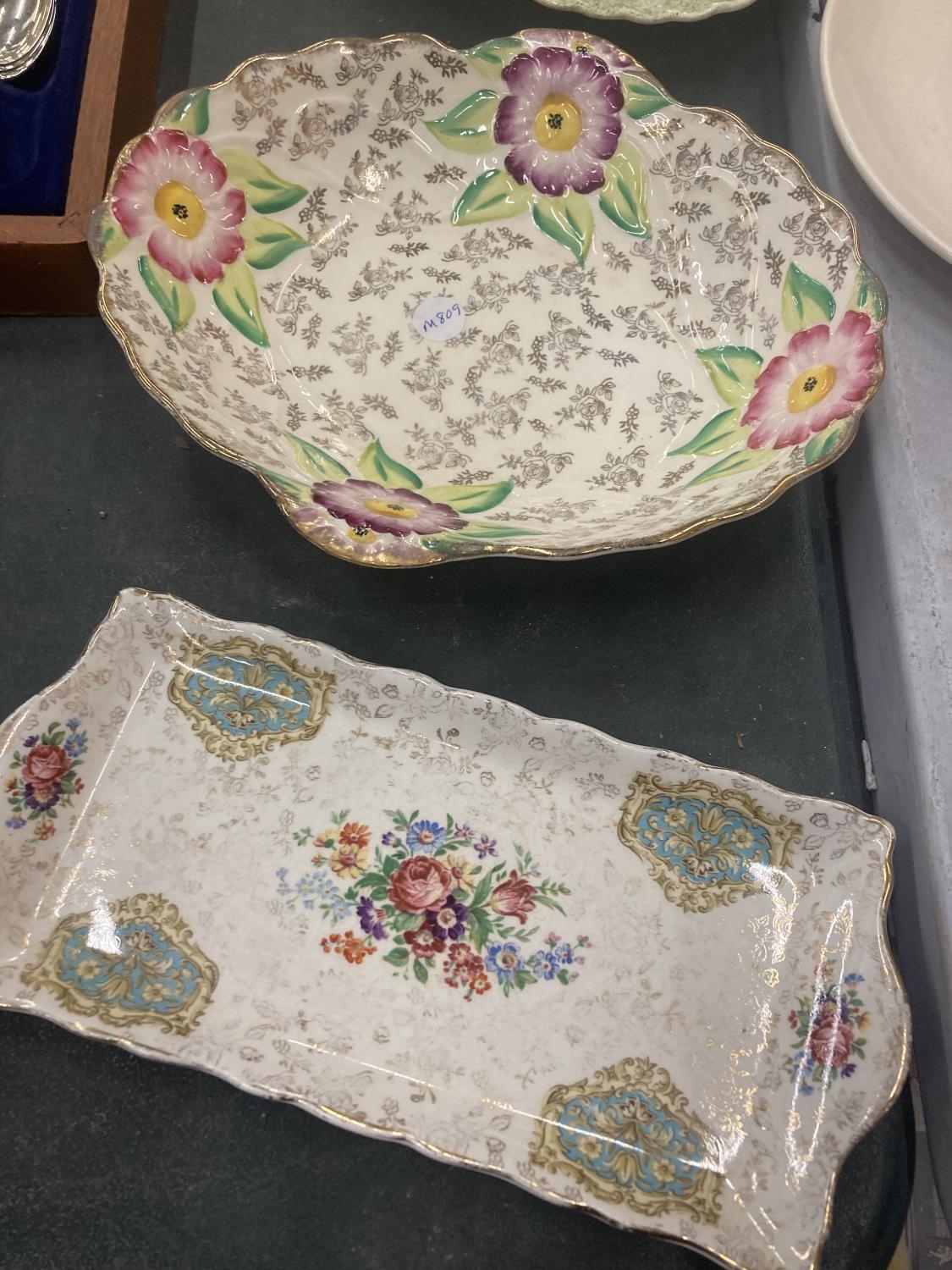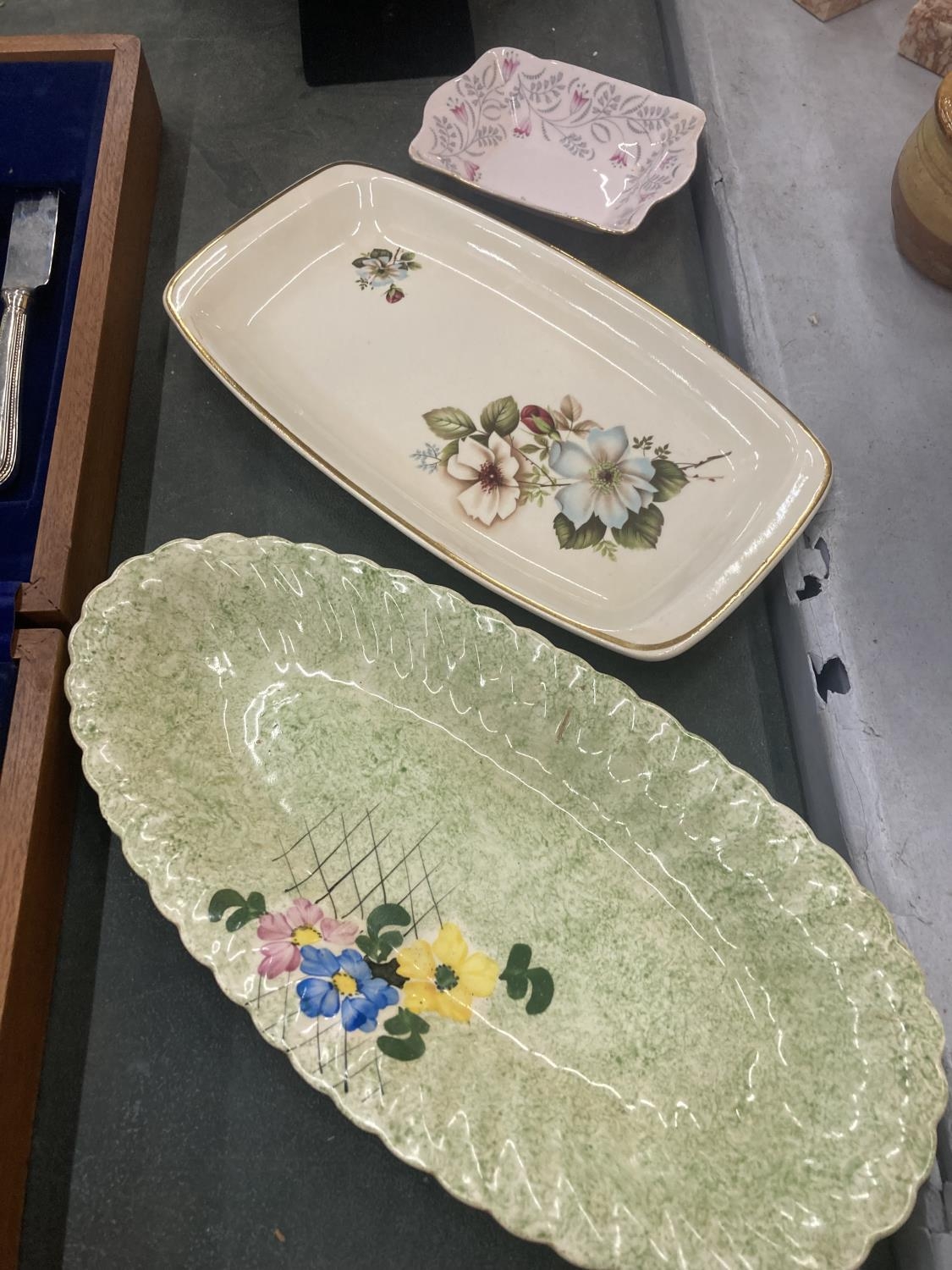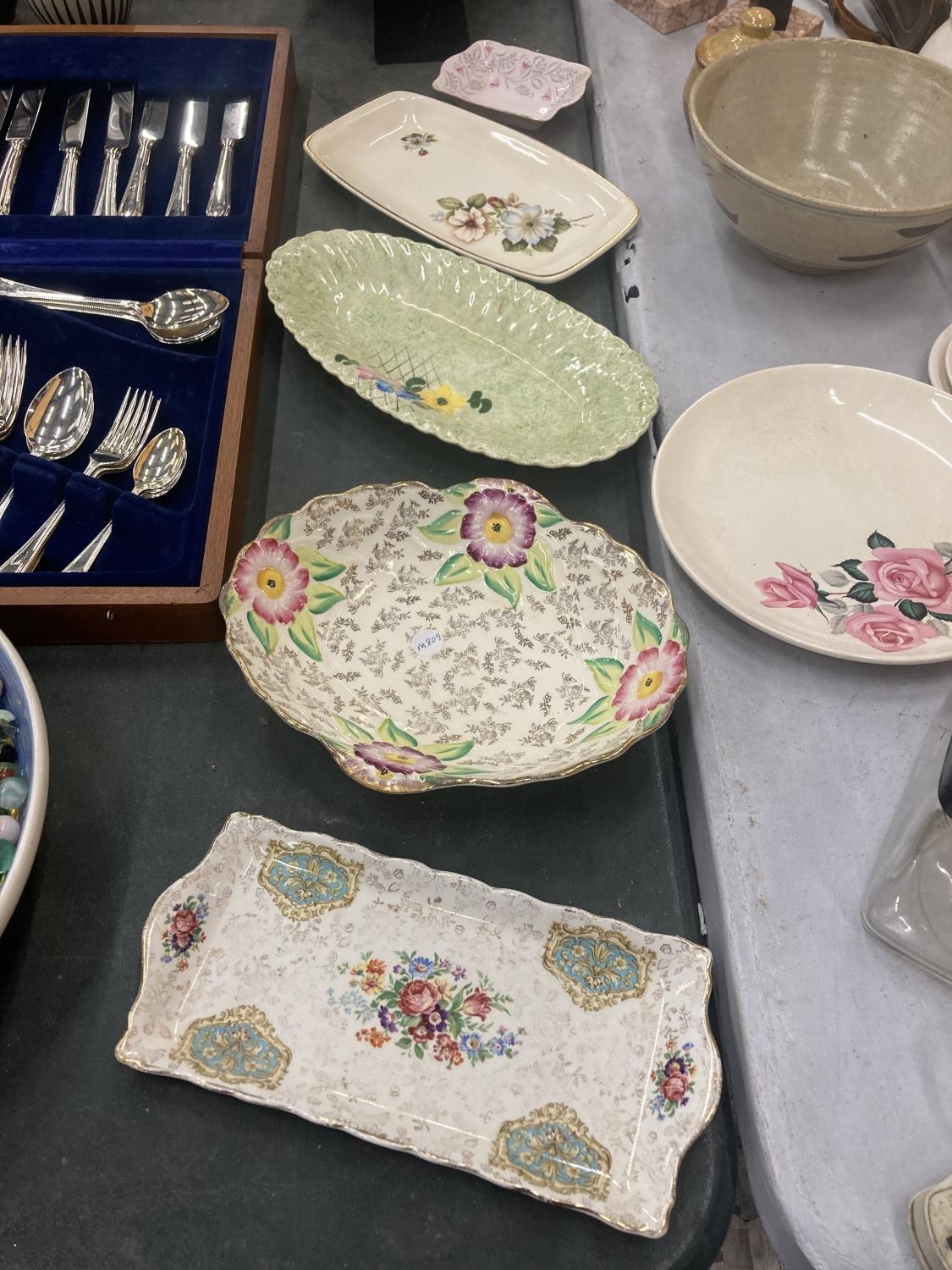 A QUANTITY OF RETANGULAR SANDWICH PLATES TO INCLUDE JAMES KENT PLUS A JAMES KENT FLORAL BOWL