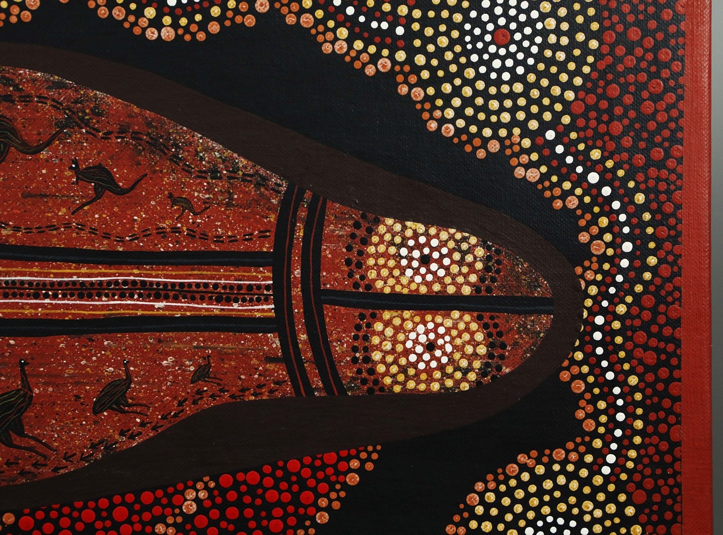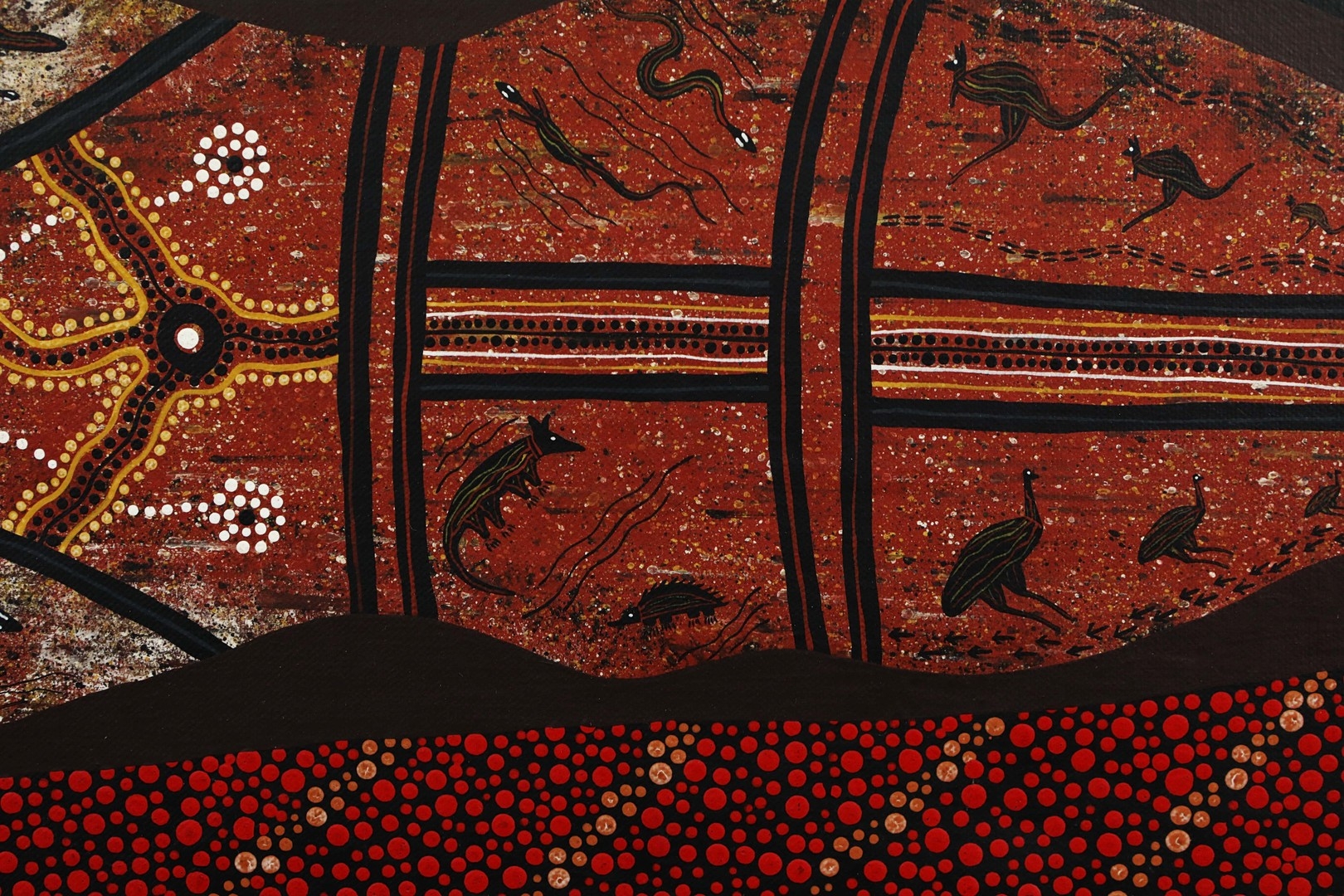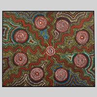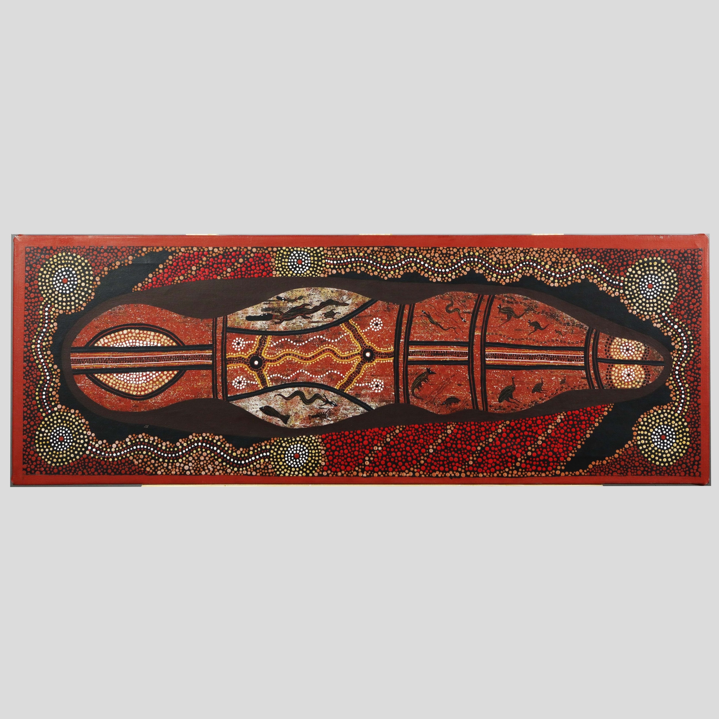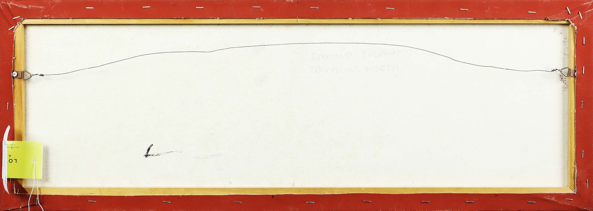 RAYMOND DELANEY (20TH CENTURY AUSTRALIAN ABORIGINAL). TRAVELLING NORTH. oil on canvas, 29cm x 80cm.