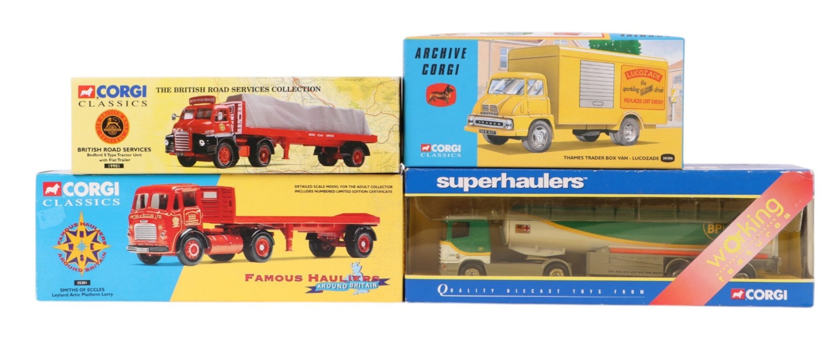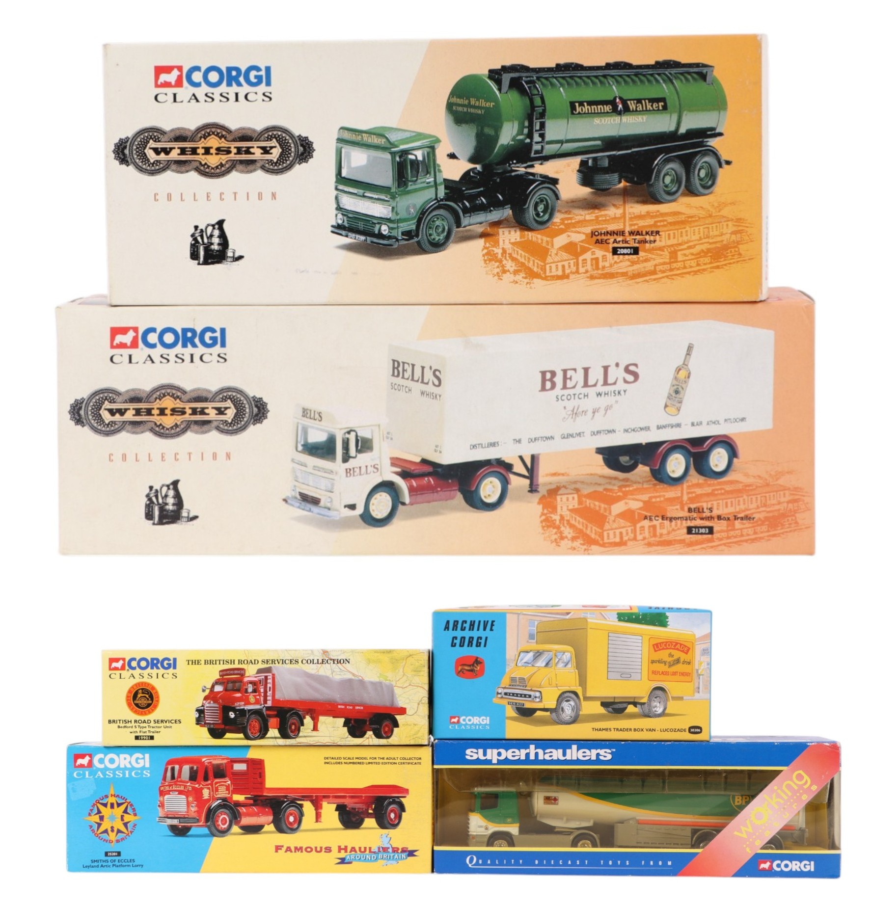 A collection of Corgi Classic commercial vehicles, including Bells AEC Ergomatic with box trailer, 21303, British Road Services Bedford S type tractor unit with flat trailer, 19901, and others similar, all boxed (6).