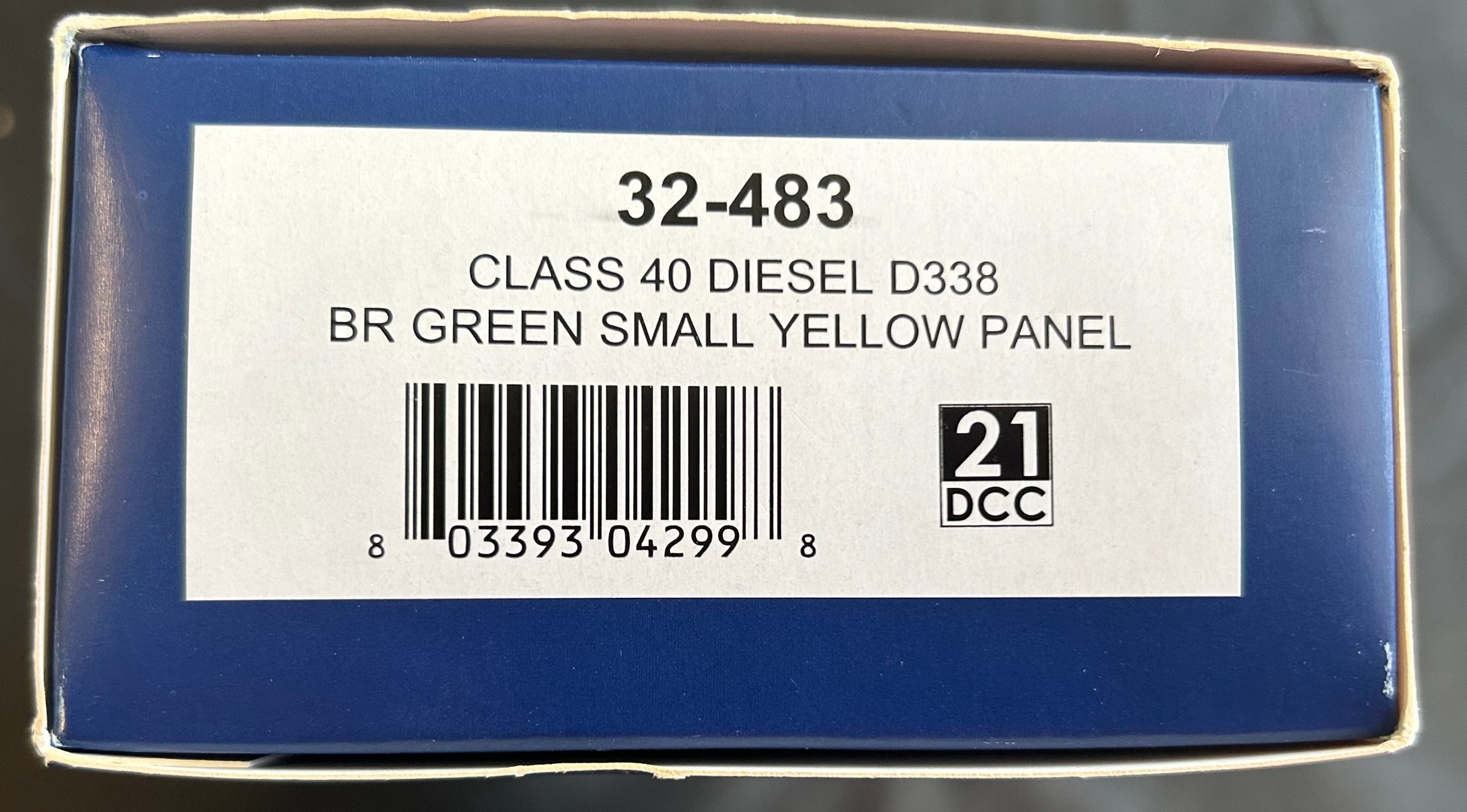 Bachmann Branch-Line OO Diesel-Electric Locomotive. Class 40 D338 (32-483) in BR Green Small Yellow Panel livery. Boxed. Contents looks to be as new.