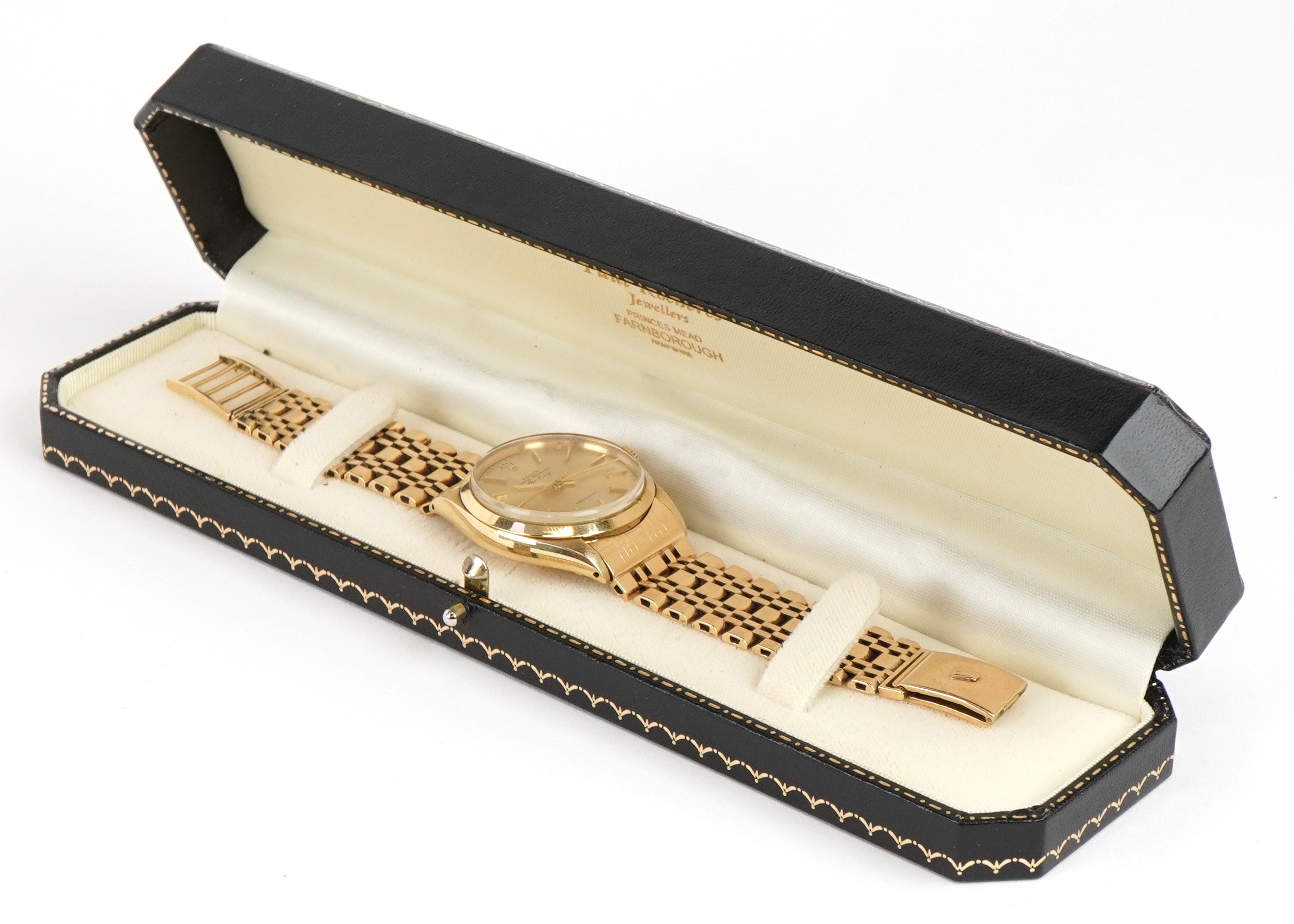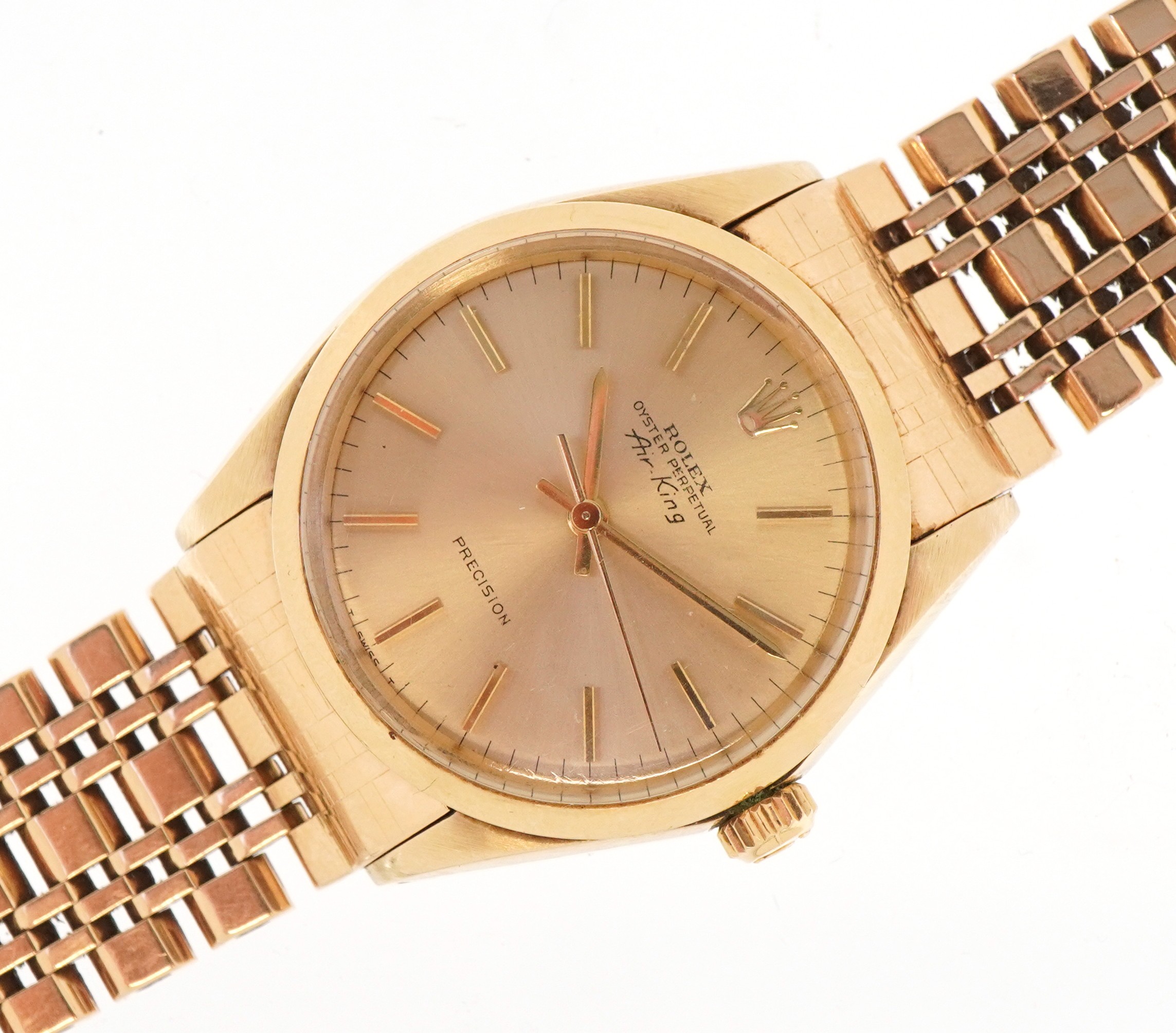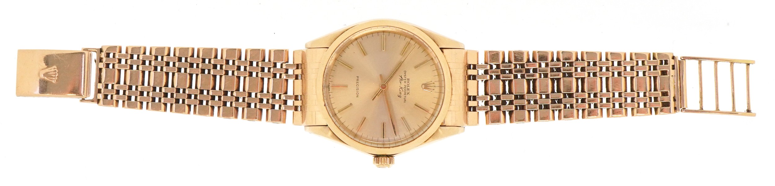 Rolex, a gentlemen's 14K gold cased Rolex Air King Oyster perpetual wristwatch with 9ct gold Rolex strap, the dial 29.0mm in diameter, model 5500, serial number 2131257, total weight 78.8g, weight of the strap 36.5g.