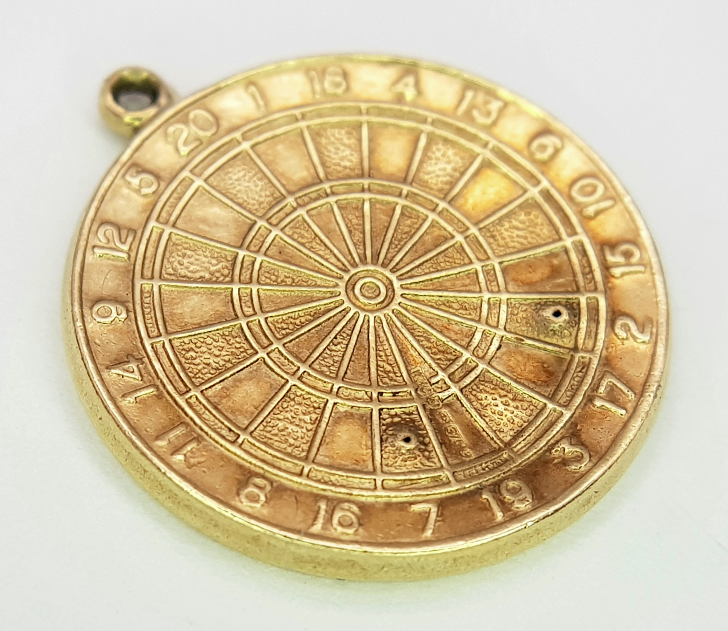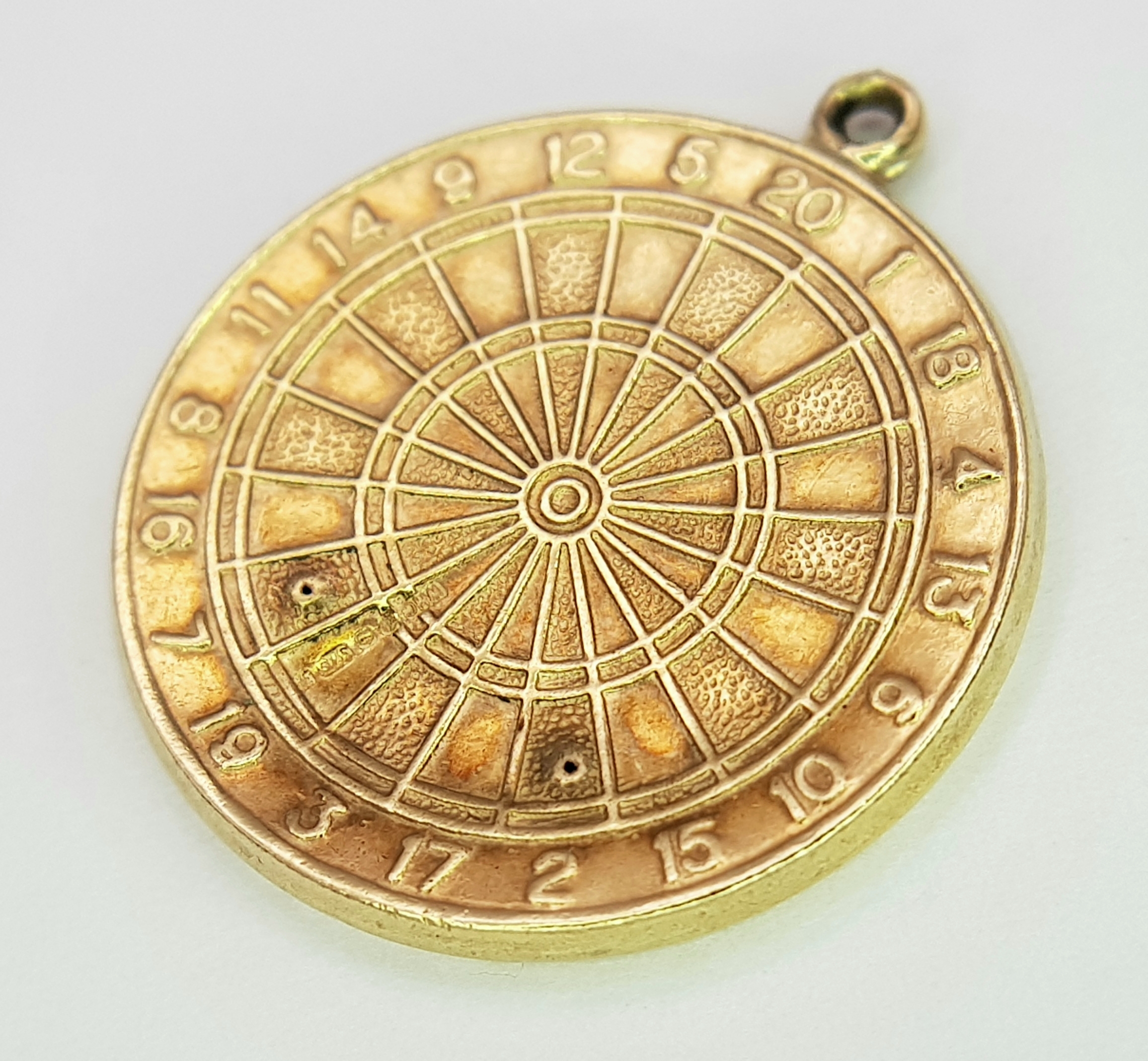 A 9K YELLOW GOLD DARTBOARD CHARM / PENDANT 2G. Ref: SC 7013